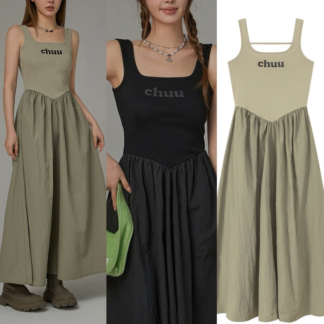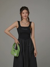 グリーン 緑 黒 スウェット ワンピース カジュアル マキシ ゆったり