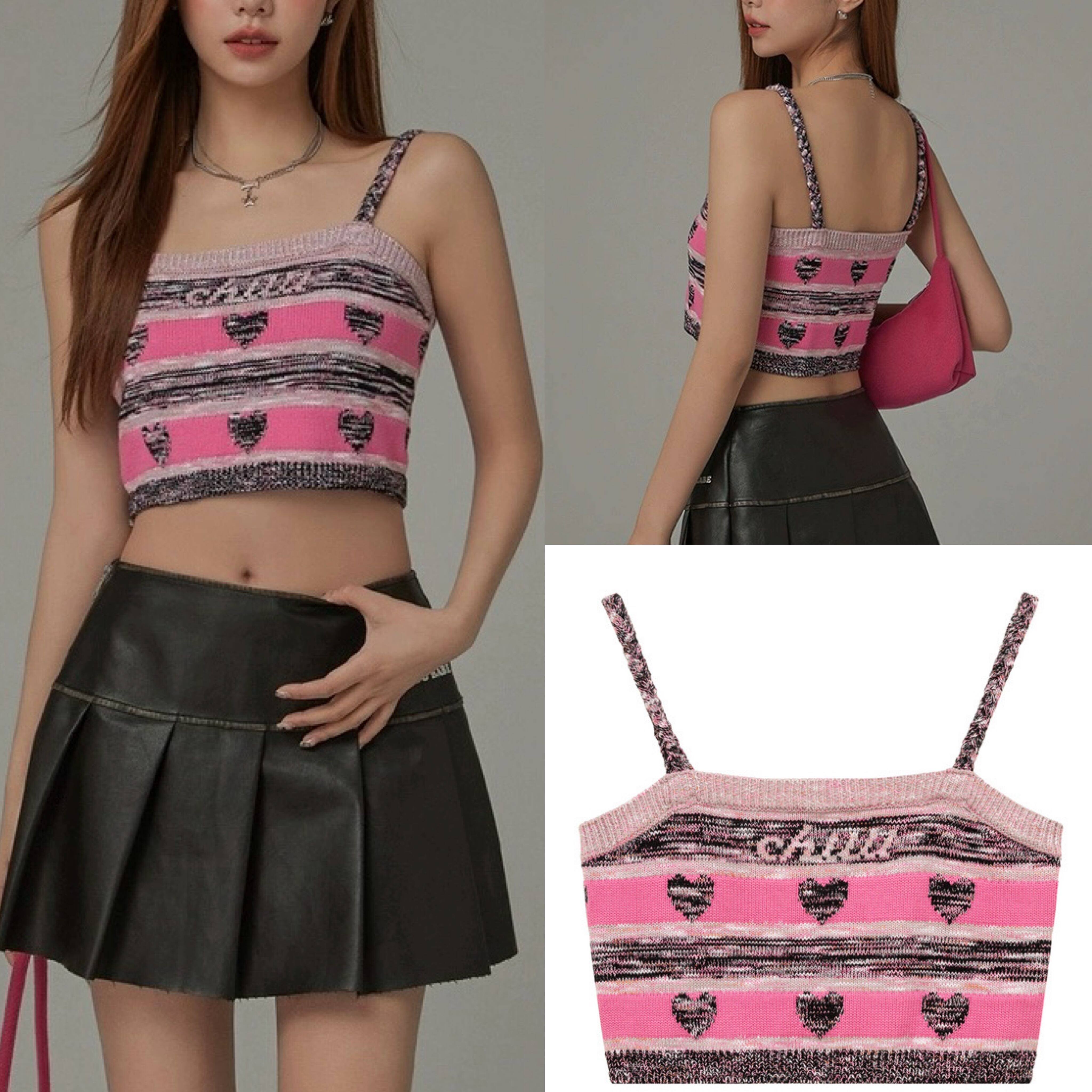 ピンク ハート カジュアル キャミソール カーディガン ブラウス ボーダー チェック