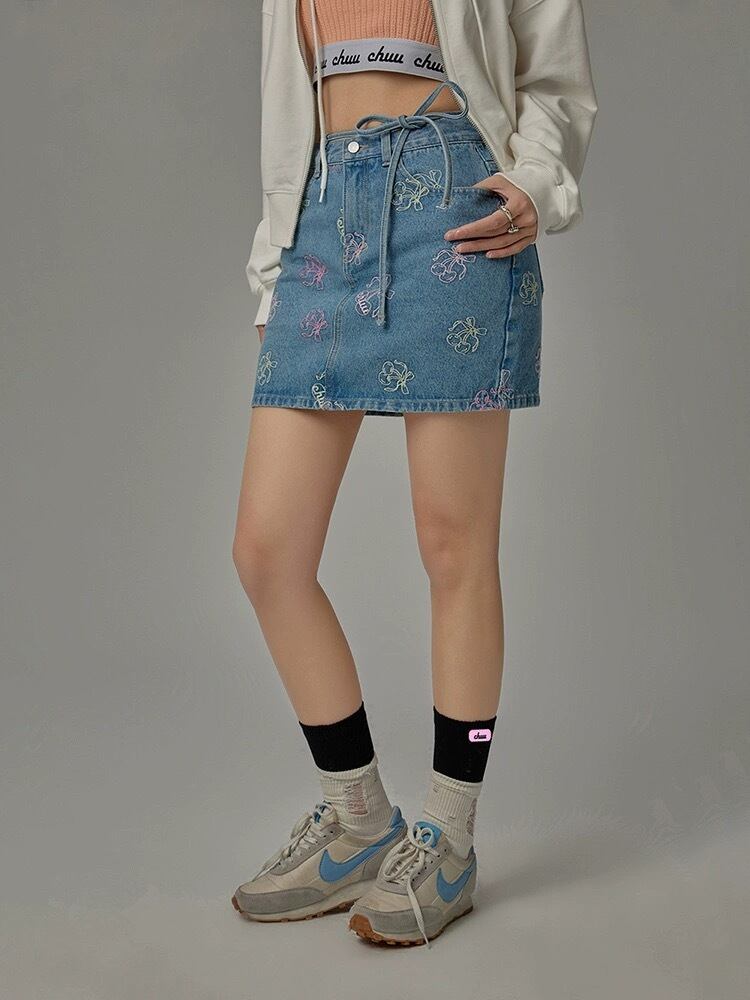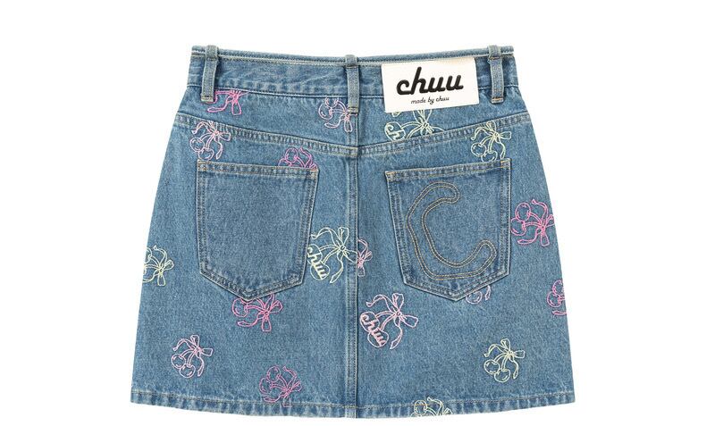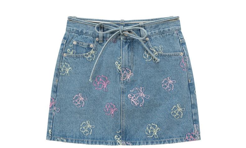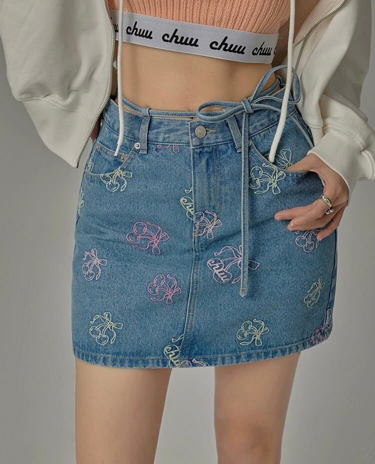 デニム ボトムス カジュアル 水色 リボン ミニスカート ストリート さくらんぼ 可愛い