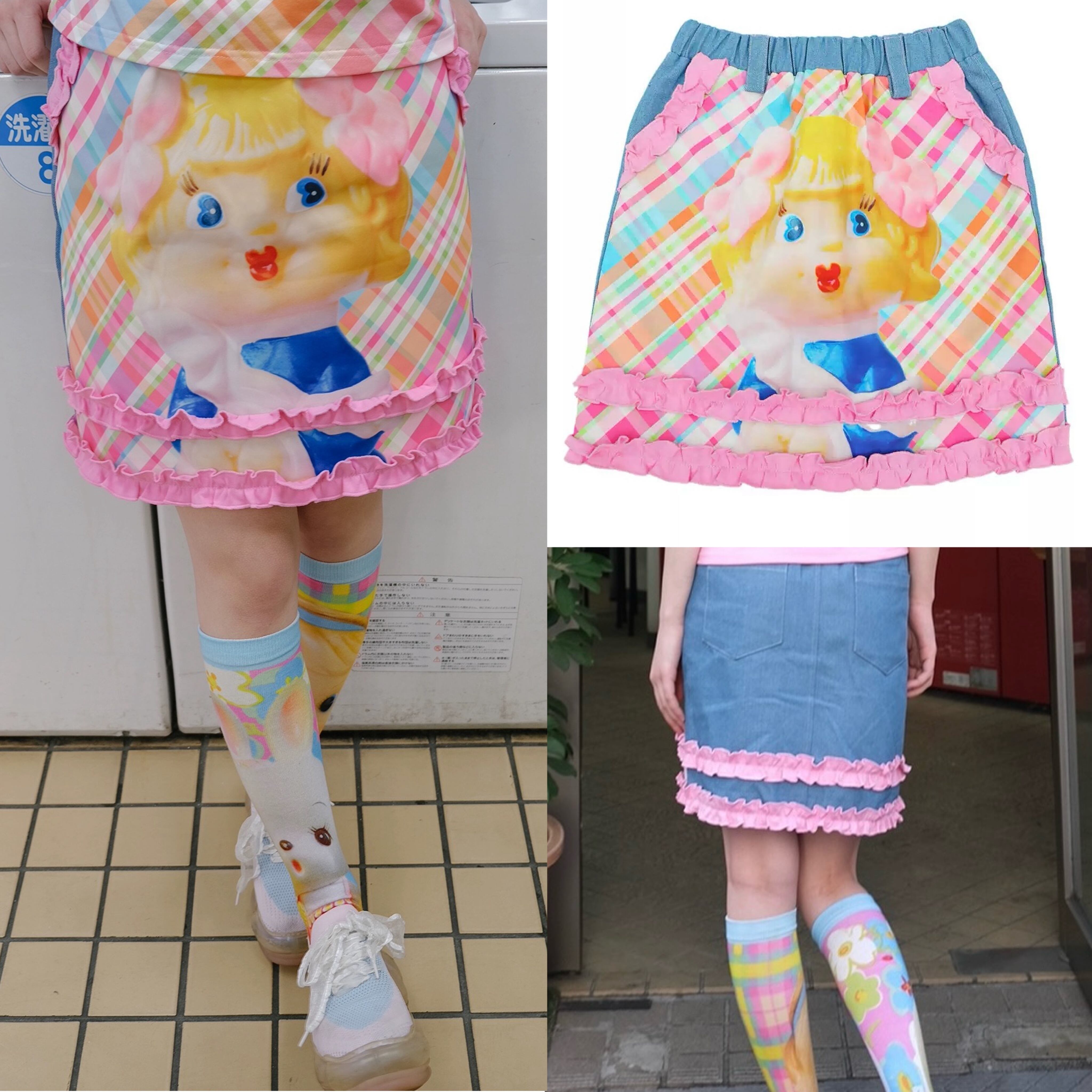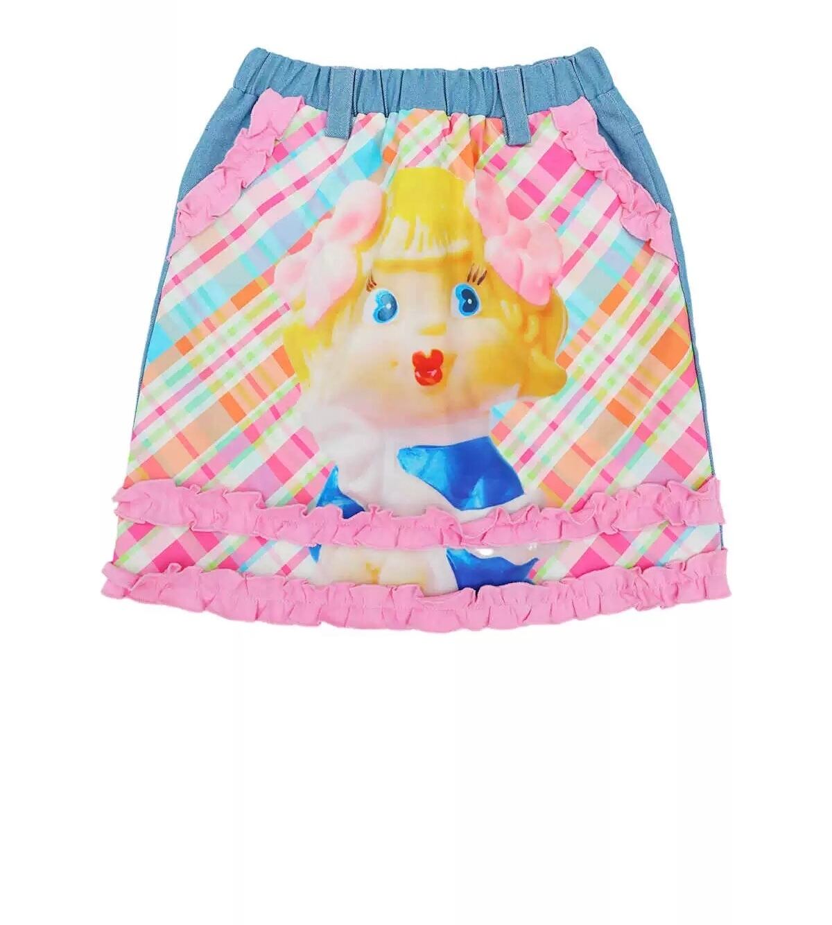 【スカート】ピンク チェック ガーリー レトロ 水色 ピンク 原宿 可愛い ミニスカート デニム