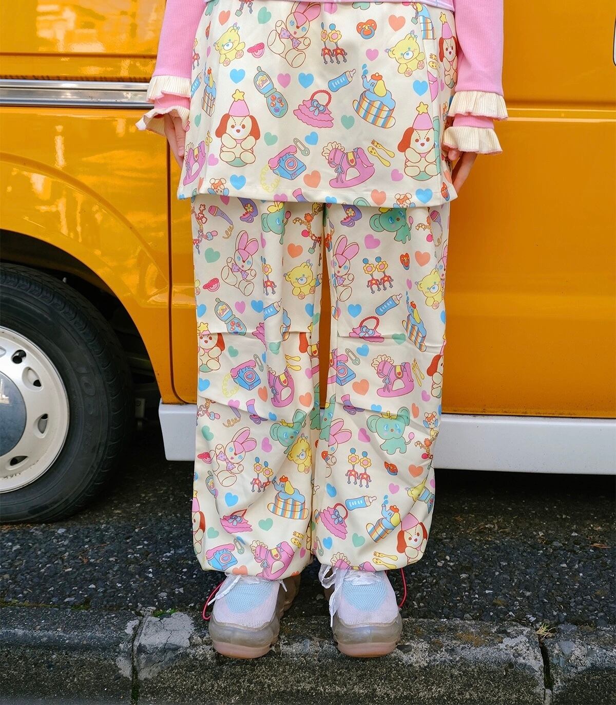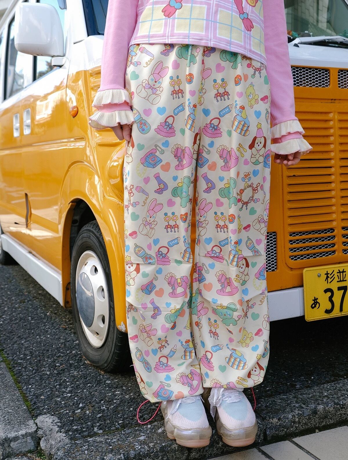 パンツ カラフル ガーリー 可愛い ズボン スウェット 原宿 レトロ ページュ ピンク 黄色
