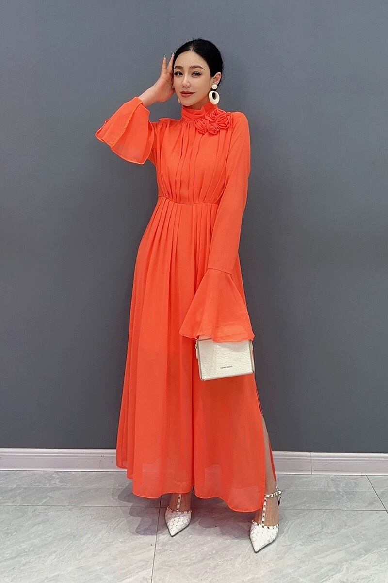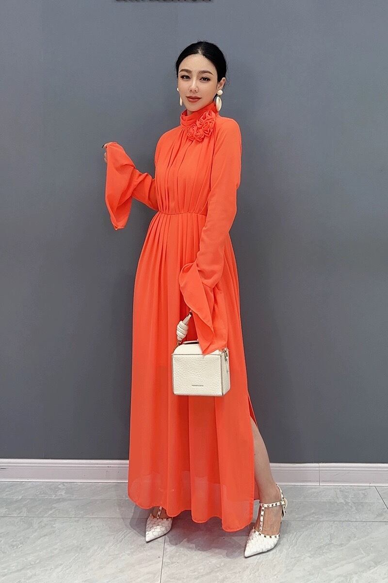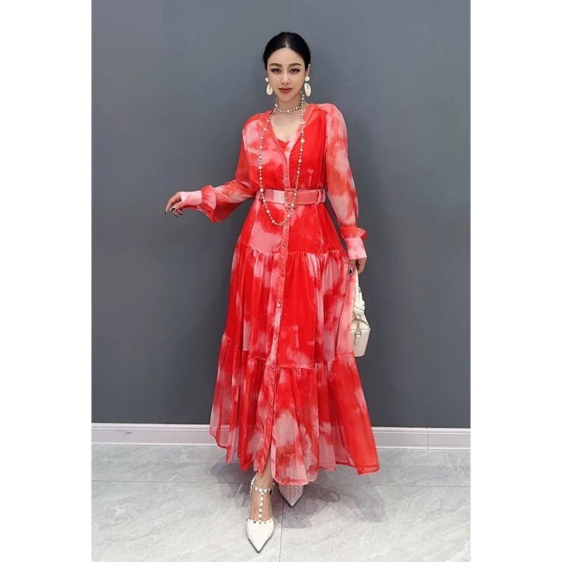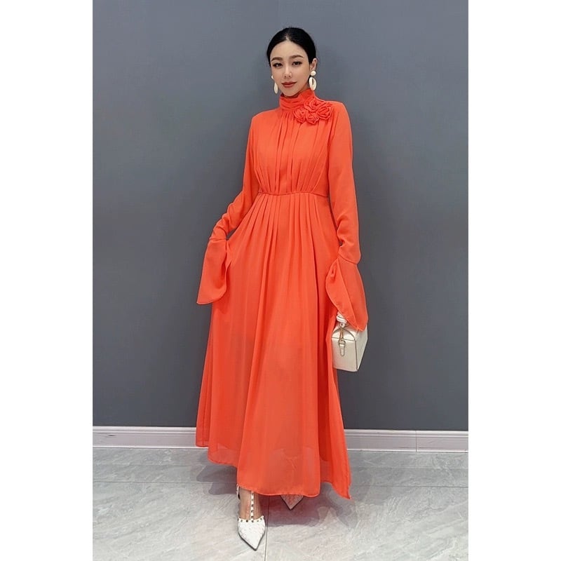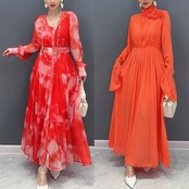 ブラウス ワンピース 赤 花柄 フラワー 花柄 フラワー エレガント マキシ ワンピース ドレス オレンジ オフショルダー XL ゆったり