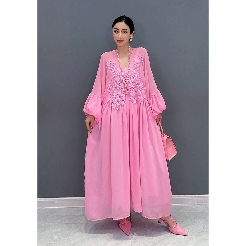 黒 ピンク 花柄 フラワー エレガント マキシ ワンピース ドレス オレンジ オフショルダー XL