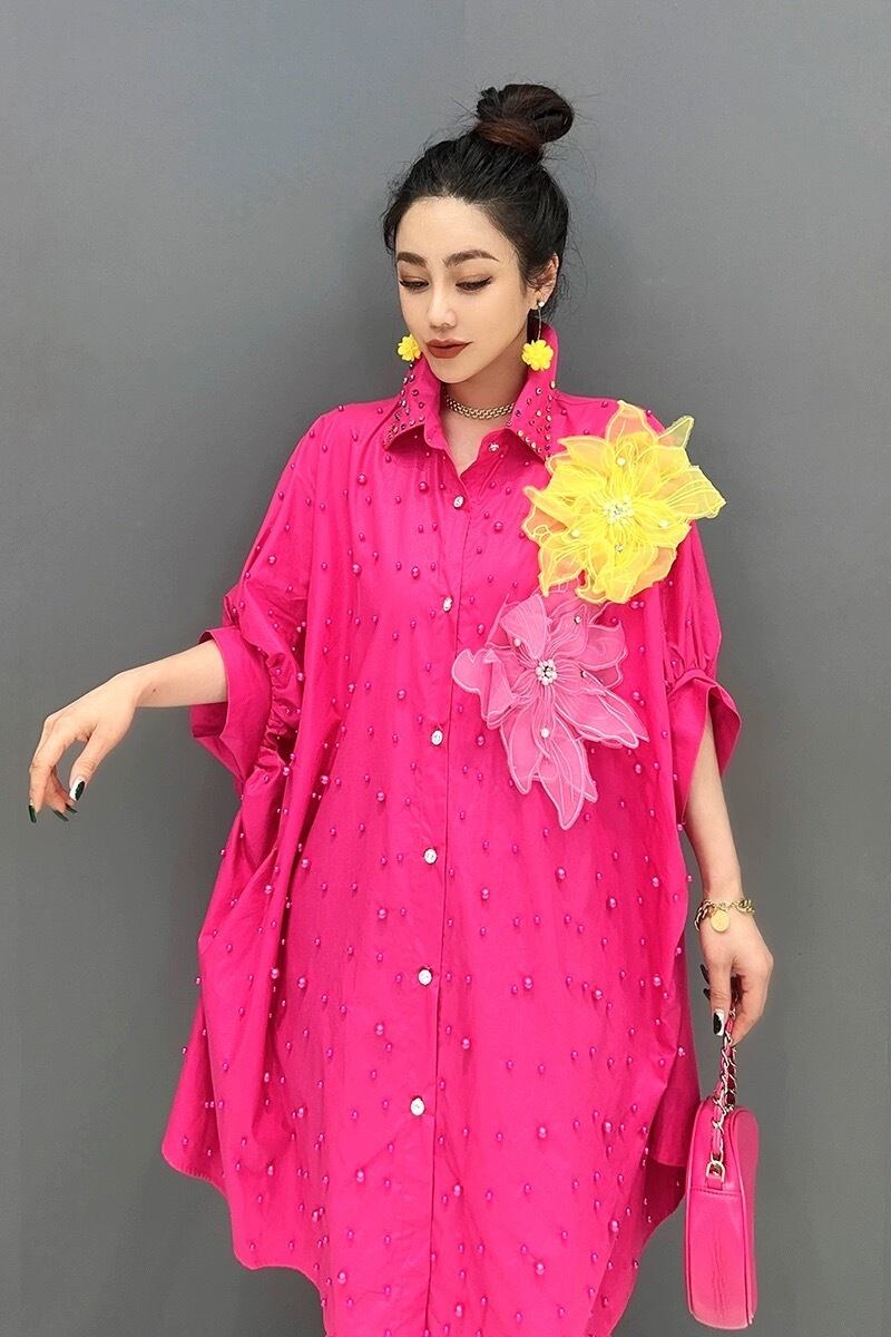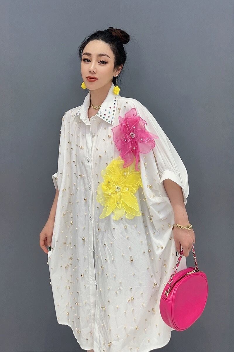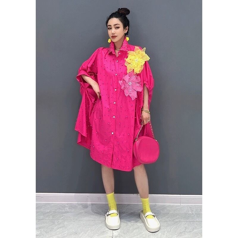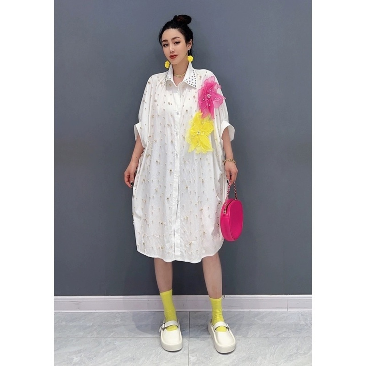 ブラウス 白 ピンク ラインストーン シャツ 黄色 花柄 フラワー エレガント マキシ ワンピース ドレス オレンジ オフショルダー XL