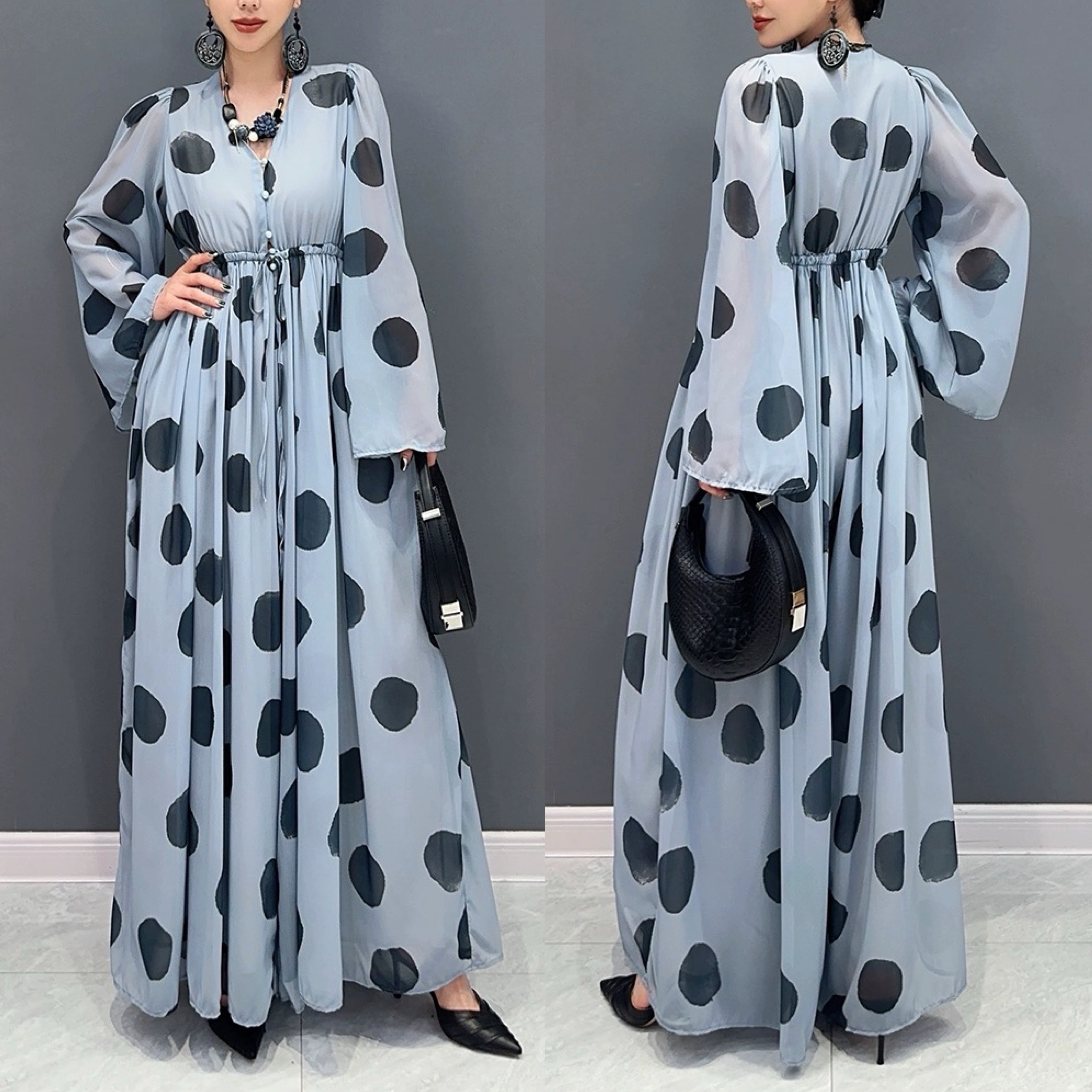 水玉 水色 ドット オールインワン パンツ 花柄 フラワー エレガント マキシ ワンピース ドレス オレンジ オフショルダー XL
