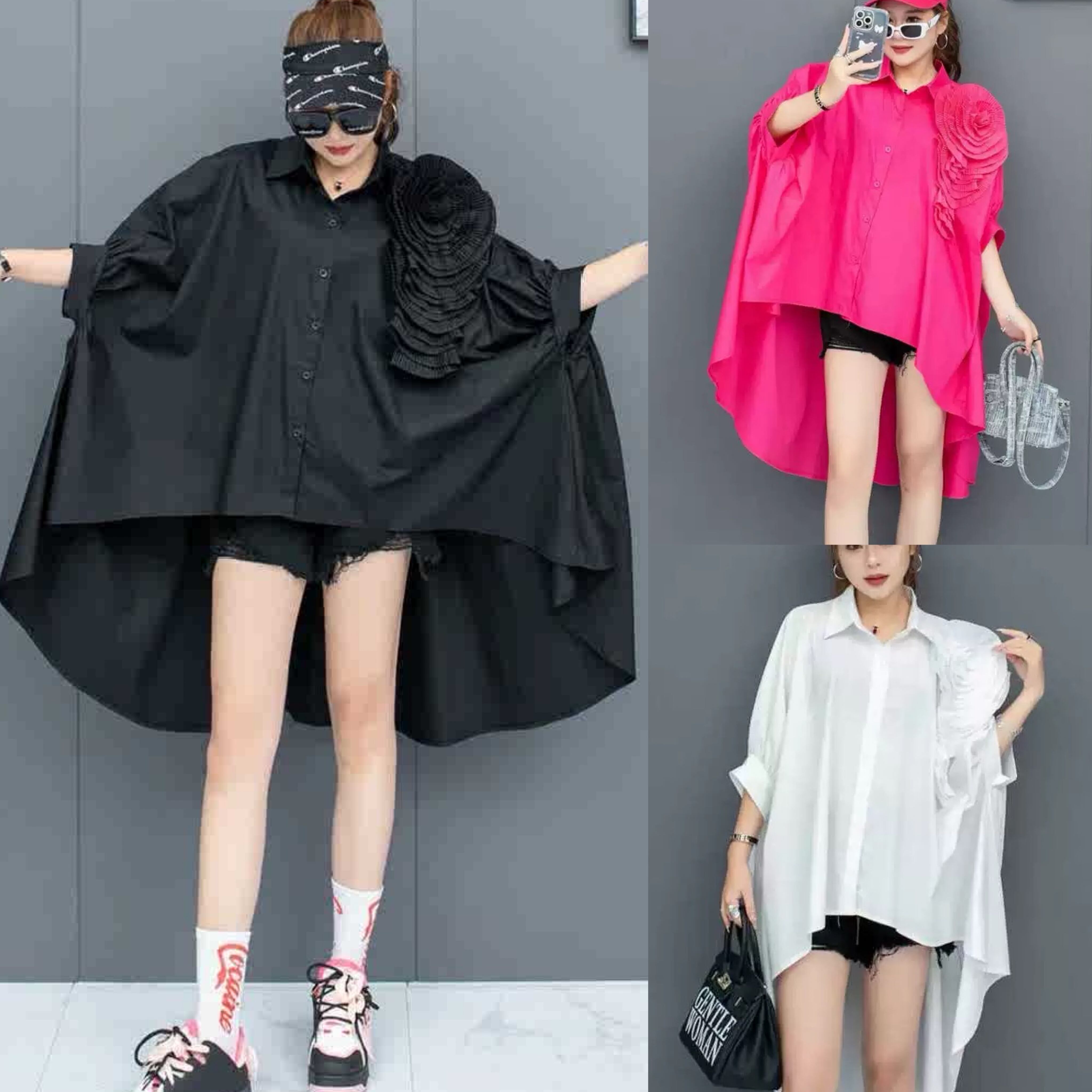 ピンク 黒 白 マント ブラウス シャツ花柄 フラワー エレガント マキシ ワンピース ドレス オレンジ オフショルダー X カメリア
