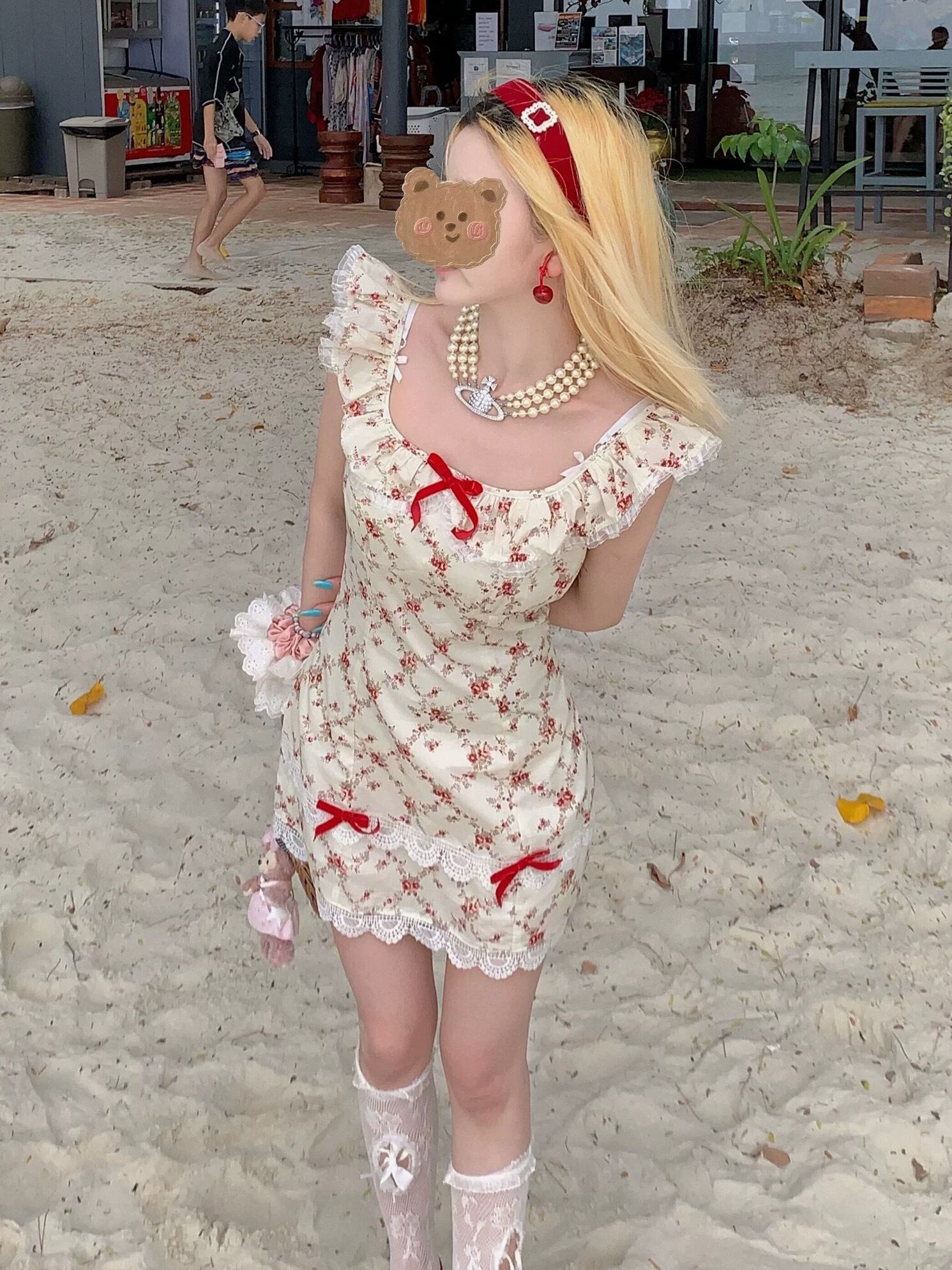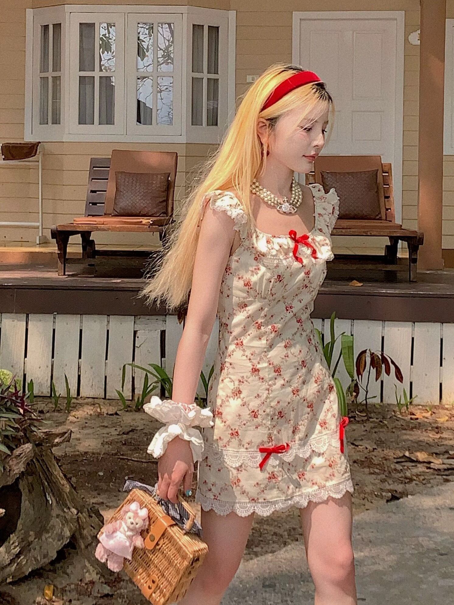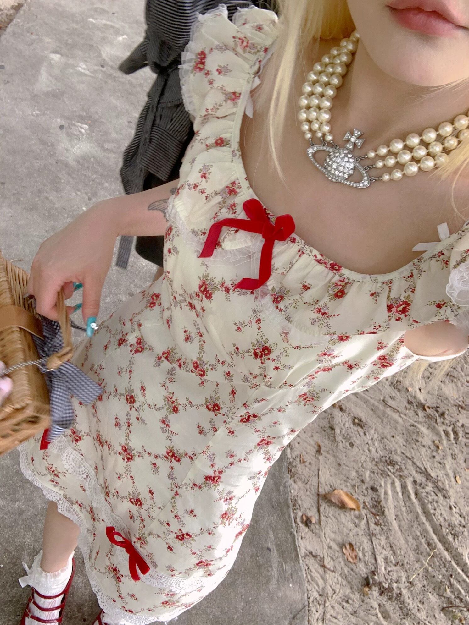 ピンク 花柄 フラワー 赤 白 ピンク リボン ガーリー 可愛い 姫 プリンセス ワンピース ロリータ 衣装 オフショルダー 可愛い 原宿 秋葉原 ドレス