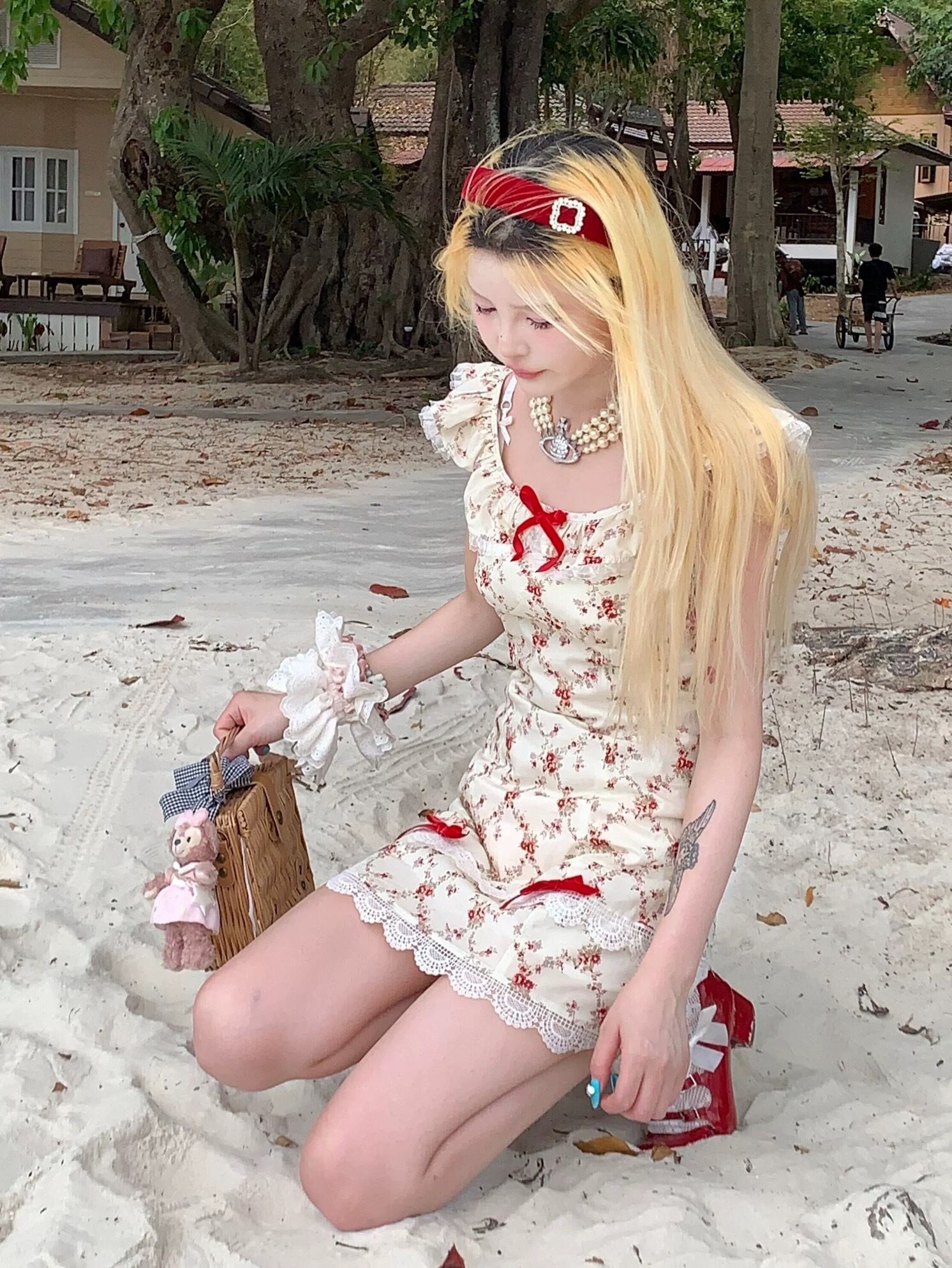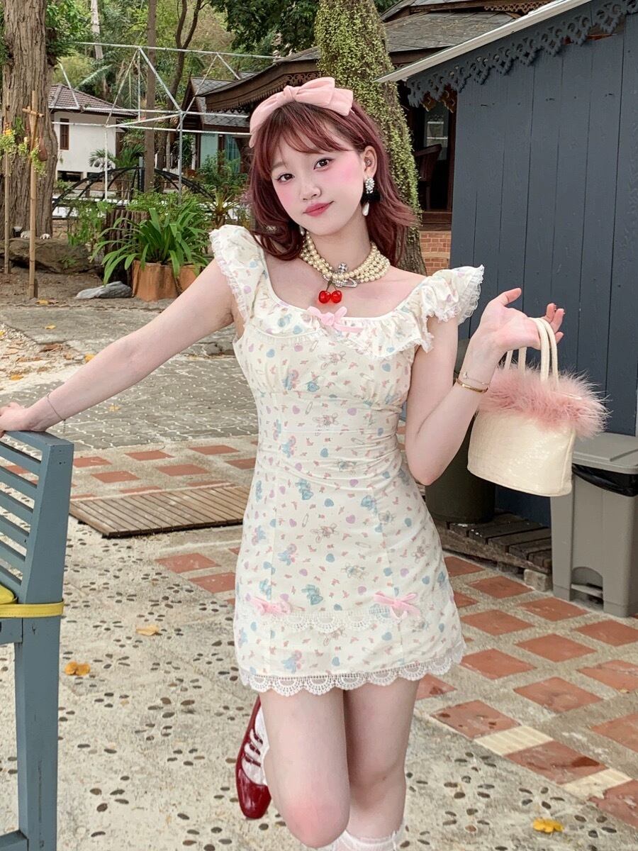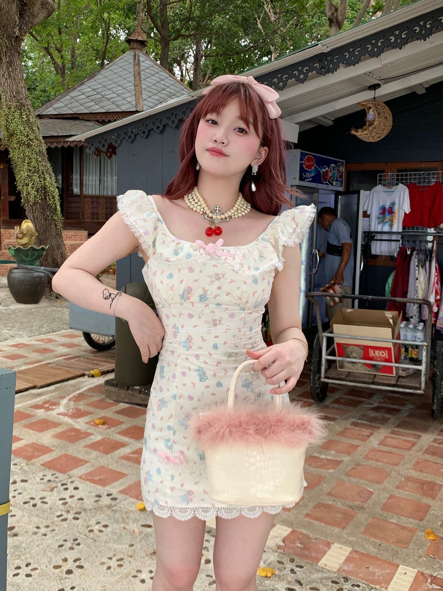 ピンク 花柄 フラワー 赤 白 ピンク リボン ガーリー 可愛い 姫 プリンセス ワンピース ロリータ 衣装 オフショルダー 可愛い 原宿 秋葉原 ドレス