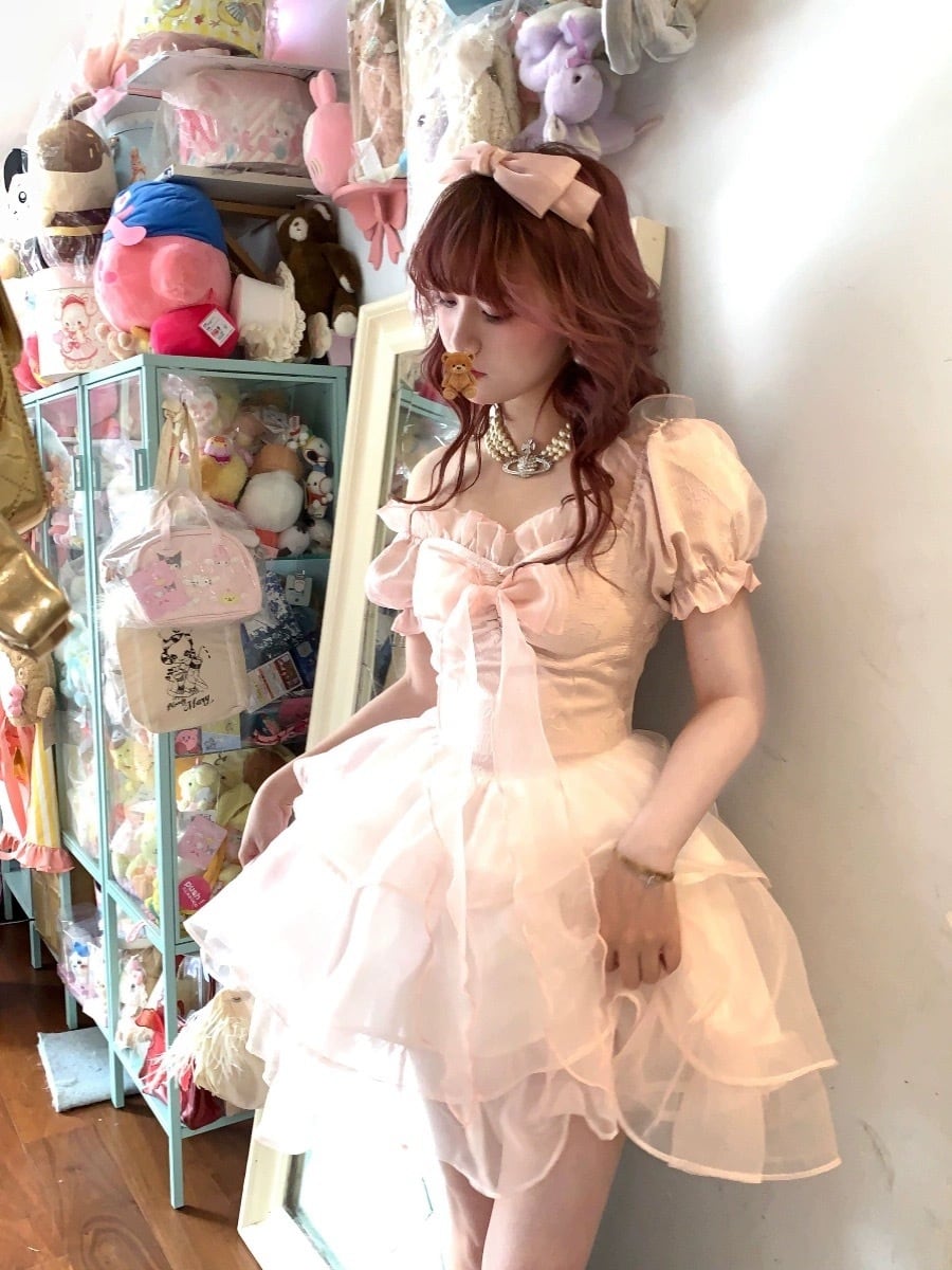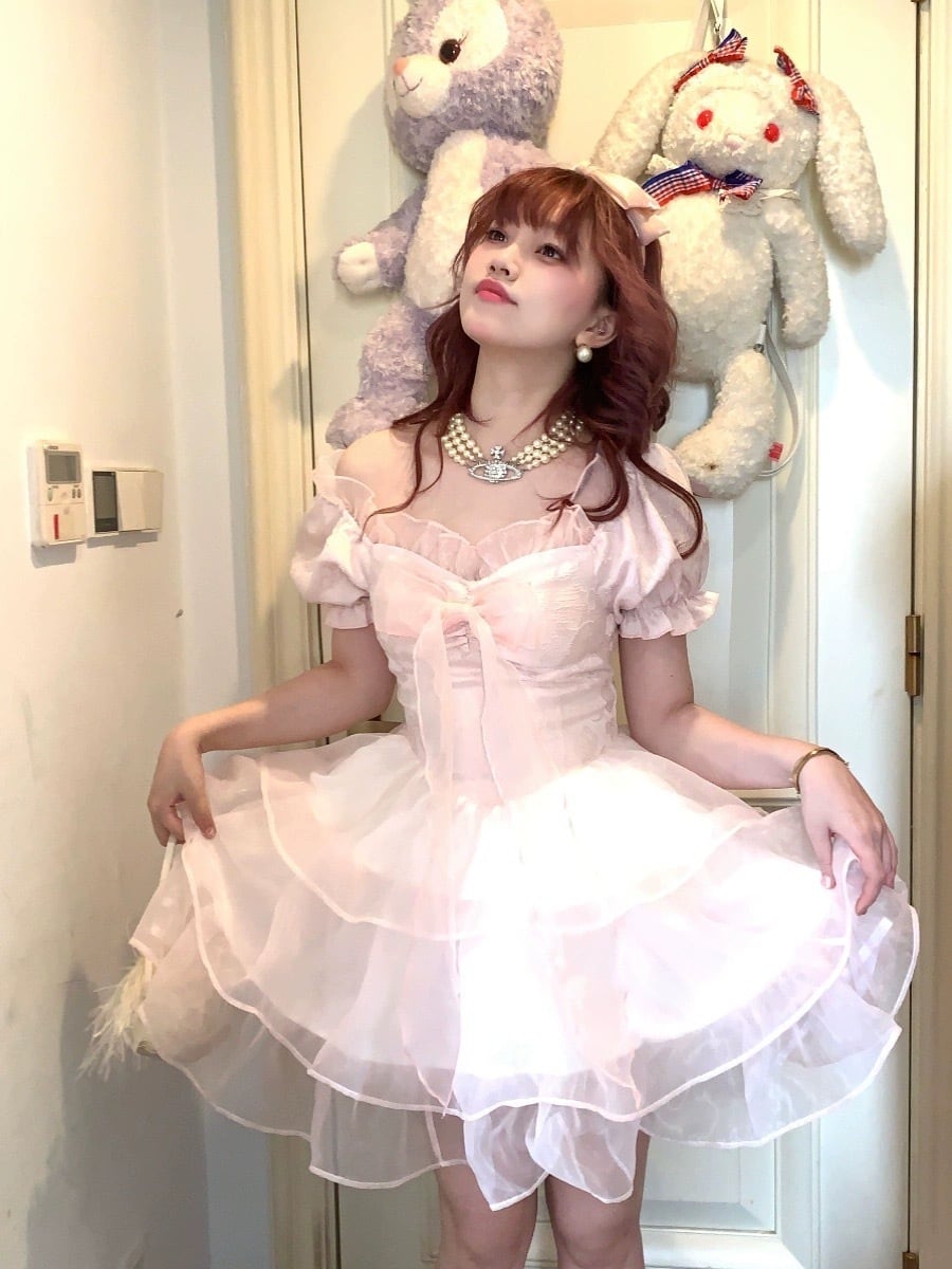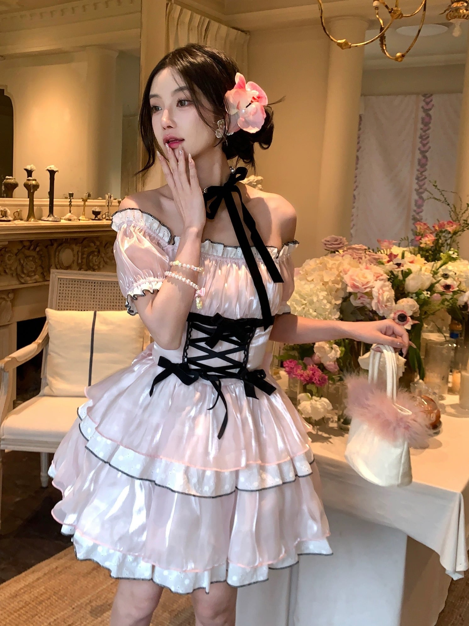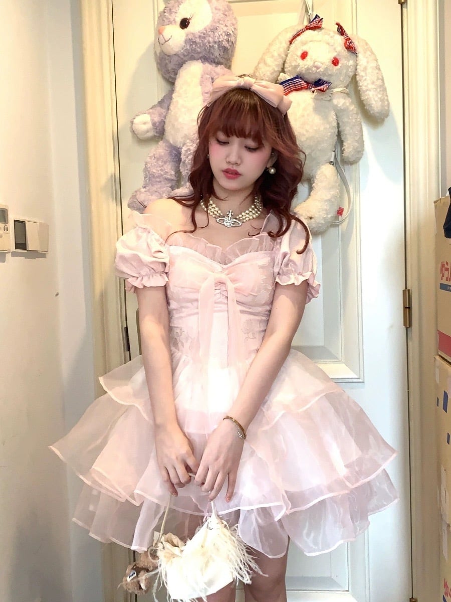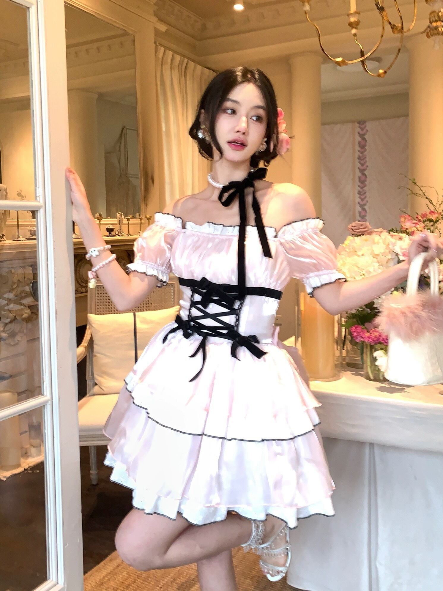 ピンク 白 オフショルダー 黒 白 ピンク リボン ガーリー 可愛い 姫 プリンセス ワンピース ロリータ 衣装 オフショルダー 可愛い 原宿 秋葉原 ドレス