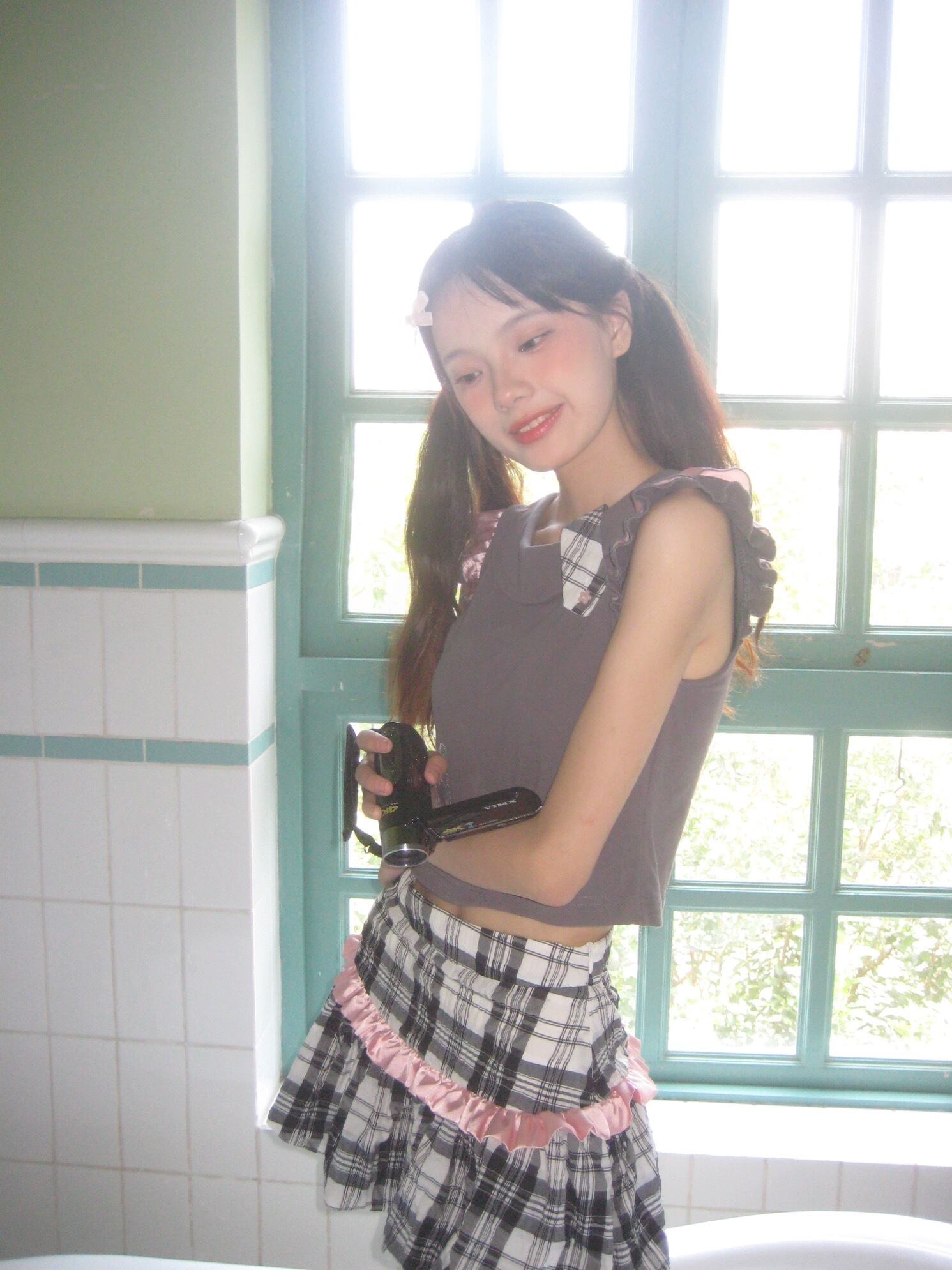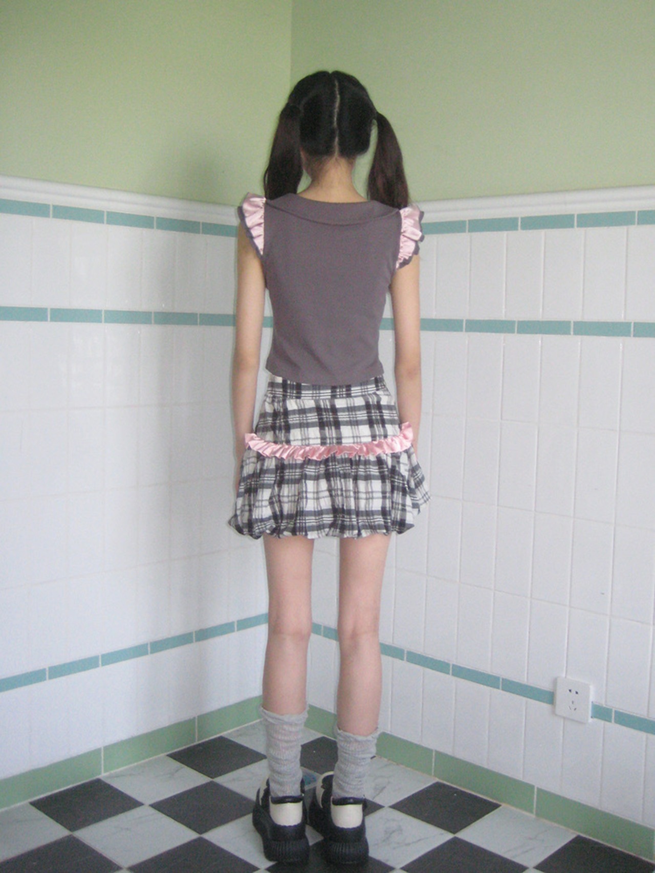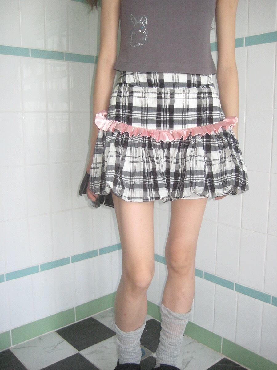 チェック ミニスカート ガーリー 可愛い ピンク グレー