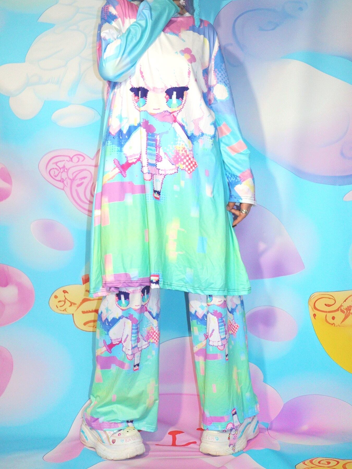 パンツ カジュアル カラフル 水色 紫 原宿 グラデーション 渋谷 ガーリー