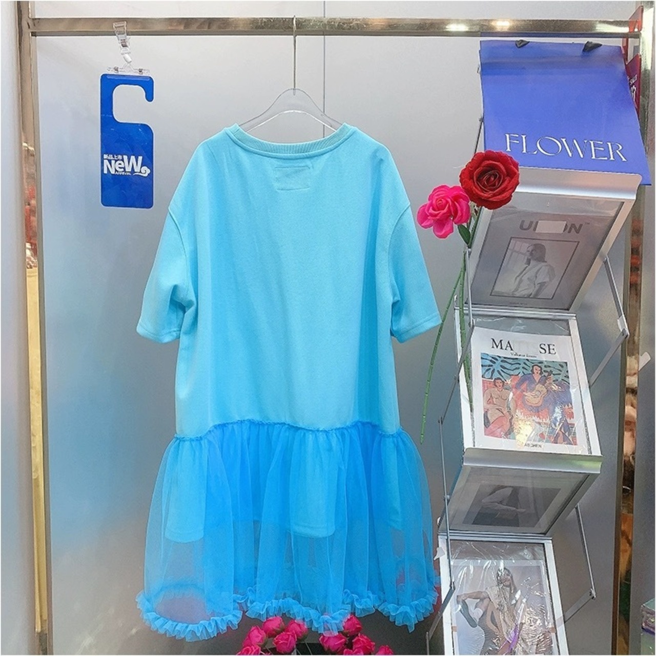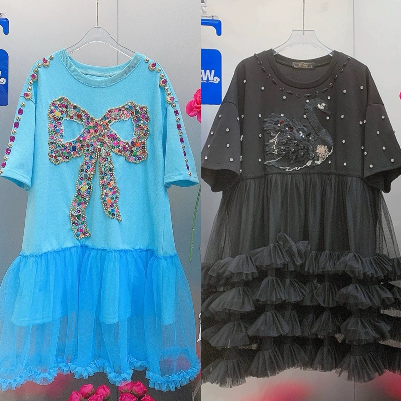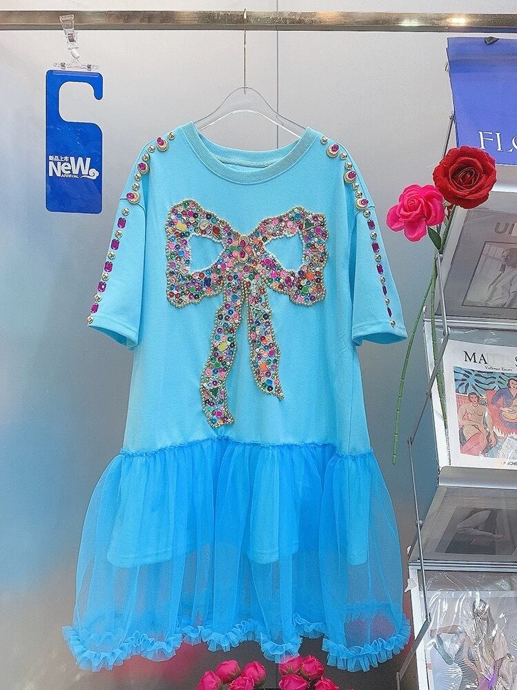ワンピース 水色 黒 ラインストーン キラキラ カジュアル デコレーション