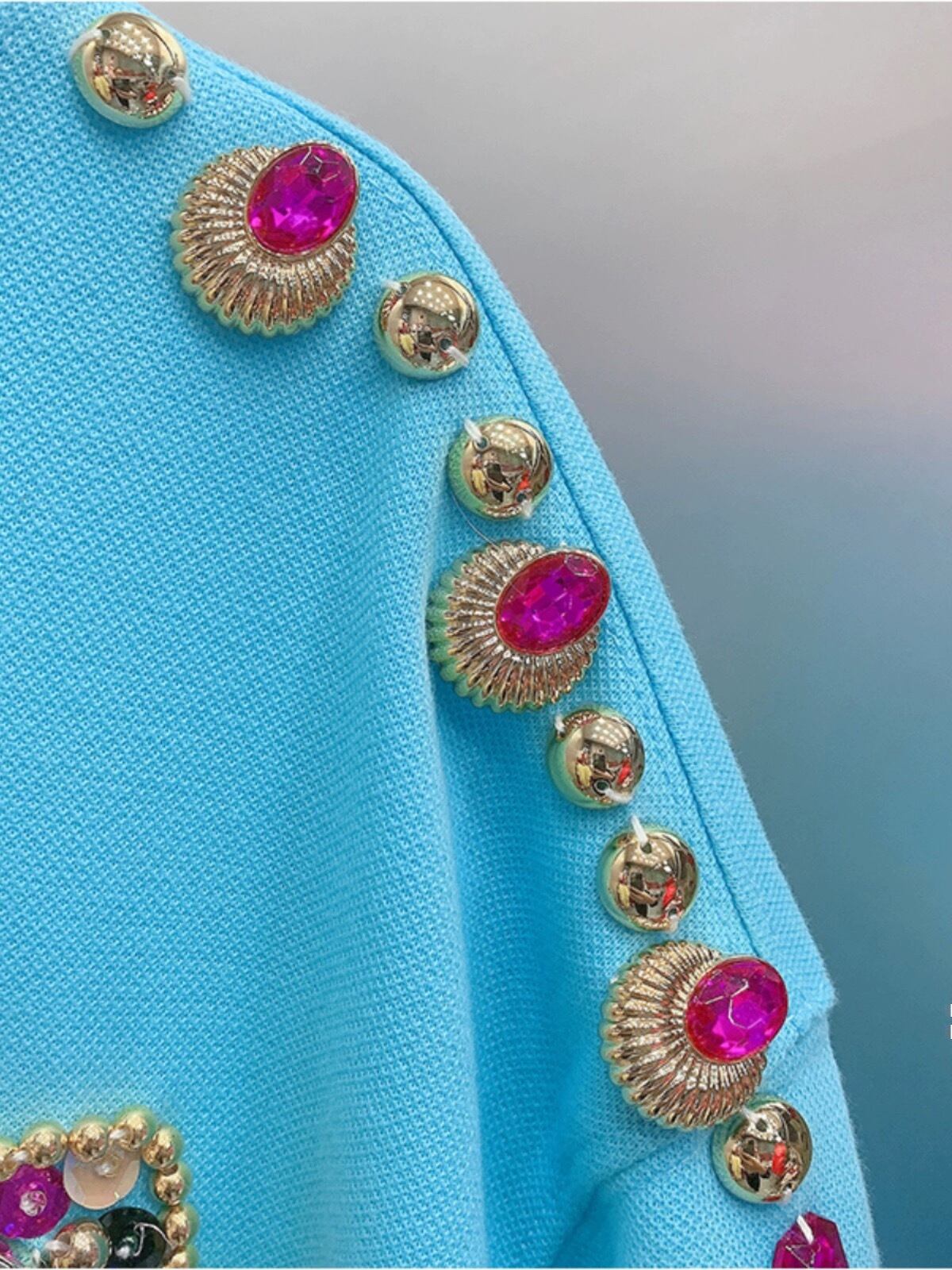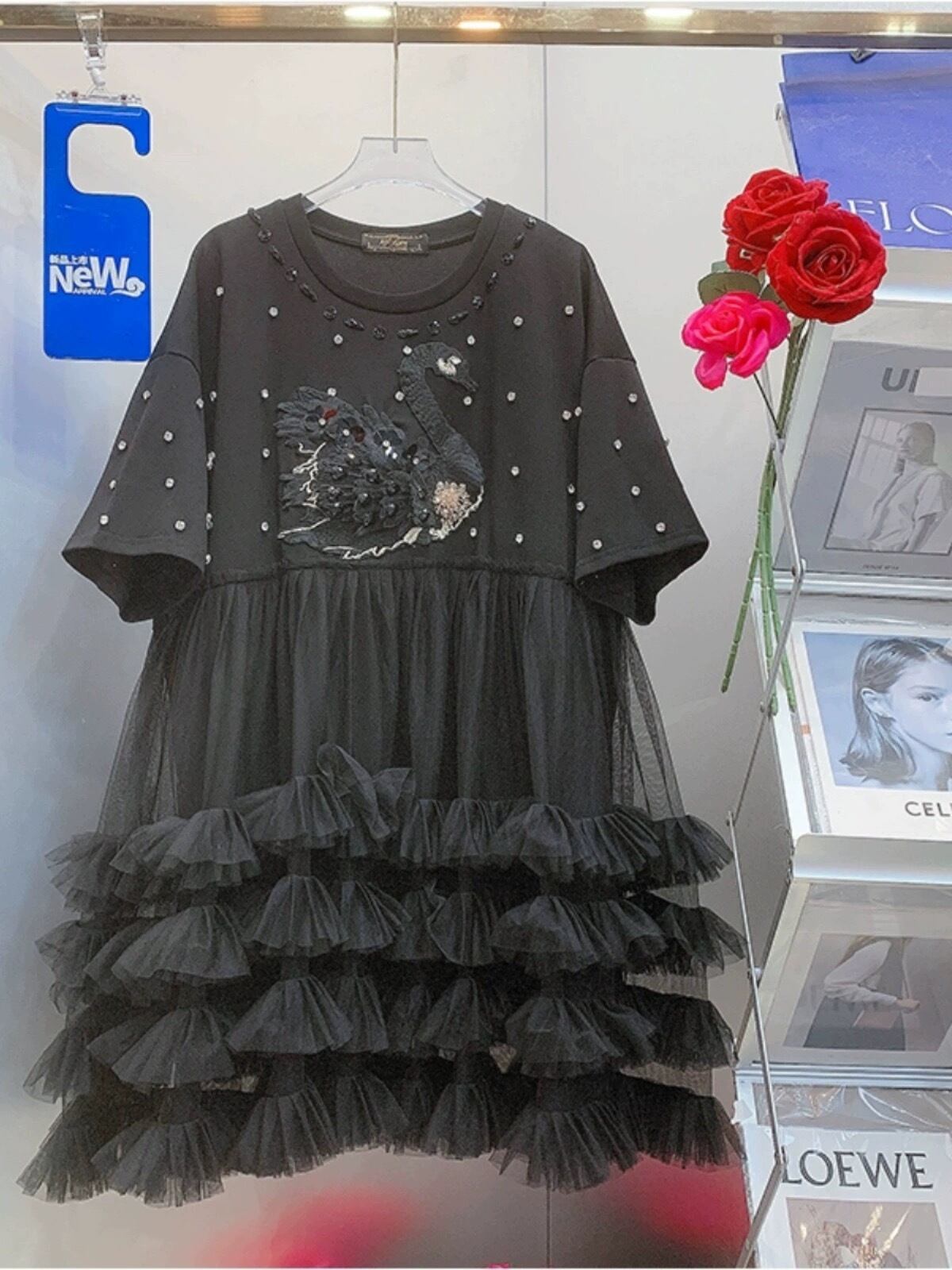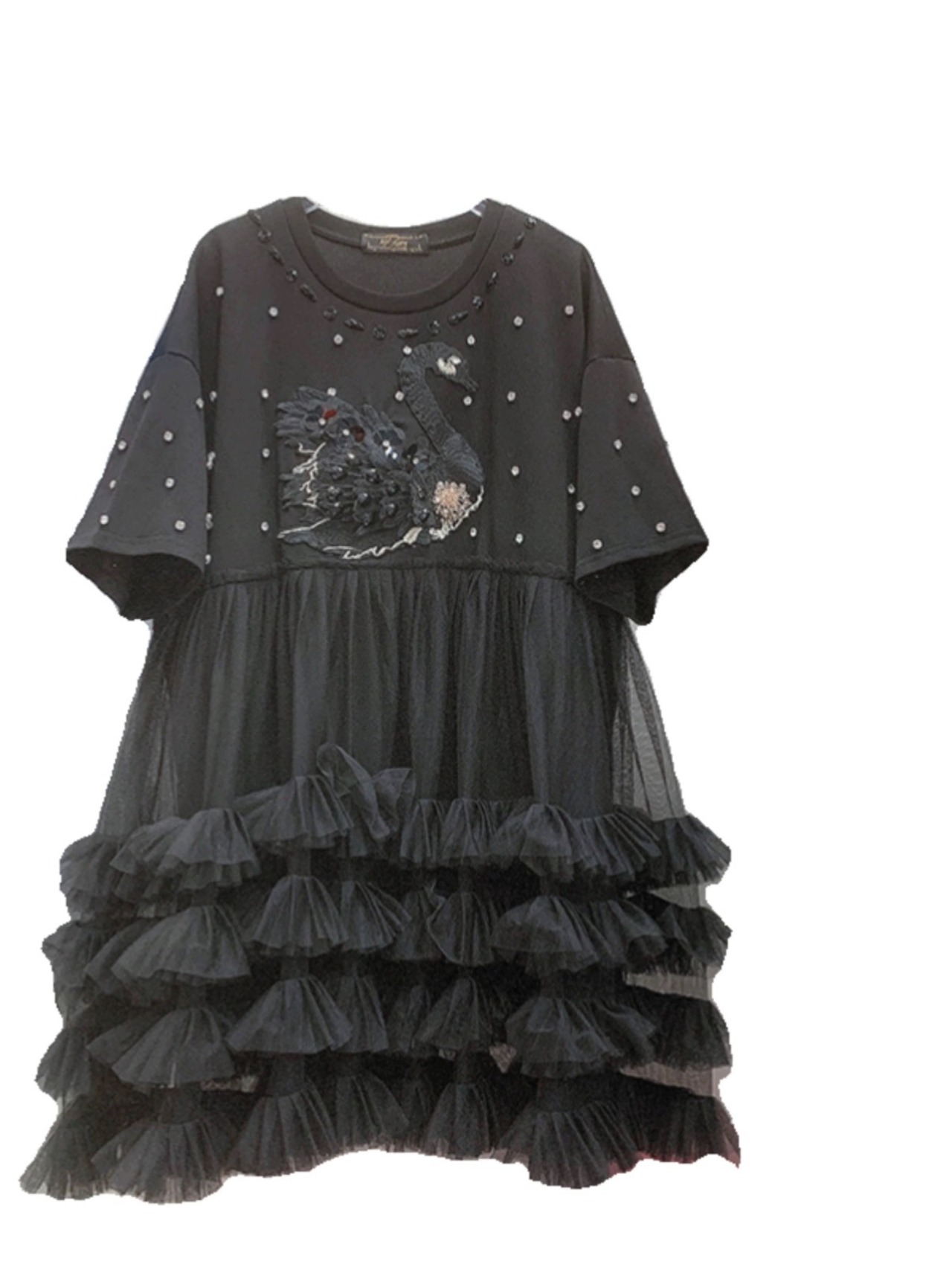 ワンピース 水色 黒 ラインストーン キラキラ カジュアル デコレーション