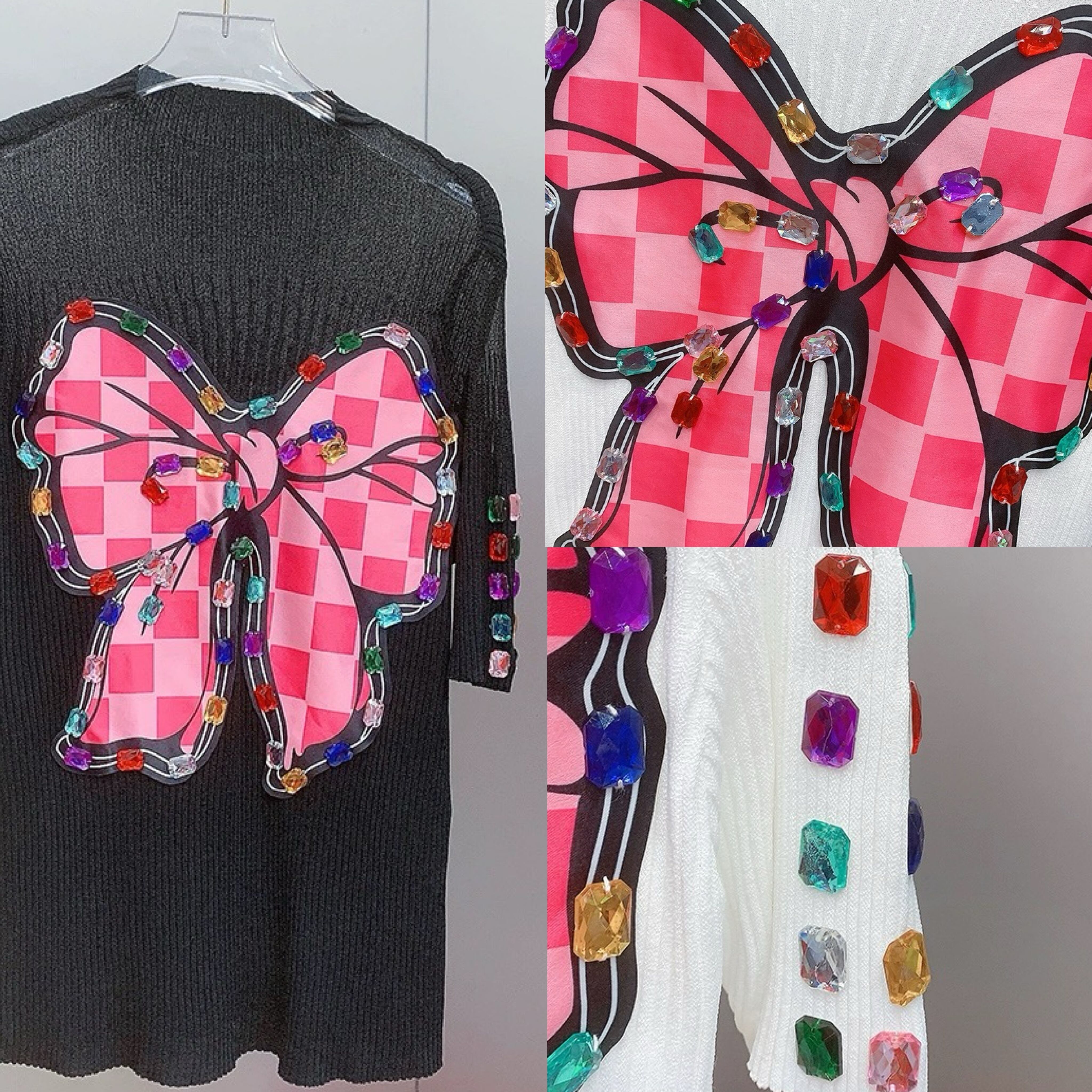 ラインストーン 黒 白 リボン カラフル ブラウス