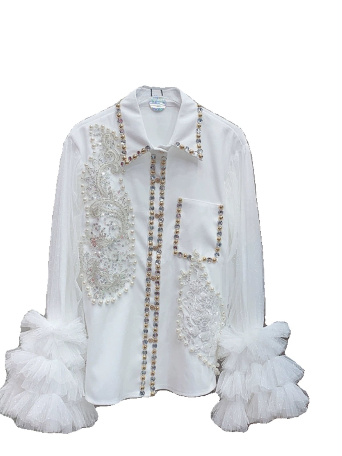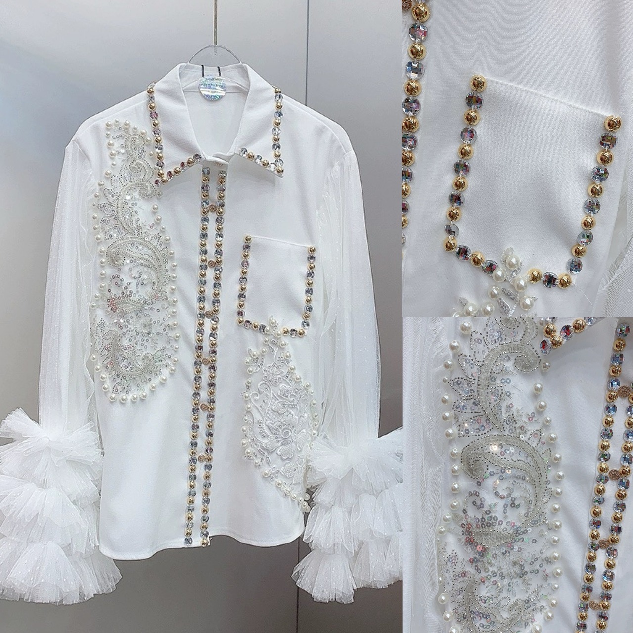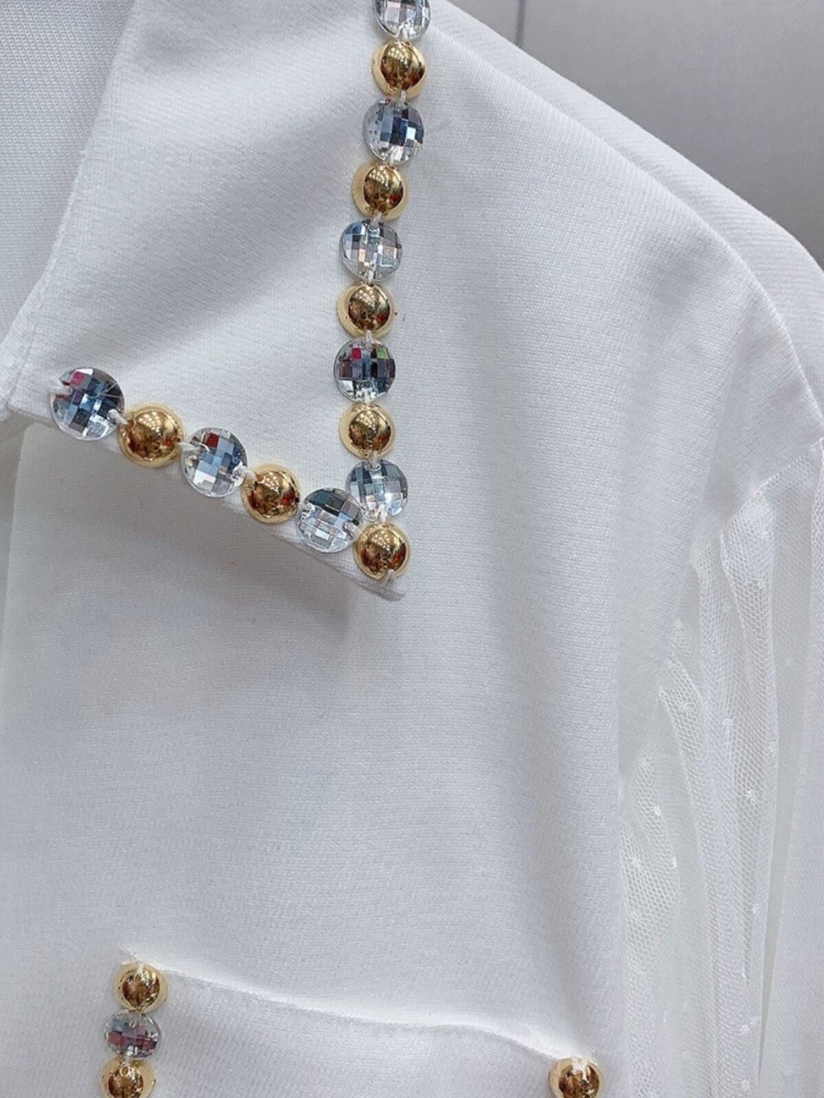 白 ブラウス ラインストーン カジュアル トップス シャツ