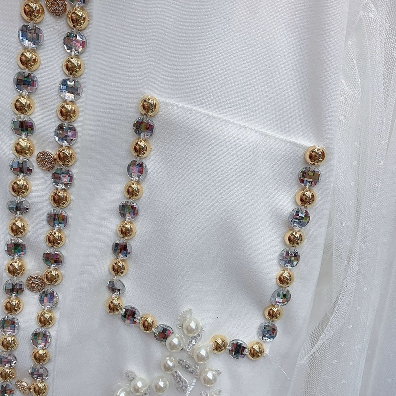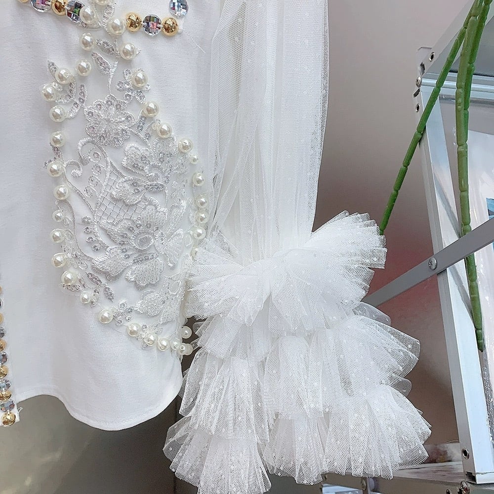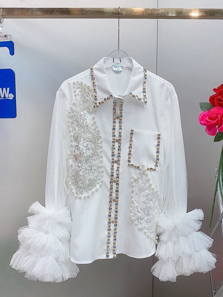 白 ブラウス ラインストーン カジュアル トップス シャツ