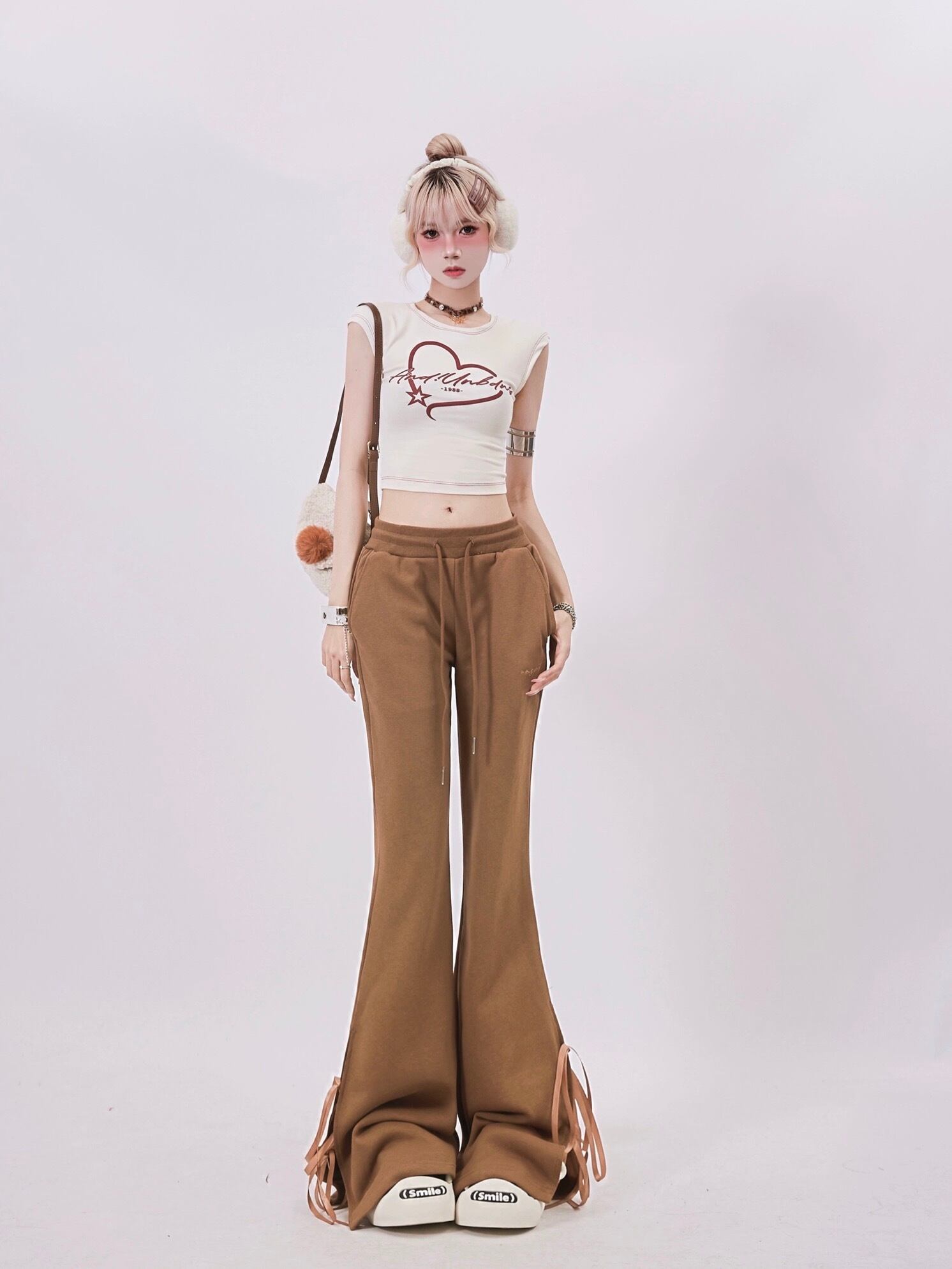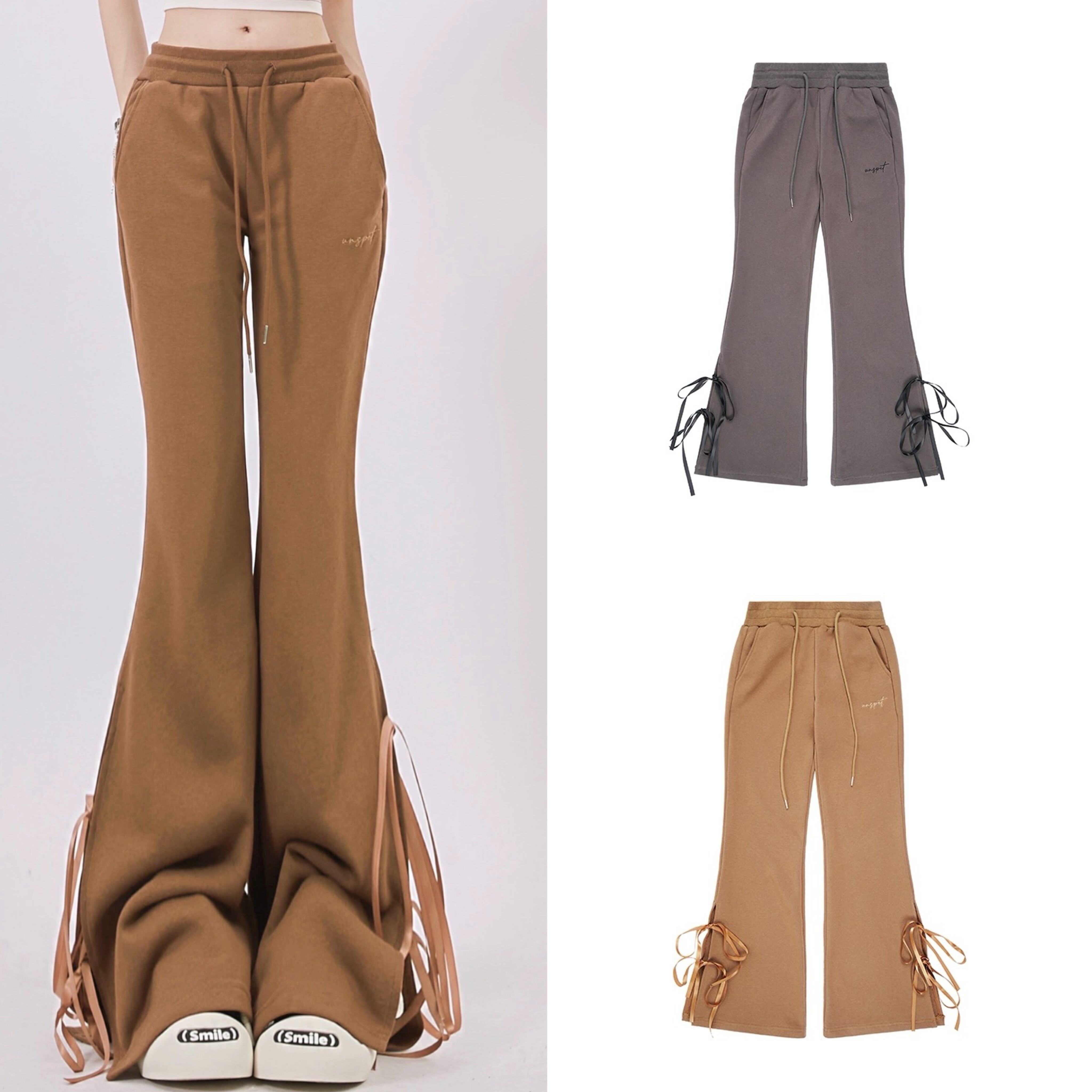 ベージュ グレー リボン デニム パンツ ピンク バタフライ スウェット ズボン カジュアル ピンク 可愛い 原宿 ダンス ジム 運動 ダメージ XL 渋谷 キャラメル