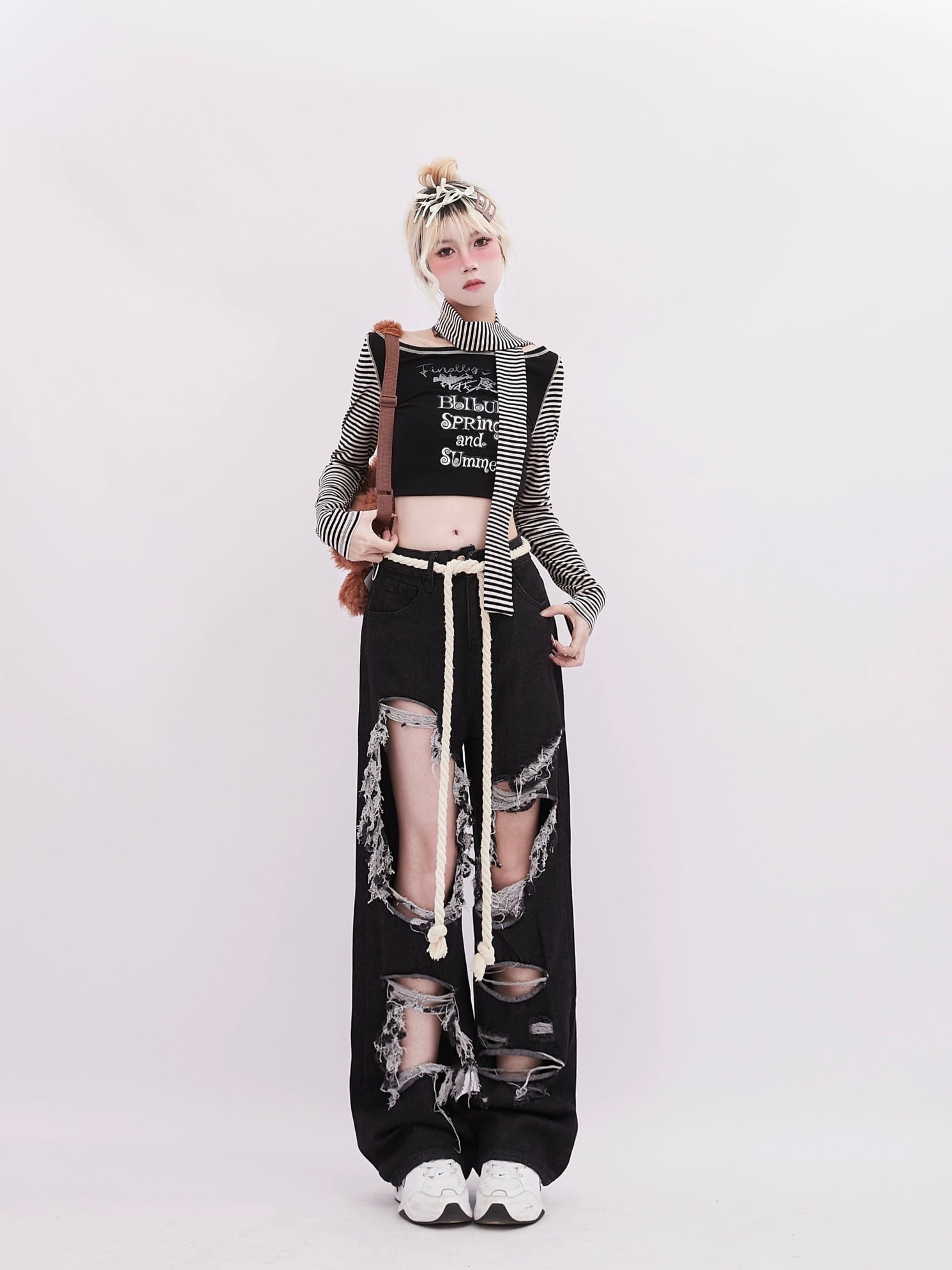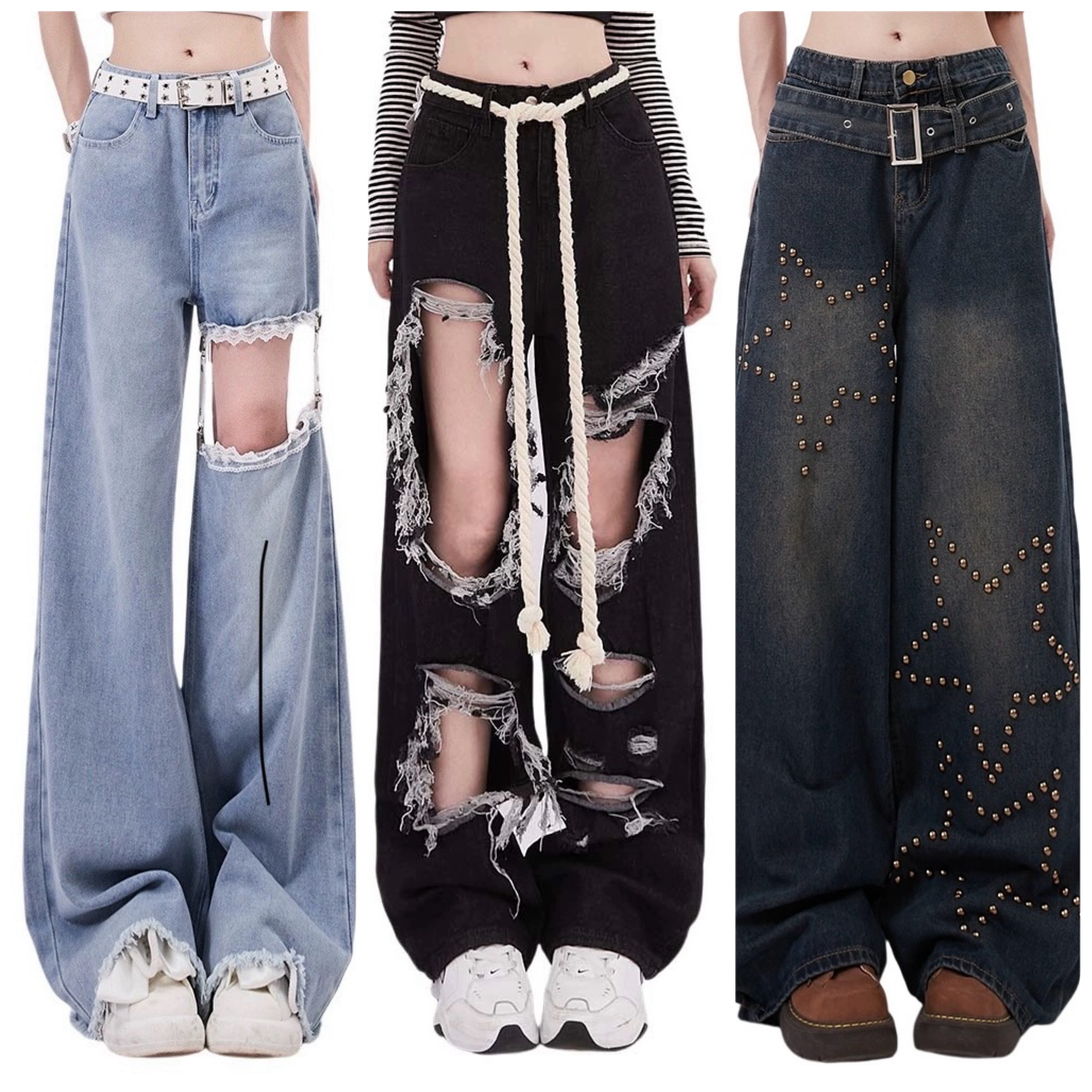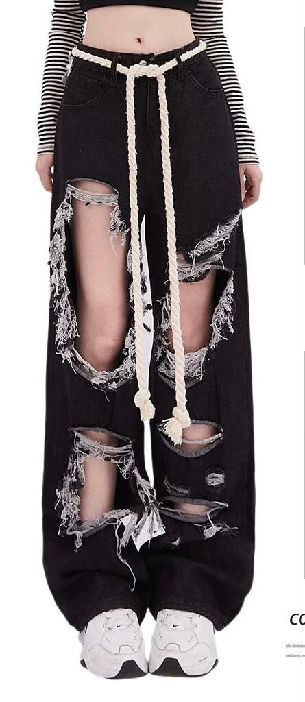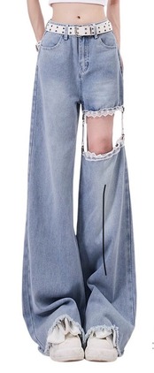ダメージ デニム 水色 カジュアル 穴あき デニム パンツ ピンク バタフライ スウェット ズボン カジュアル ピンク 可愛い 原宿 ダンス ジム 運動 ダメージ XL 渋谷