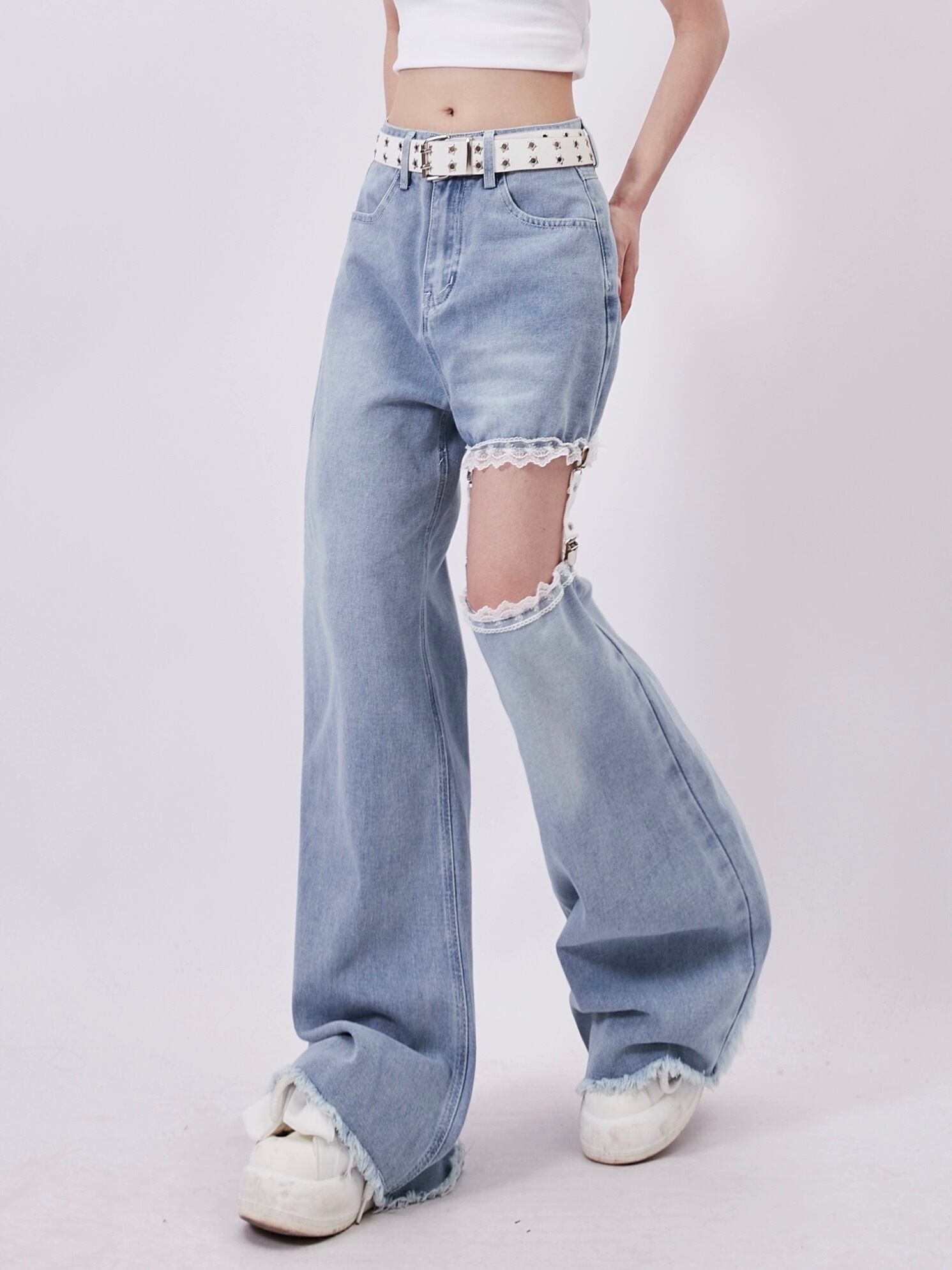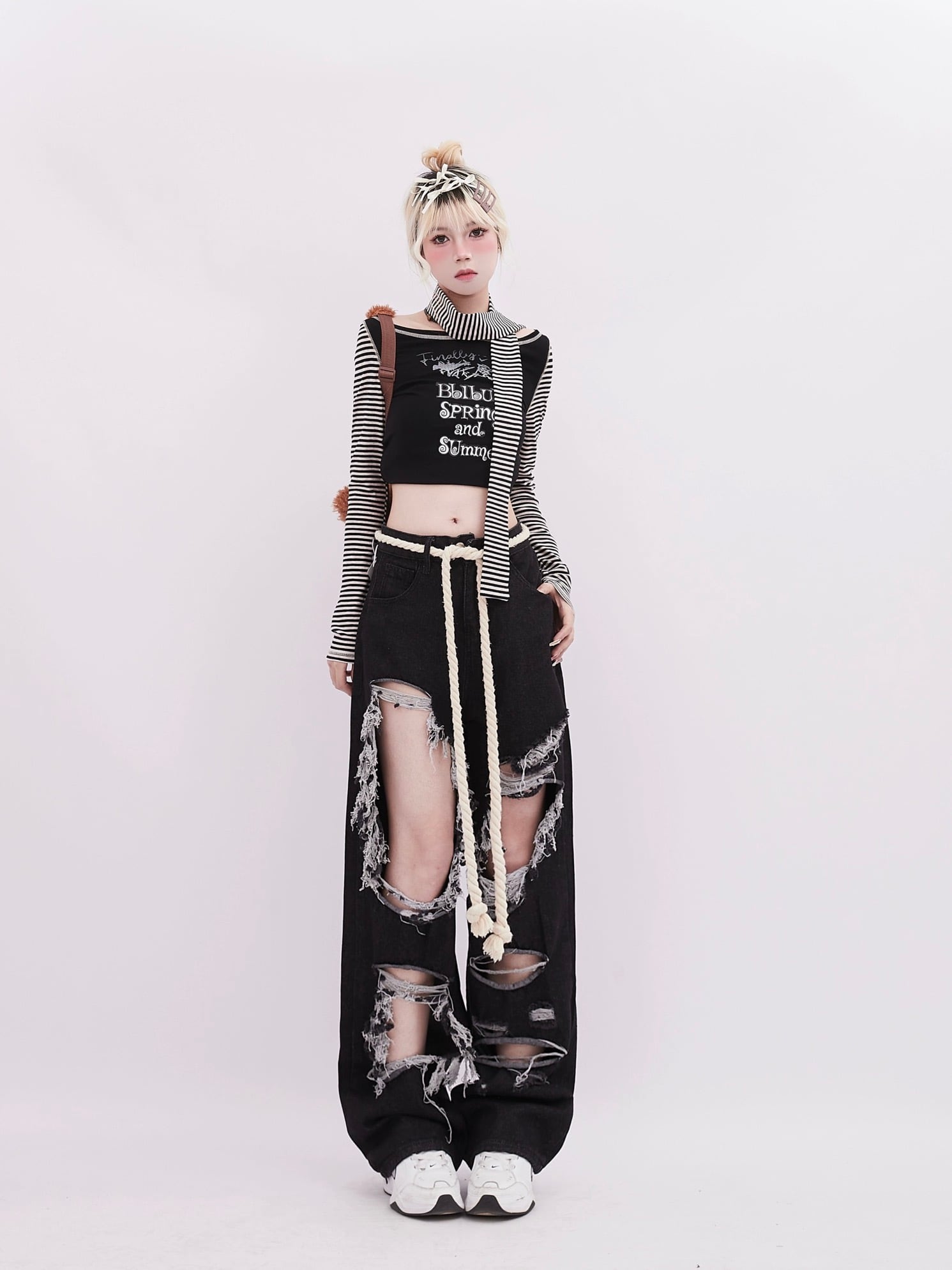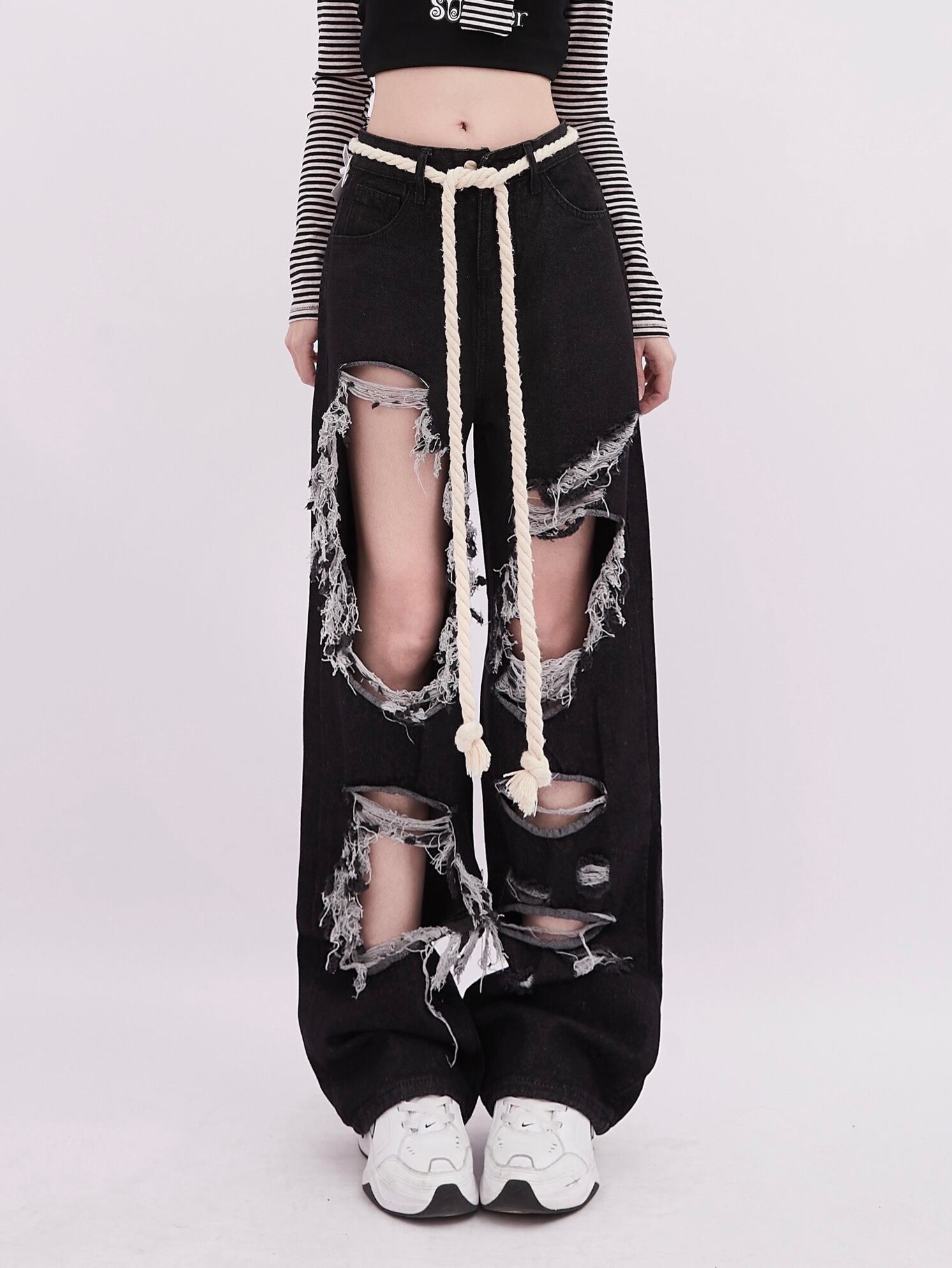 ダメージ デニム 水色 カジュアル 穴あき デニム パンツ ピンク バタフライ スウェット ズボン カジュアル ピンク 可愛い 原宿 ダンス ジム 運動 ダメージ XL 渋谷