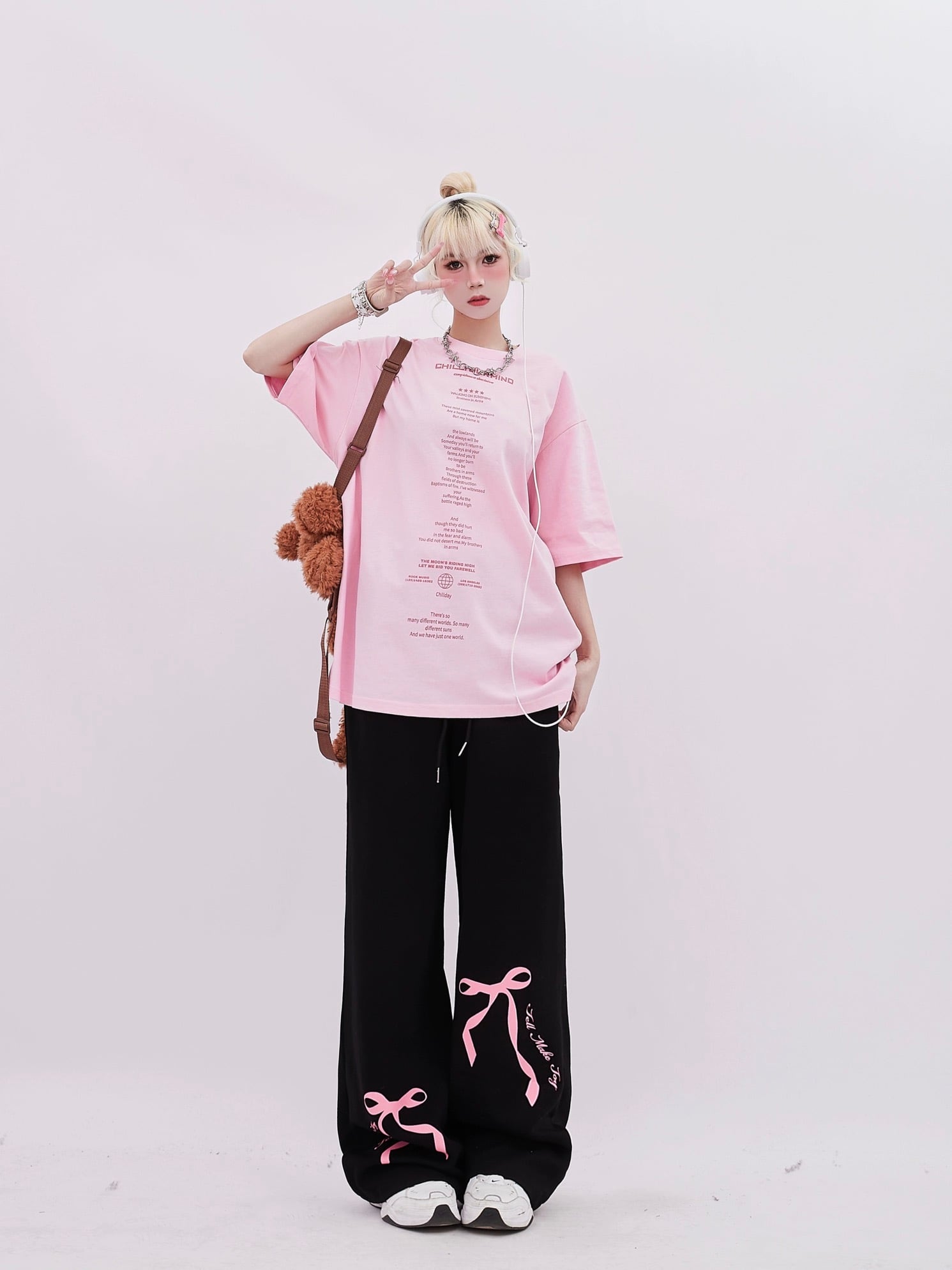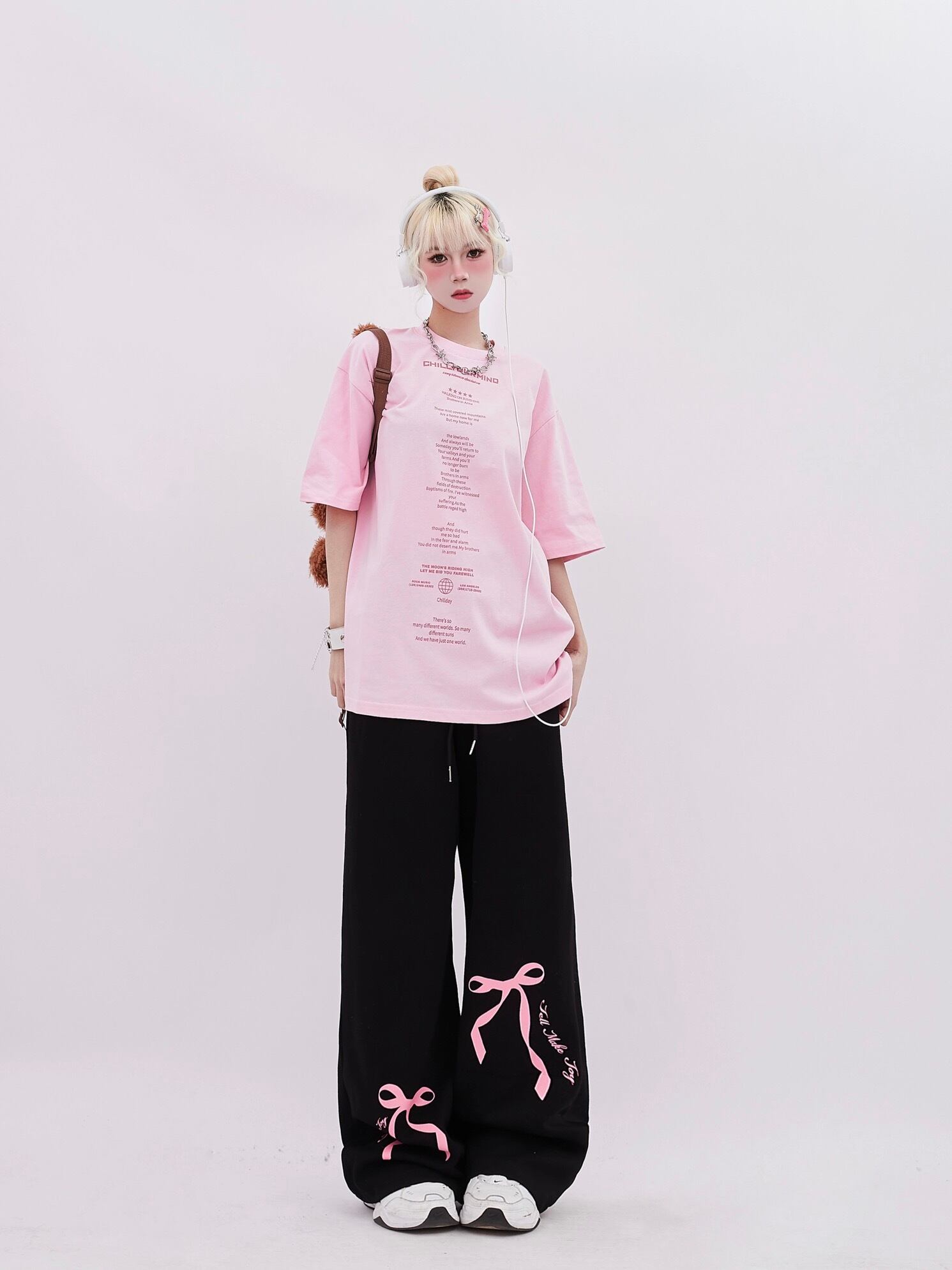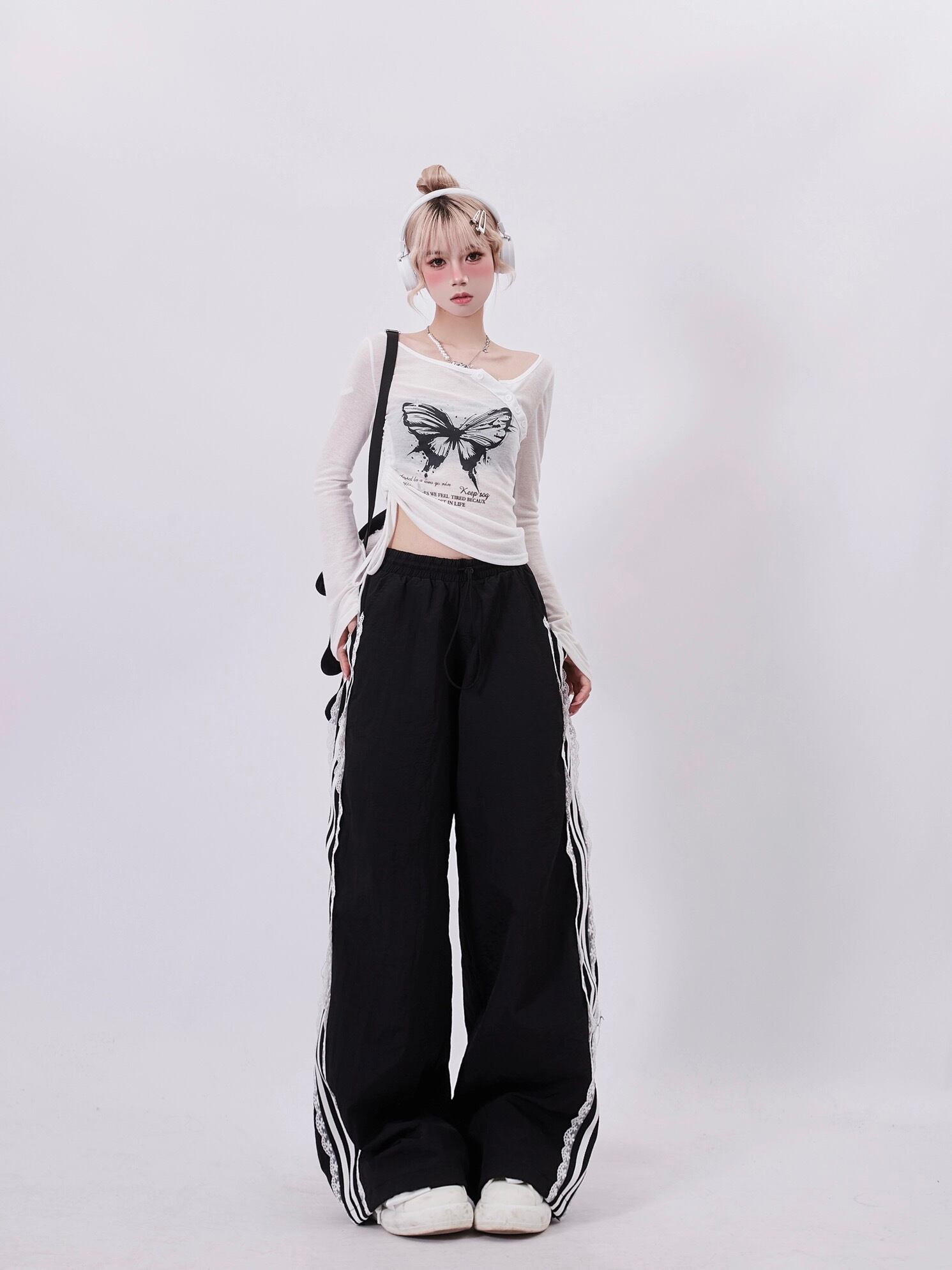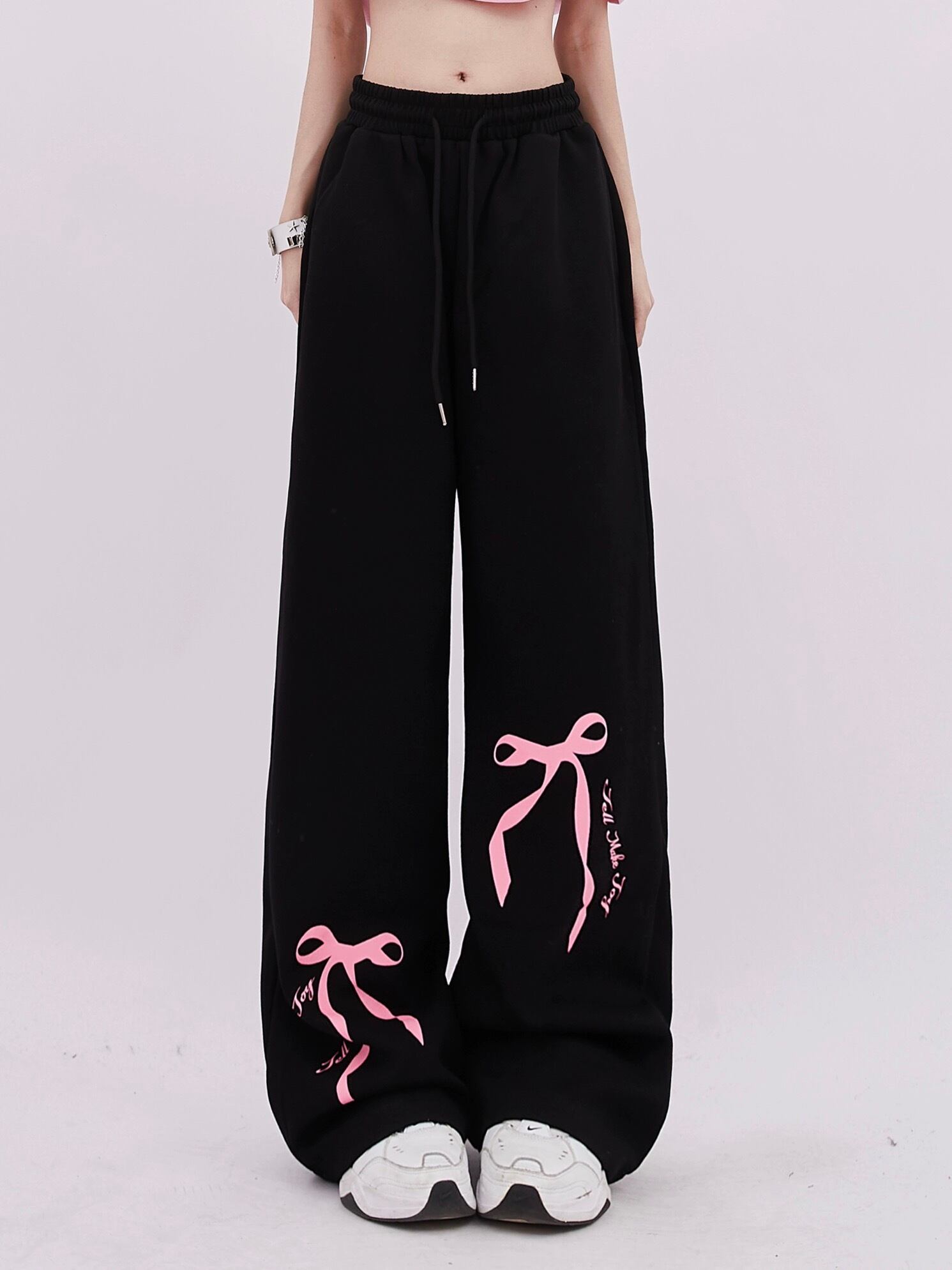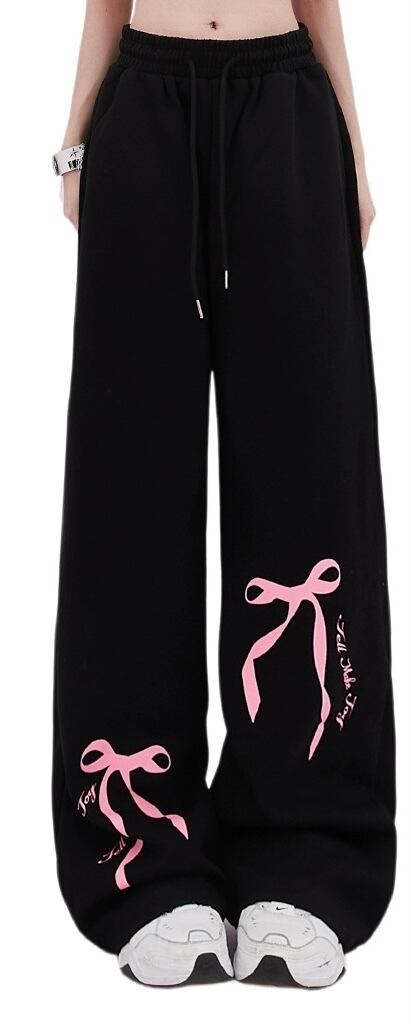 ピンク リボン 白 フリル デニム パンツ ピンク バタフライ スウェット ズボン カジュアル ピンク 可愛い 原宿 ダンス ジム 運動 ダメージ XL 渋谷