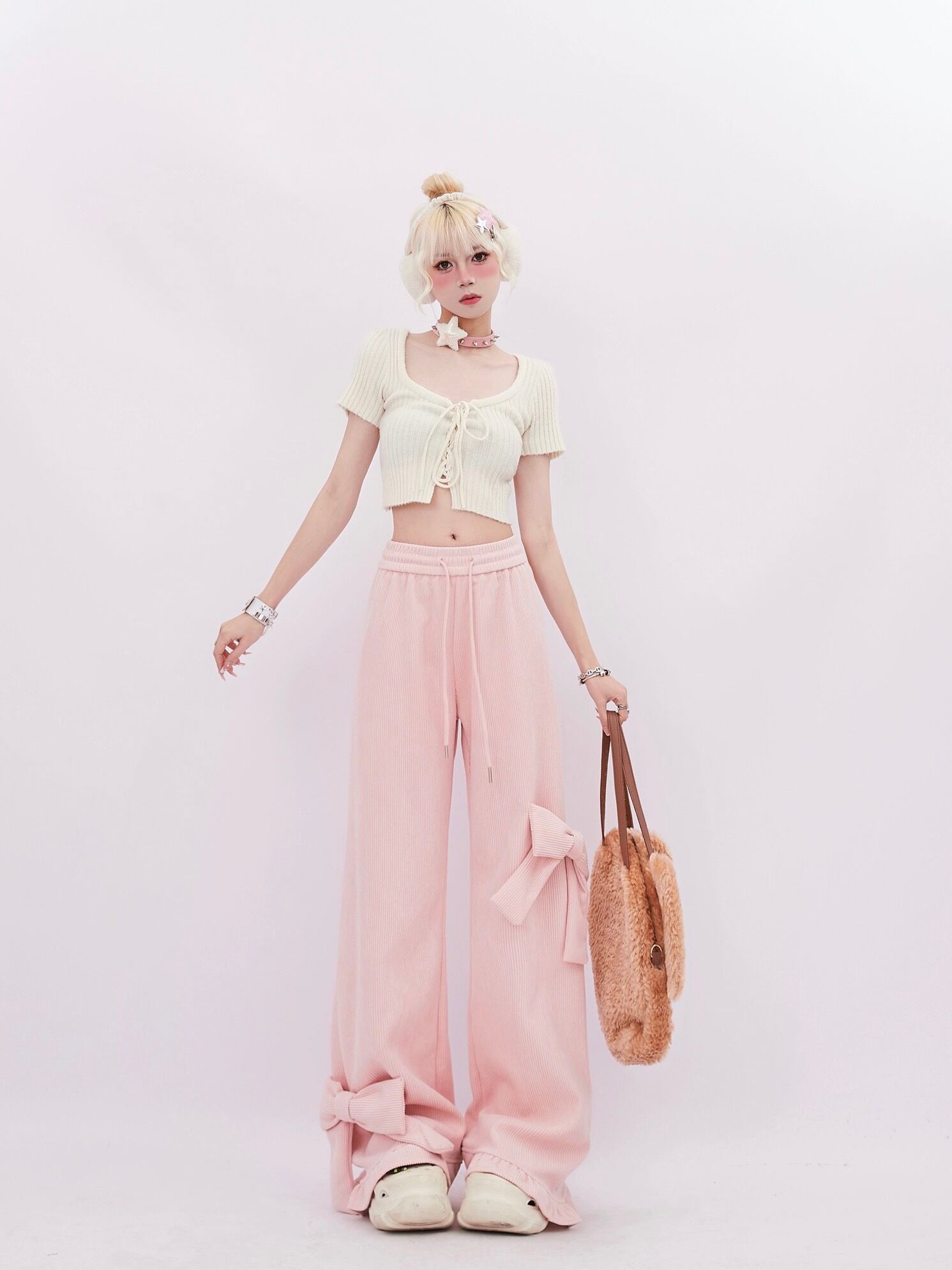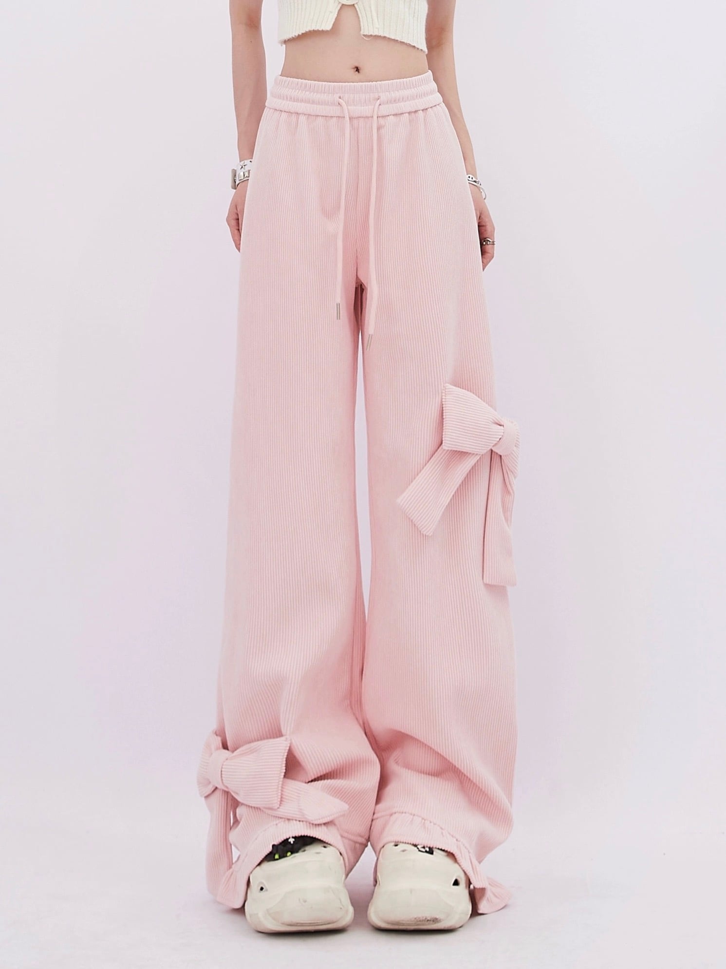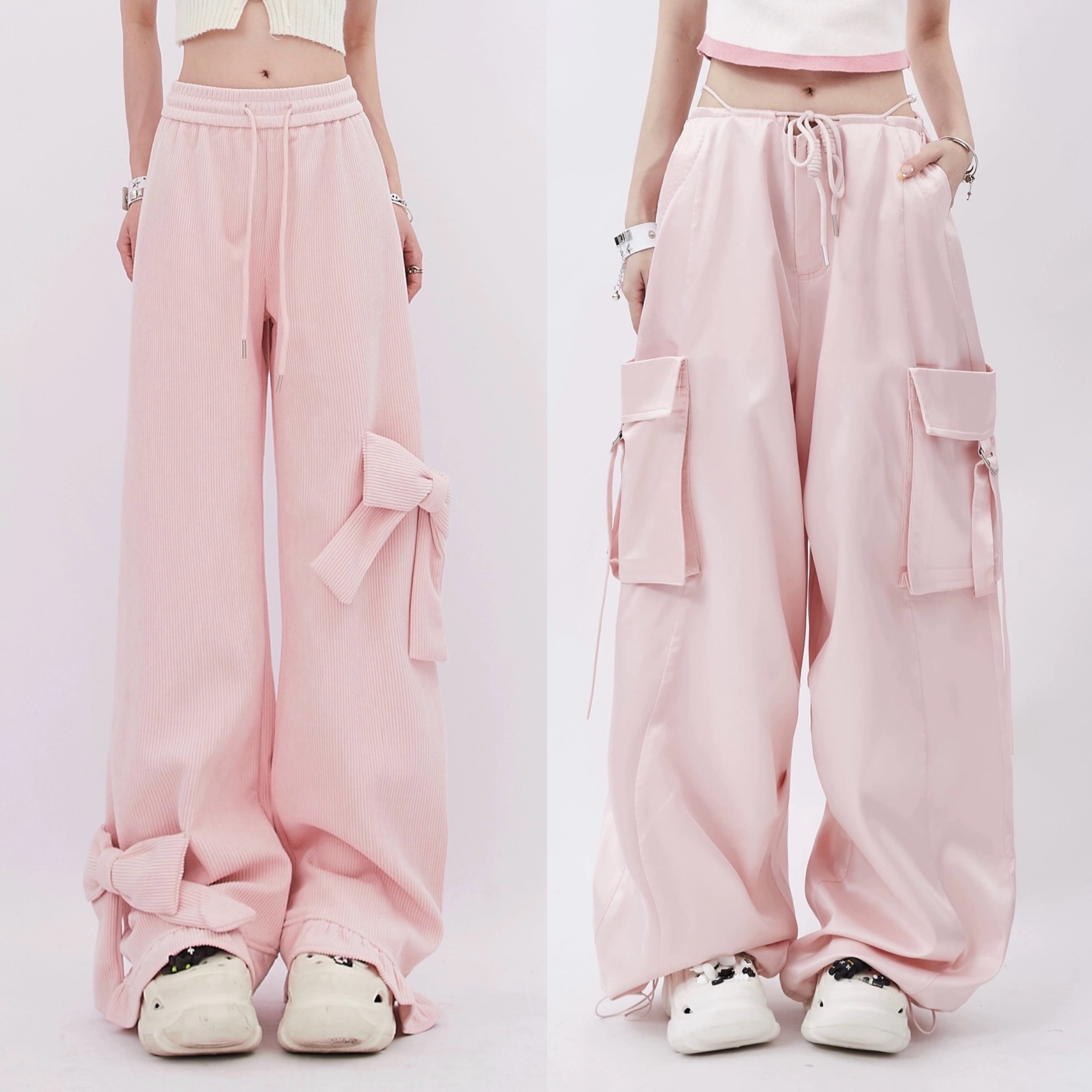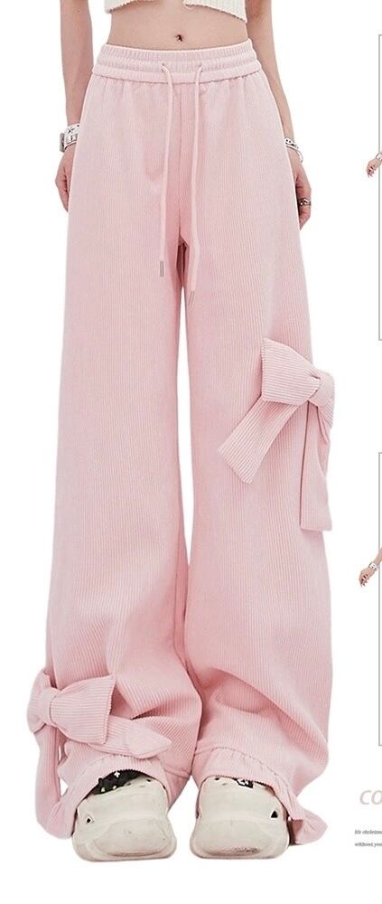 ピンク ポケット リボン デニム パンツ ピンク バタフライ スウェット ズボン カジュアル ピンク 可愛い 原宿 ダンス ジム 運動 ダメージ XL 渋谷