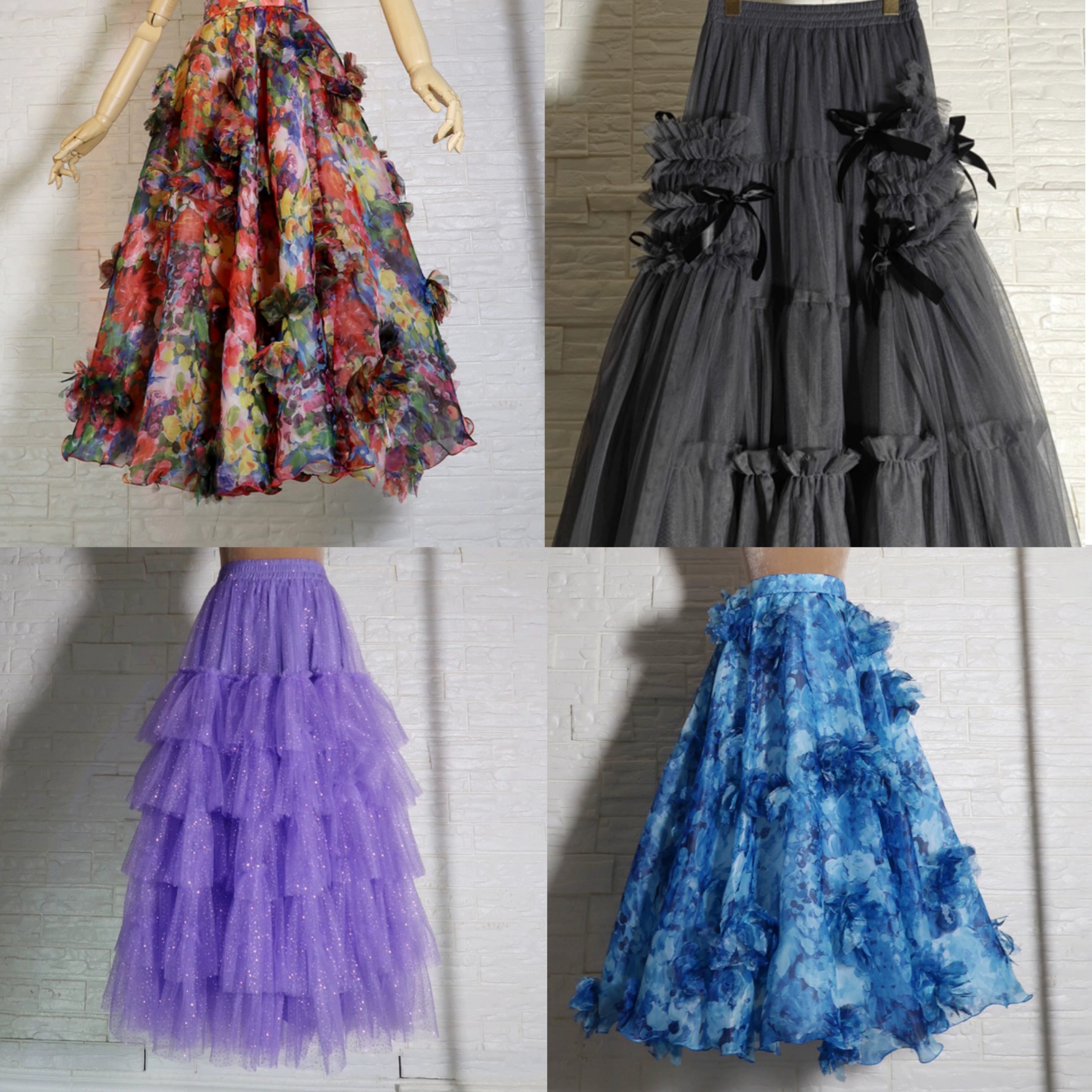 水色 ネイビー カラフル 花柄 紫 黒 スカート