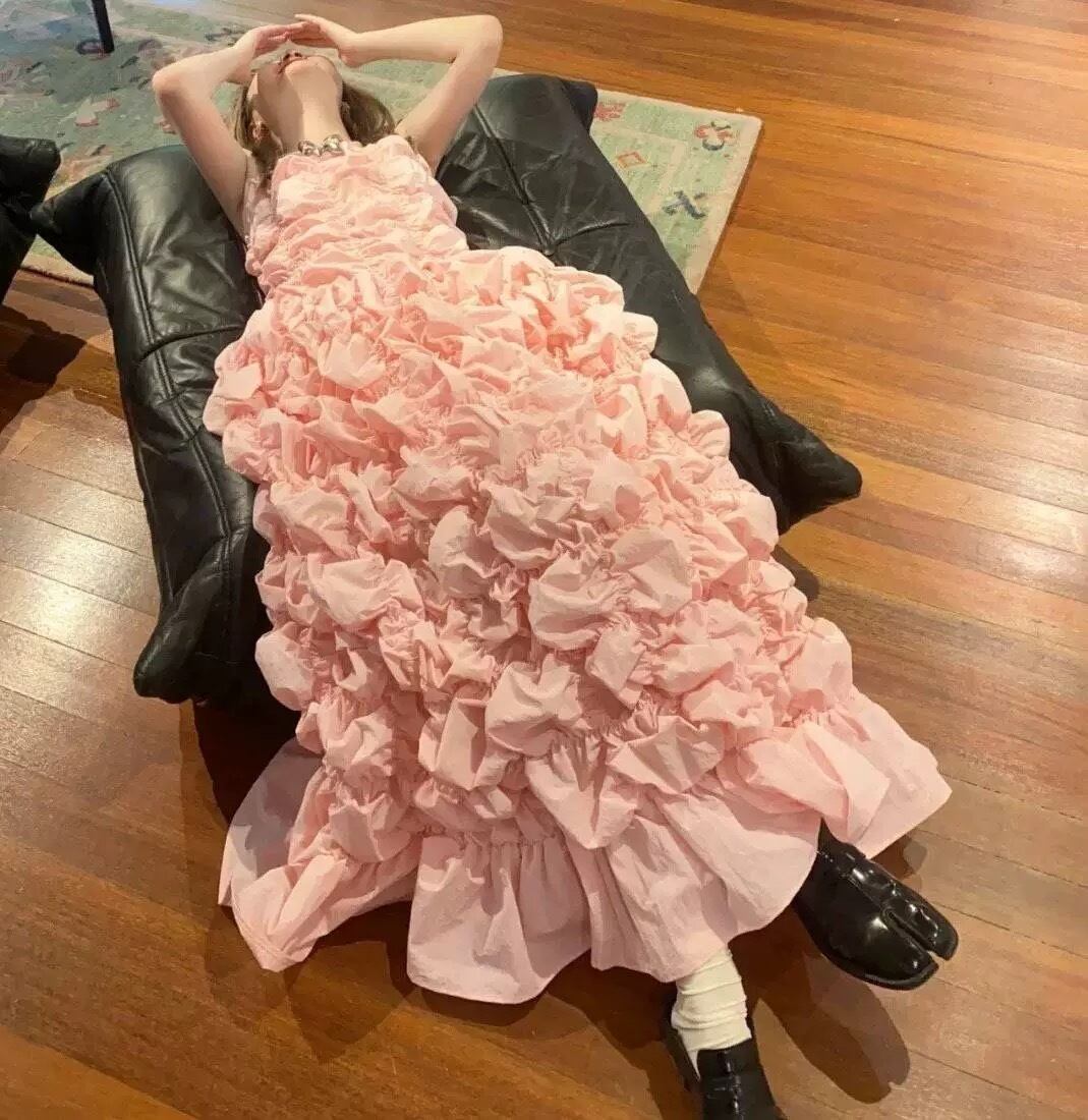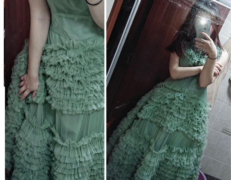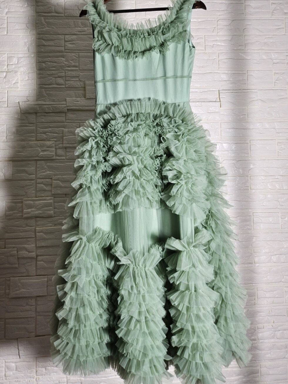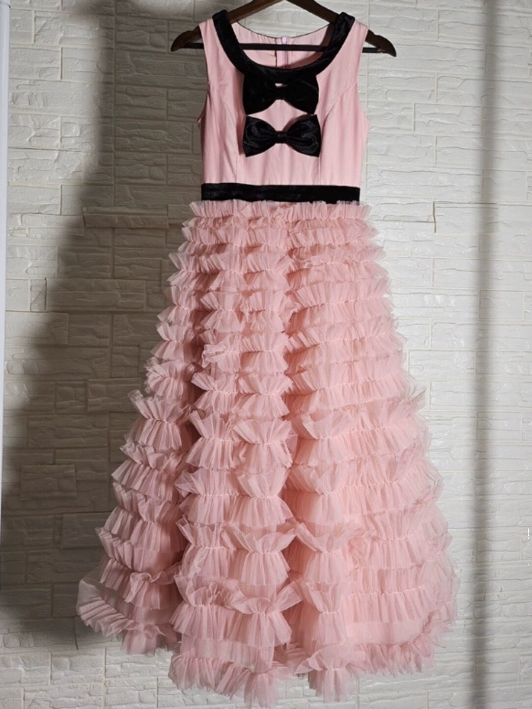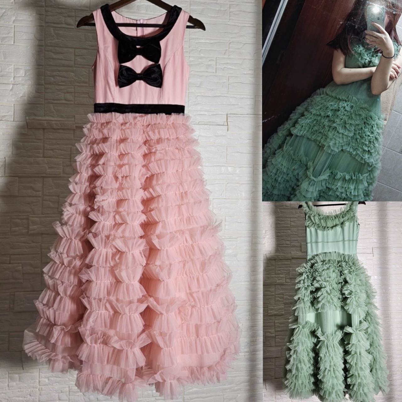 緑 ピンク ワンピース ガーリー ゆったり リボン