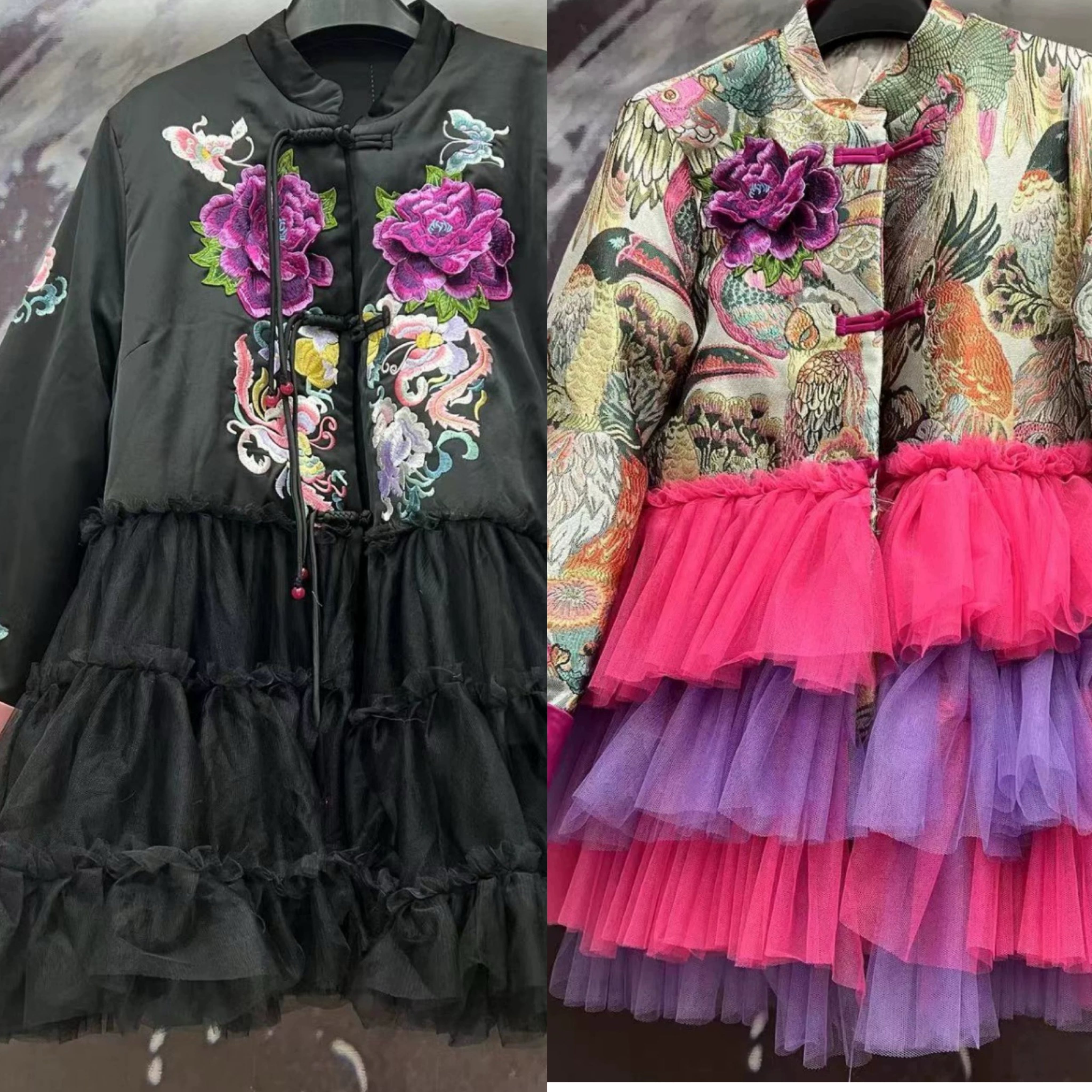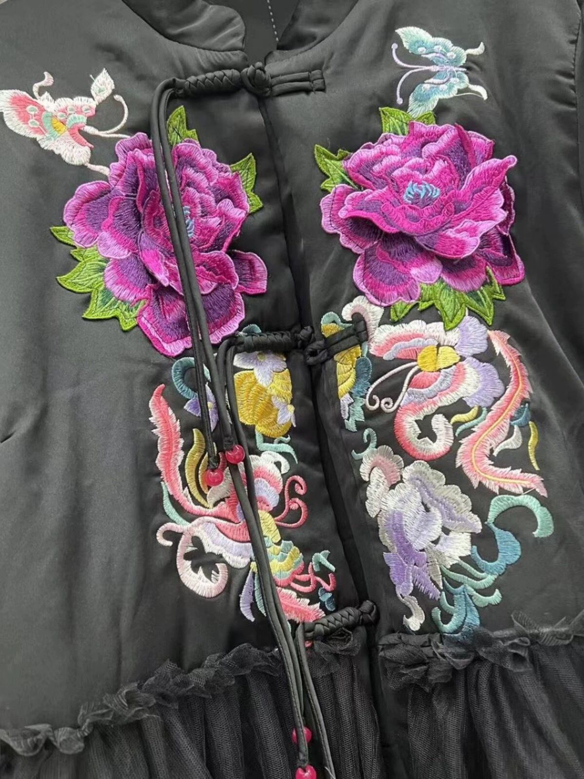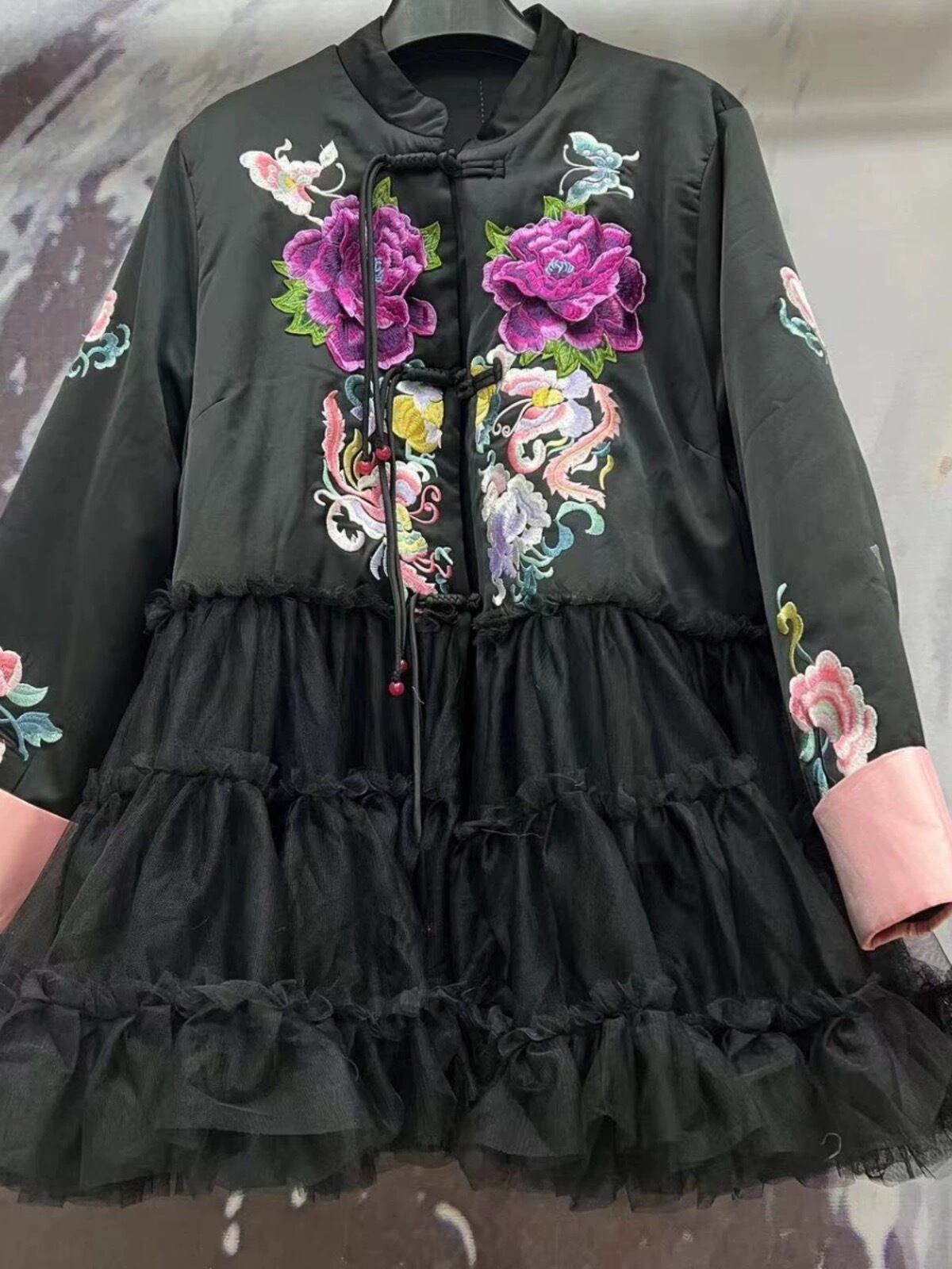 コート 黒 紫 花柄 フラワー アウター ワンピース カーディガン チャイナ服