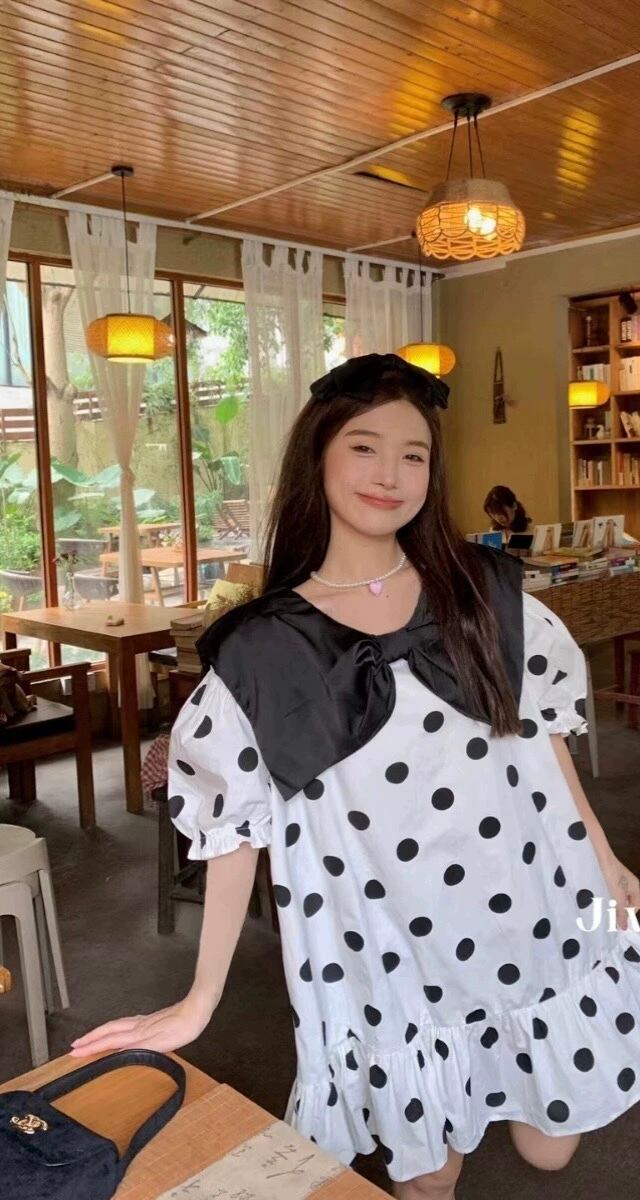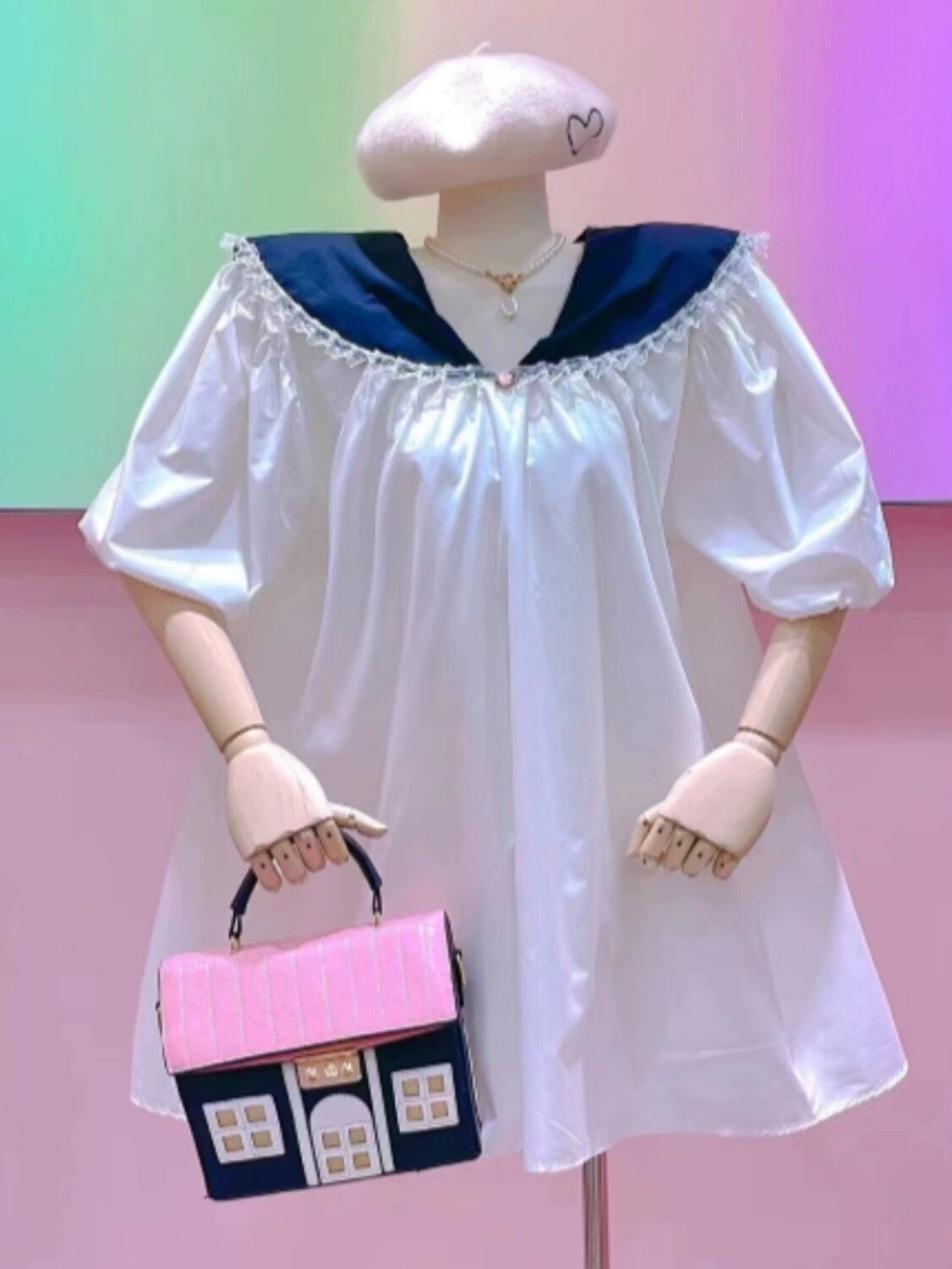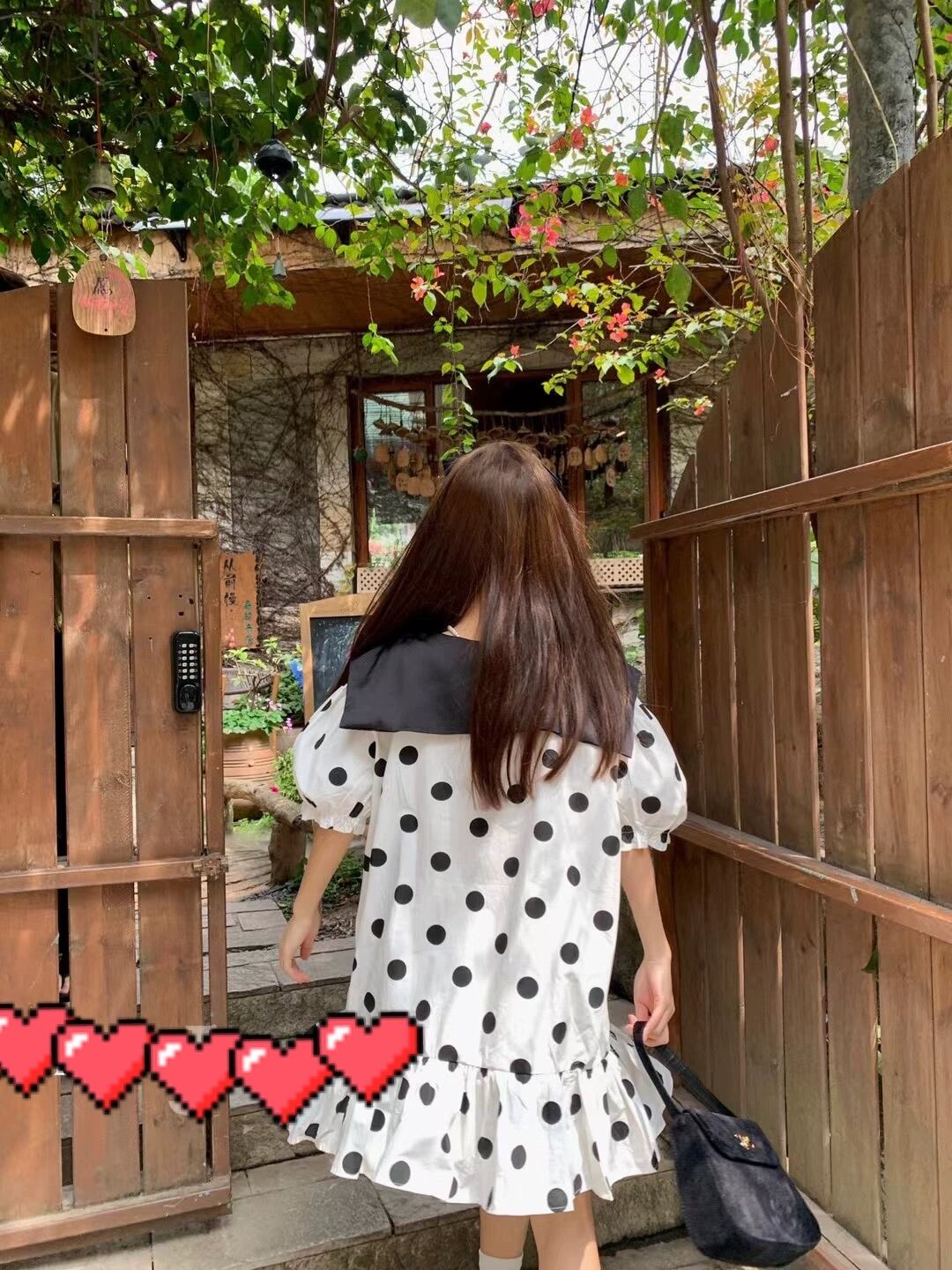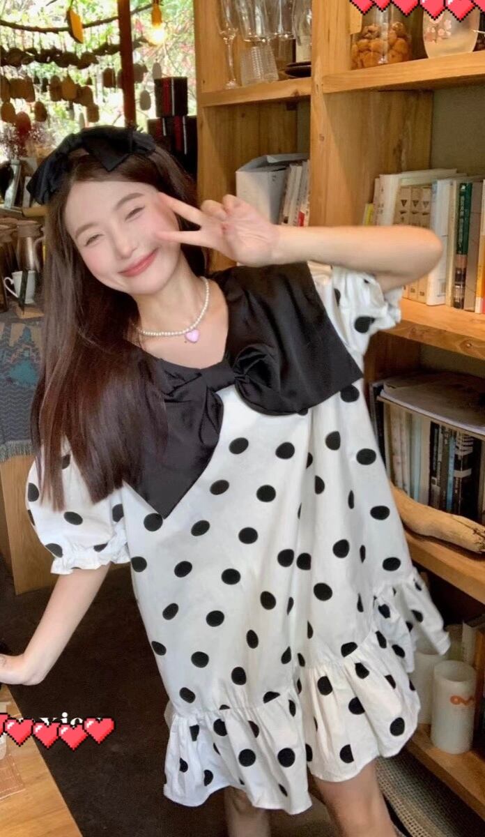 ブラウス リボン マリン 水玉 ドット ガーリー リボン ピンク 水色