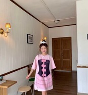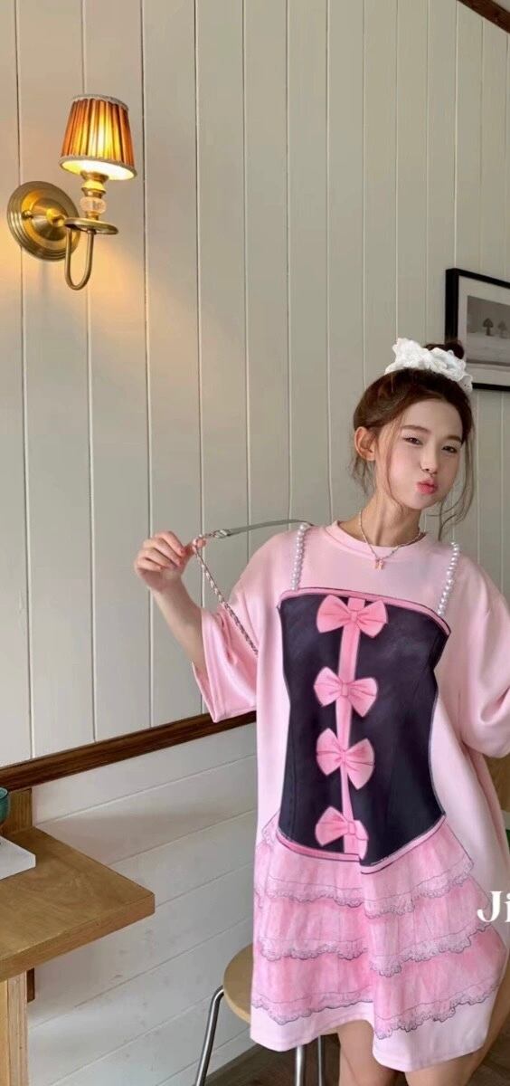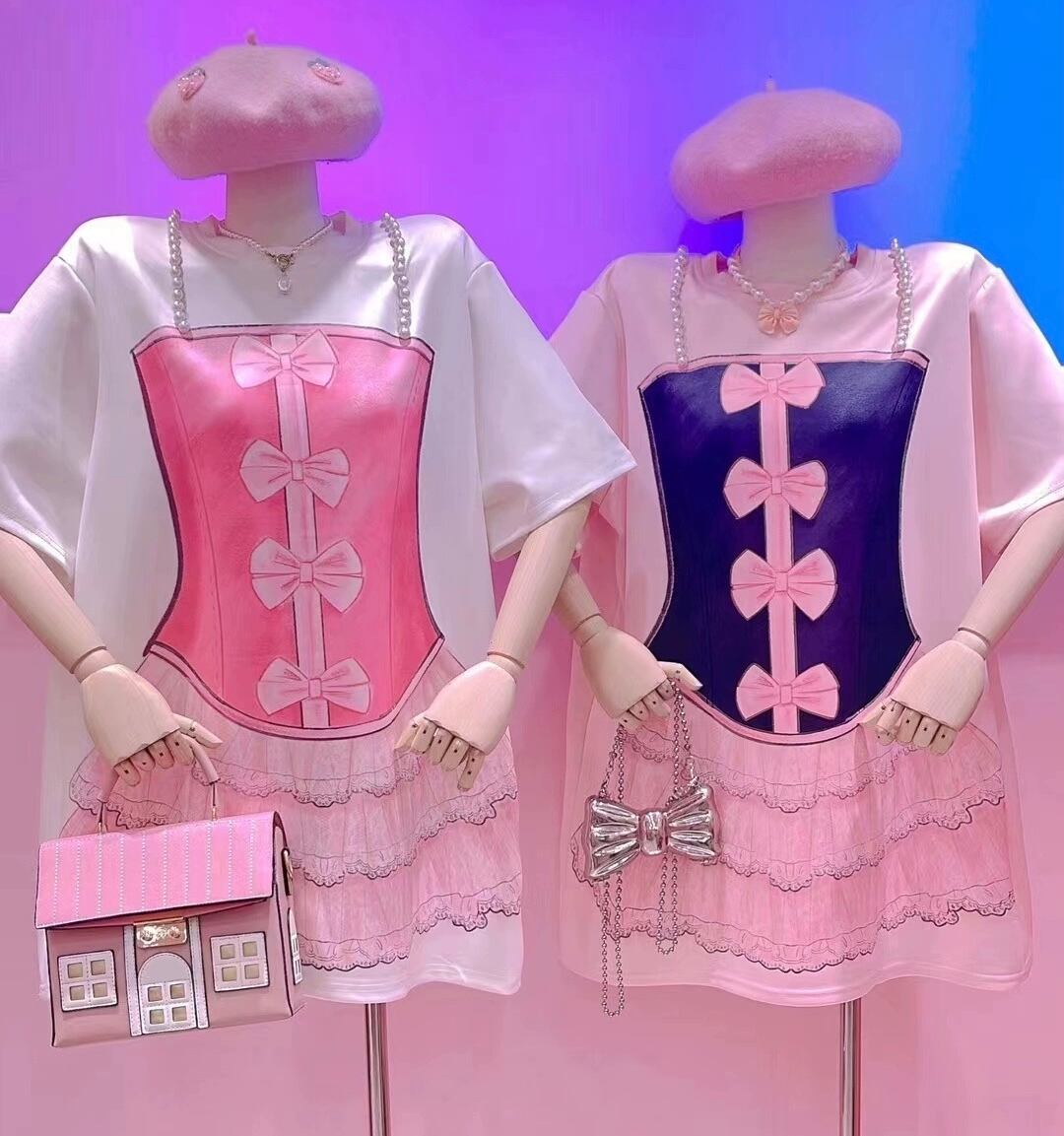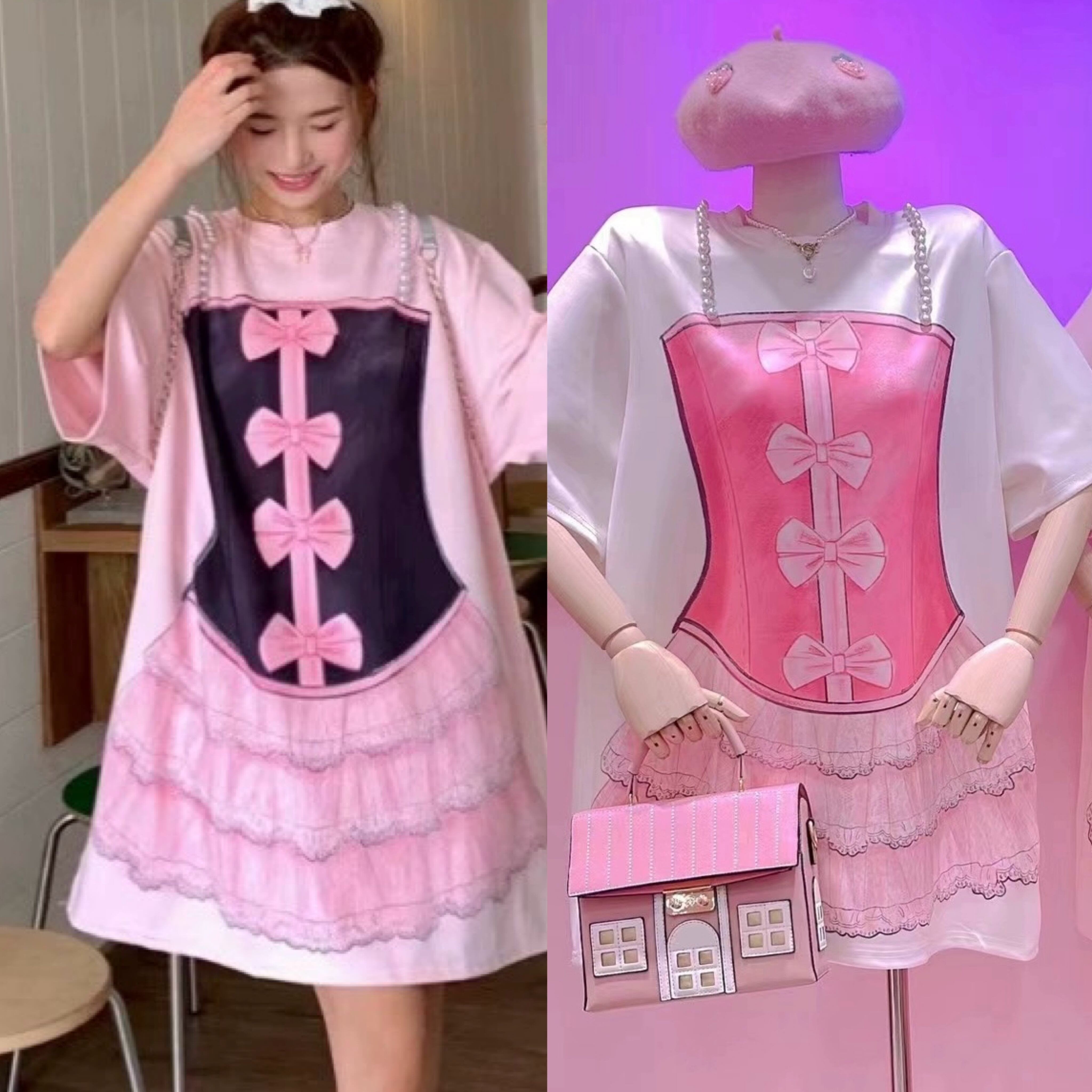 カジュアル 騙し絵 コルセット ガーリー ピンク 原宿 ワンピース