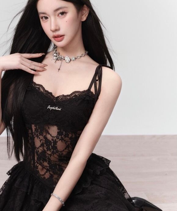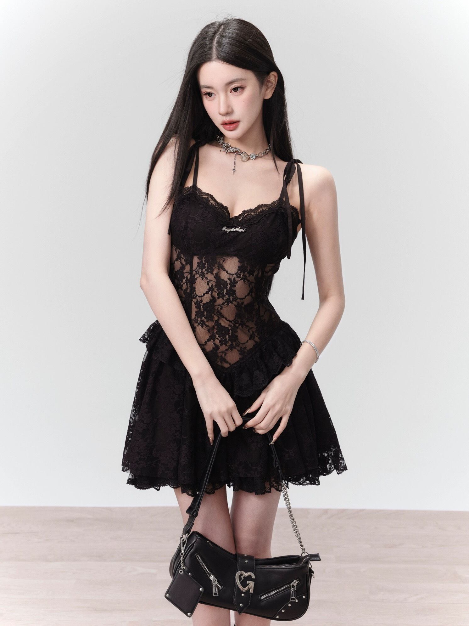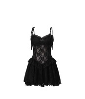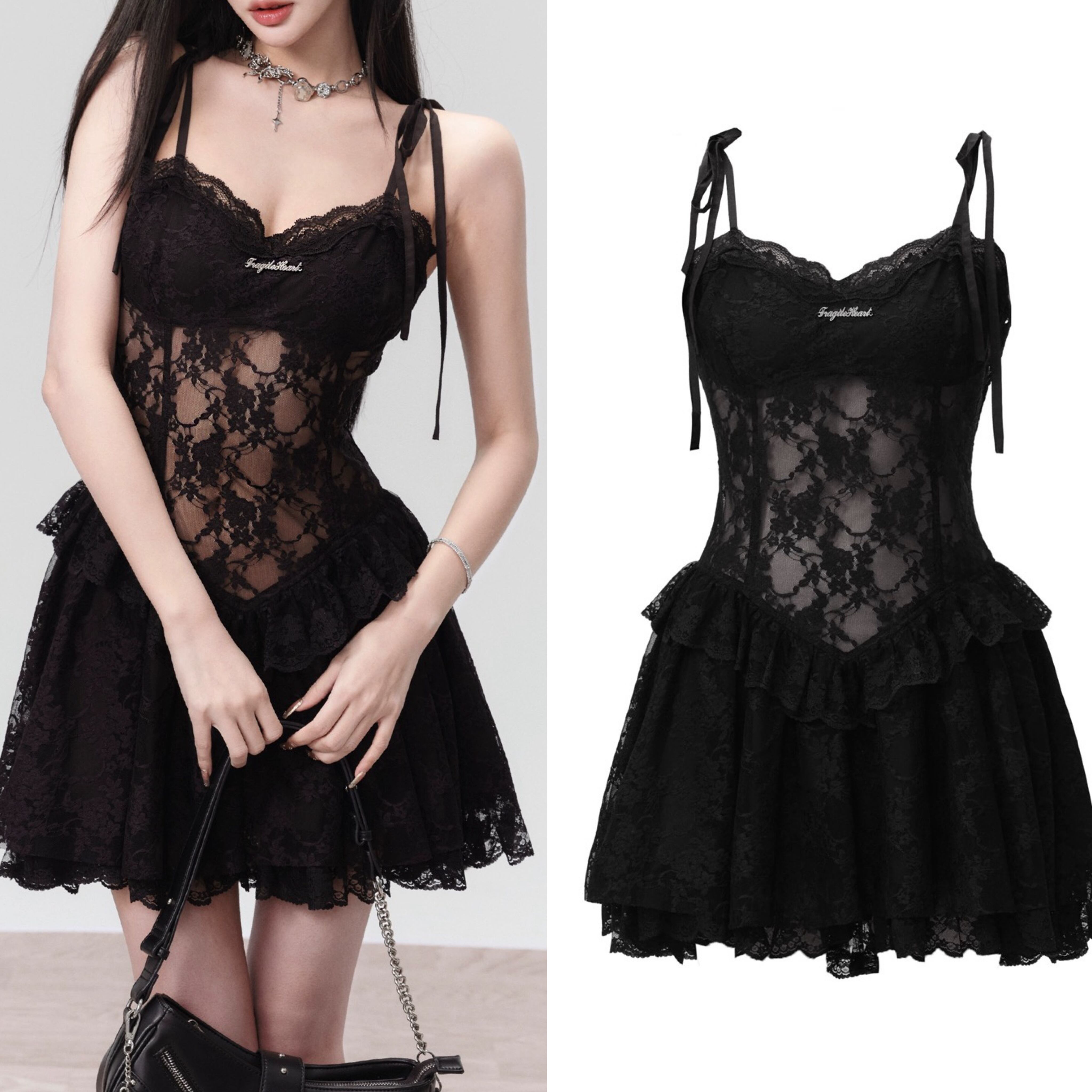 【ワンピース】黒 セクシー リボン レース ガーリー かわいい