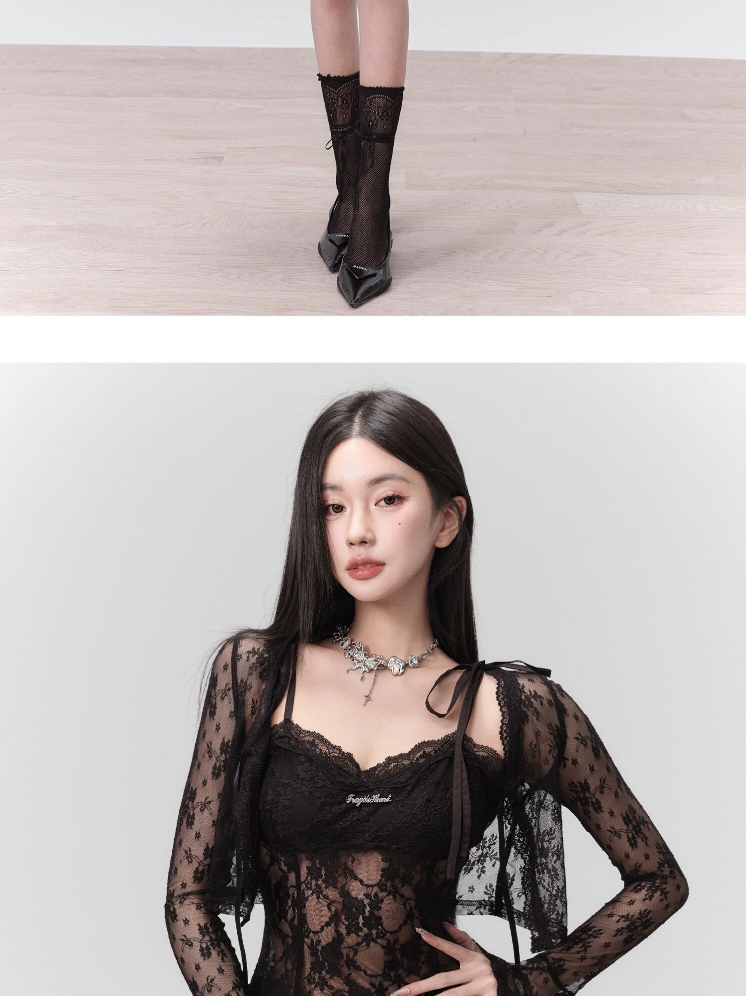 【トップス】黒 レース ブラウス エレガント ブラック リボン セクシー カーディガン