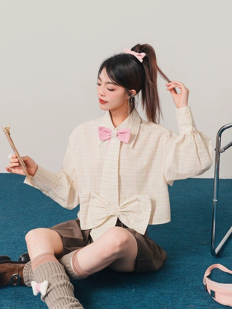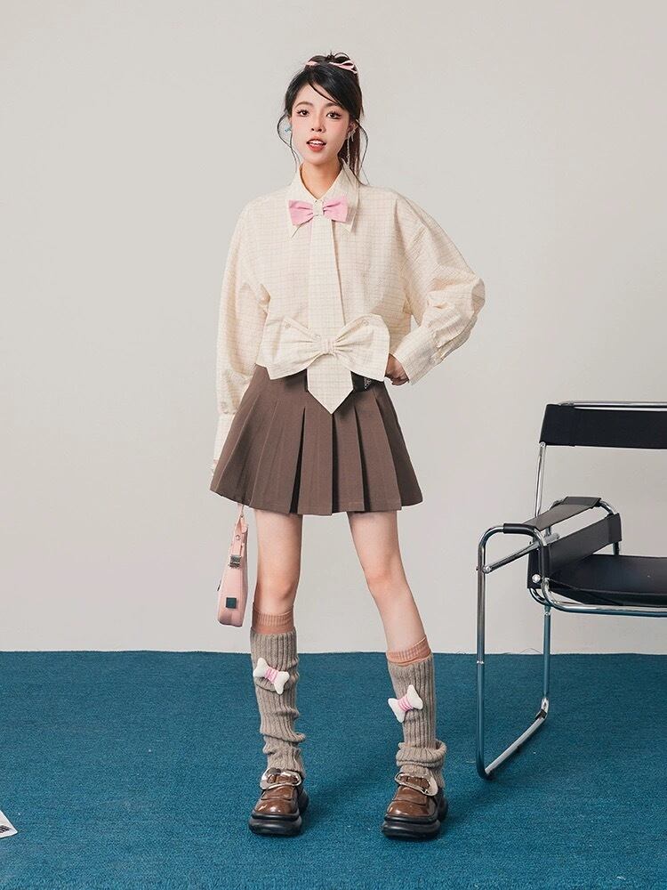 ブラウス ベージュ リボン カジュアル ガーリー トップス