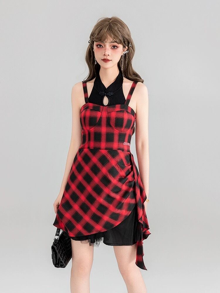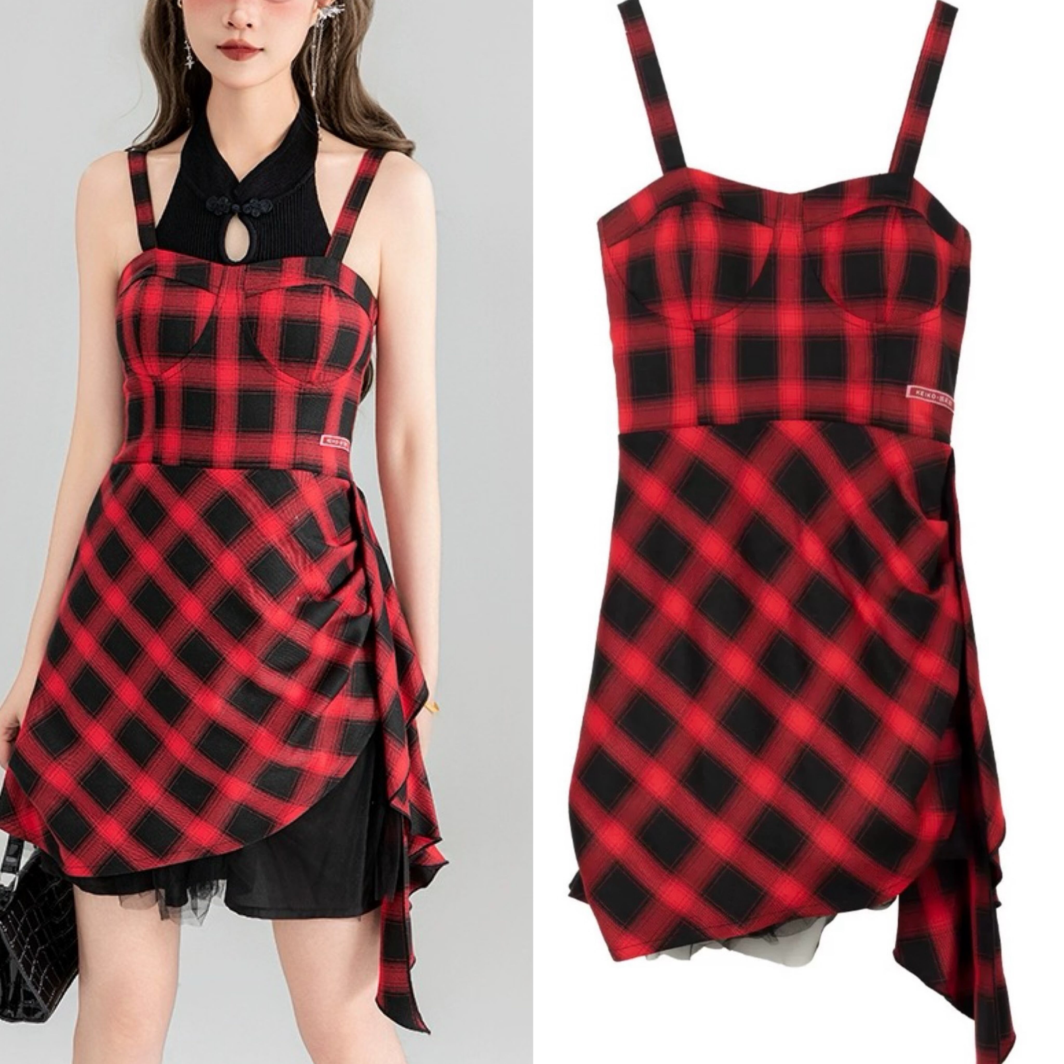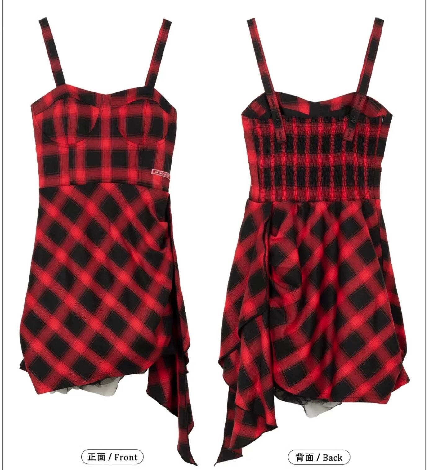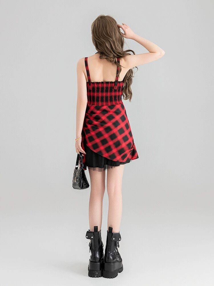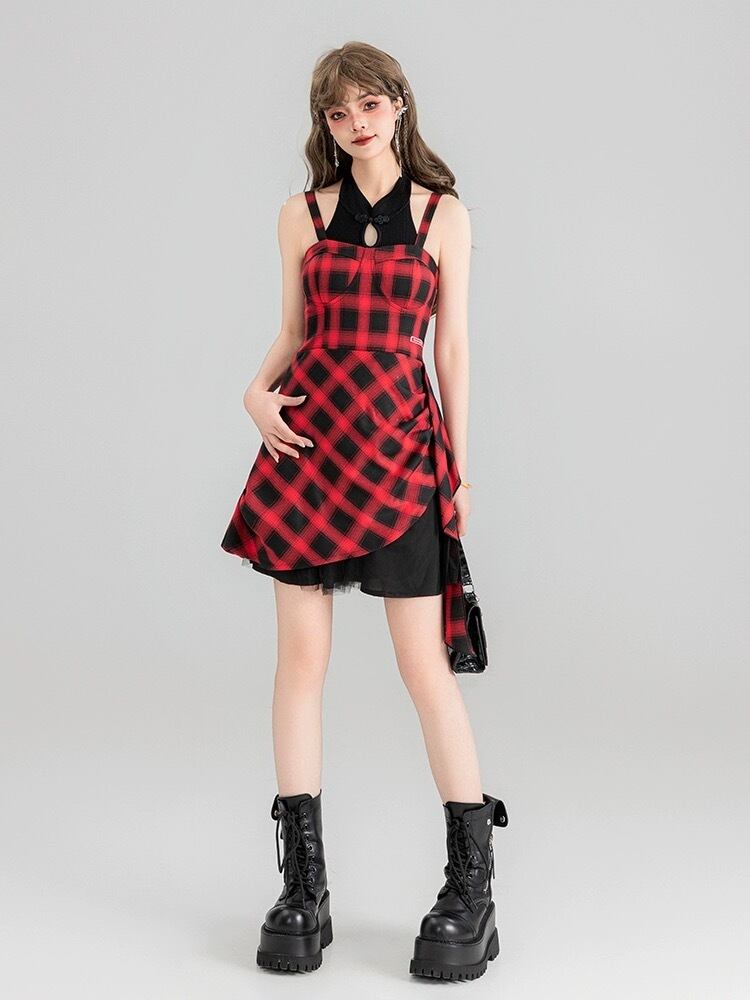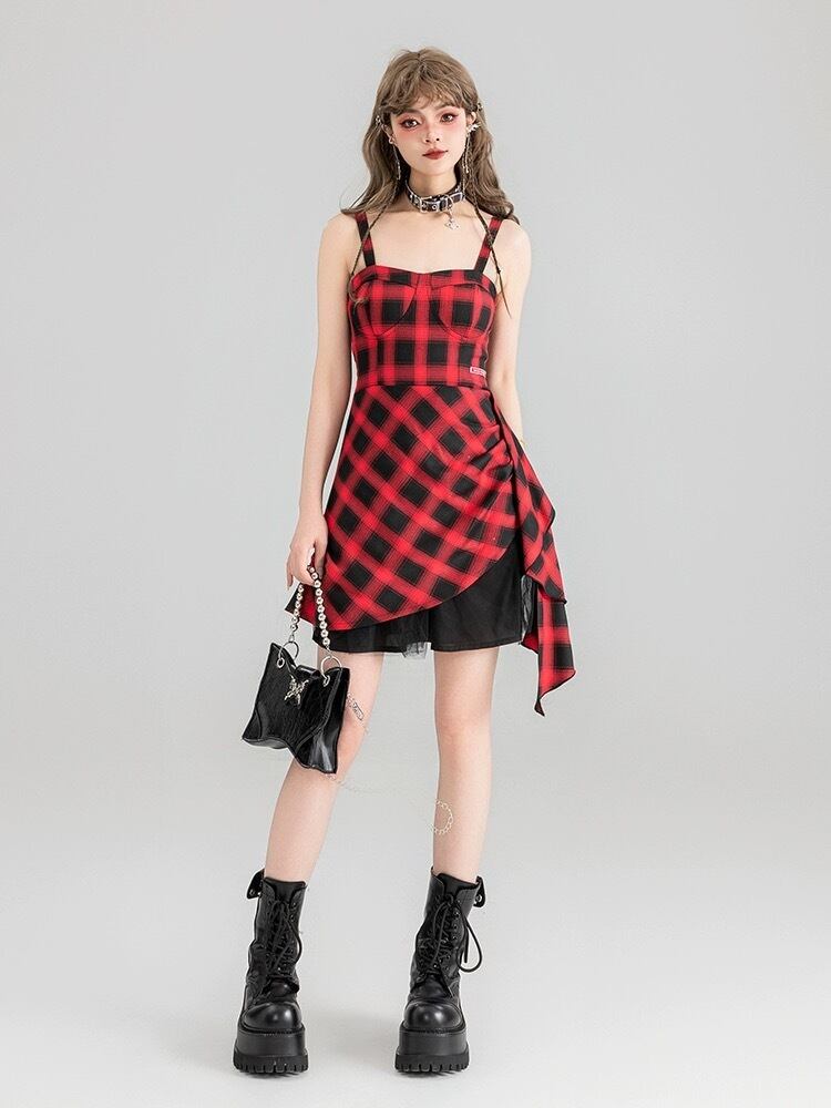 赤 黒 チェック ワンピース XL 原宿 ロック