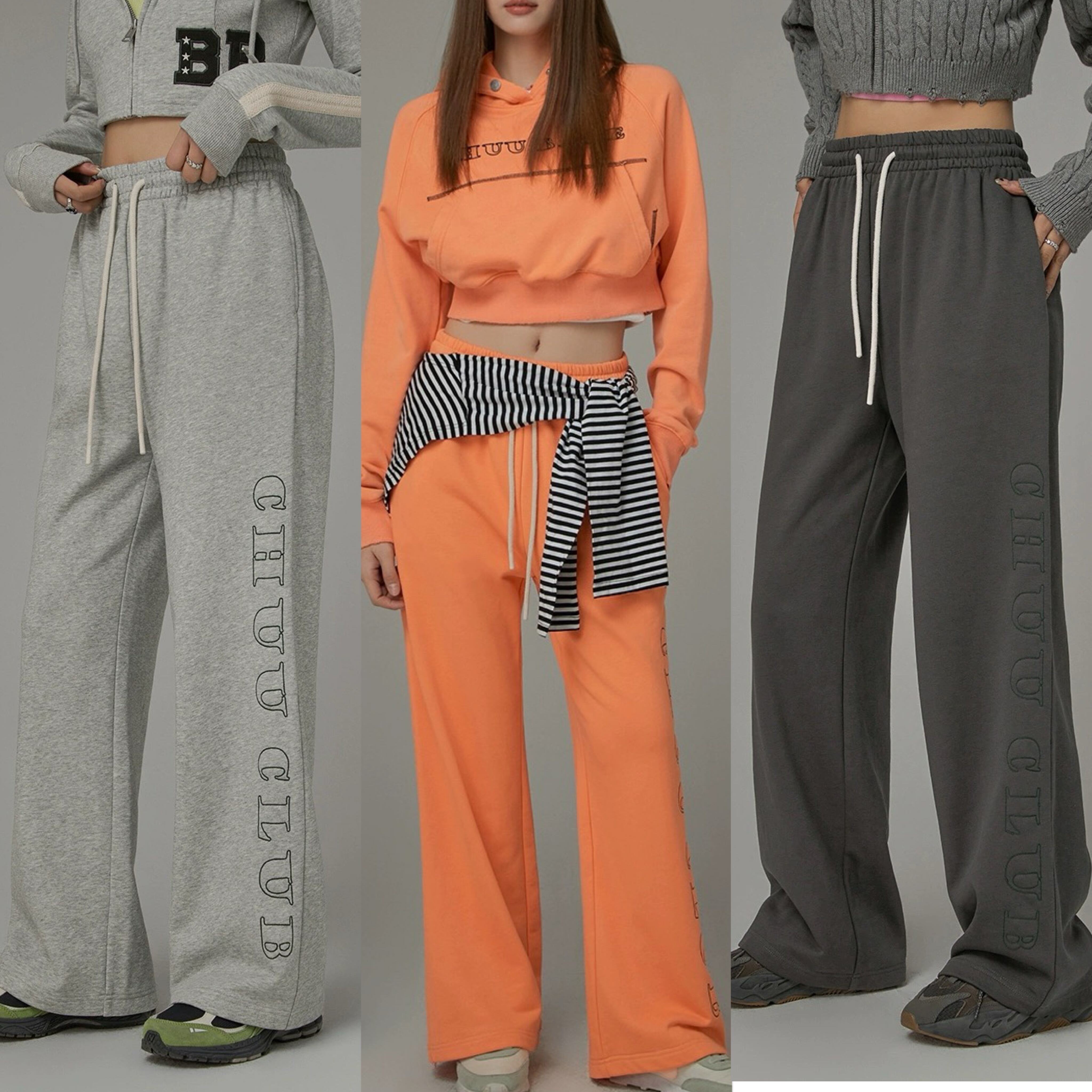 オレンジ ボトムス スウェット カジュアル パンツ