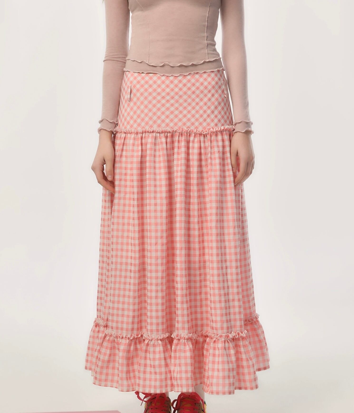 チェック ピンク ボトムス ガーリー かわいい スカート