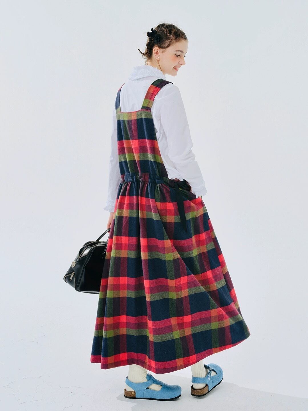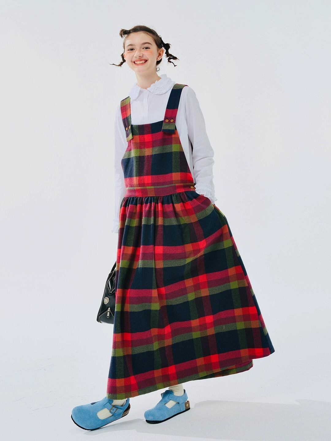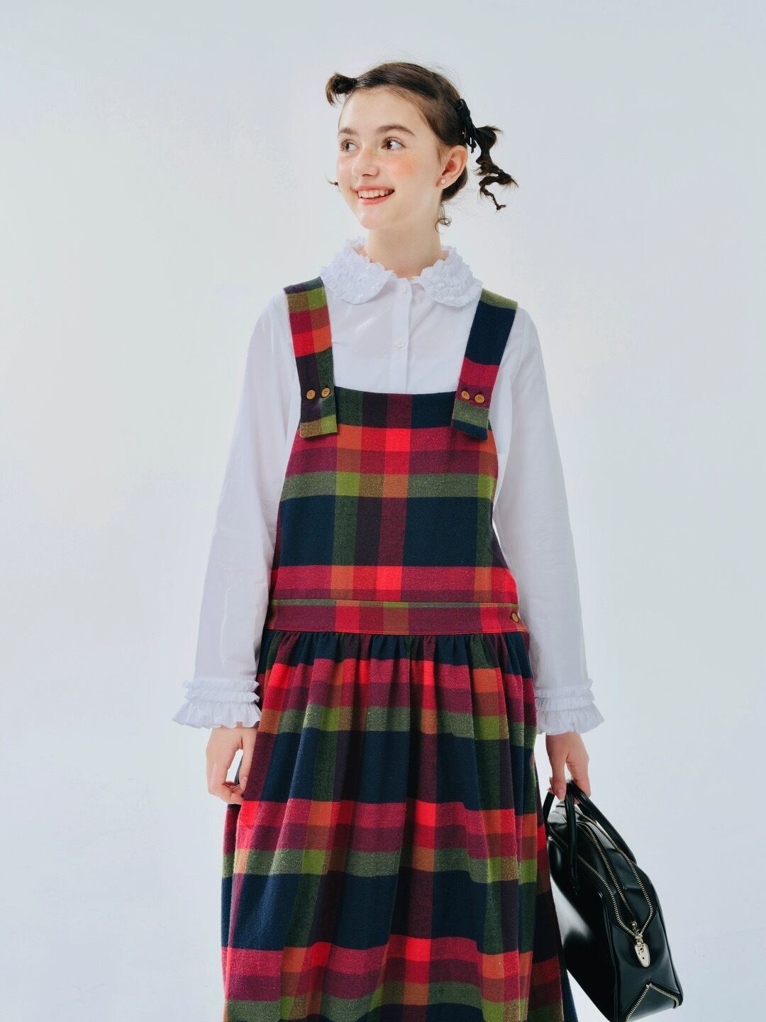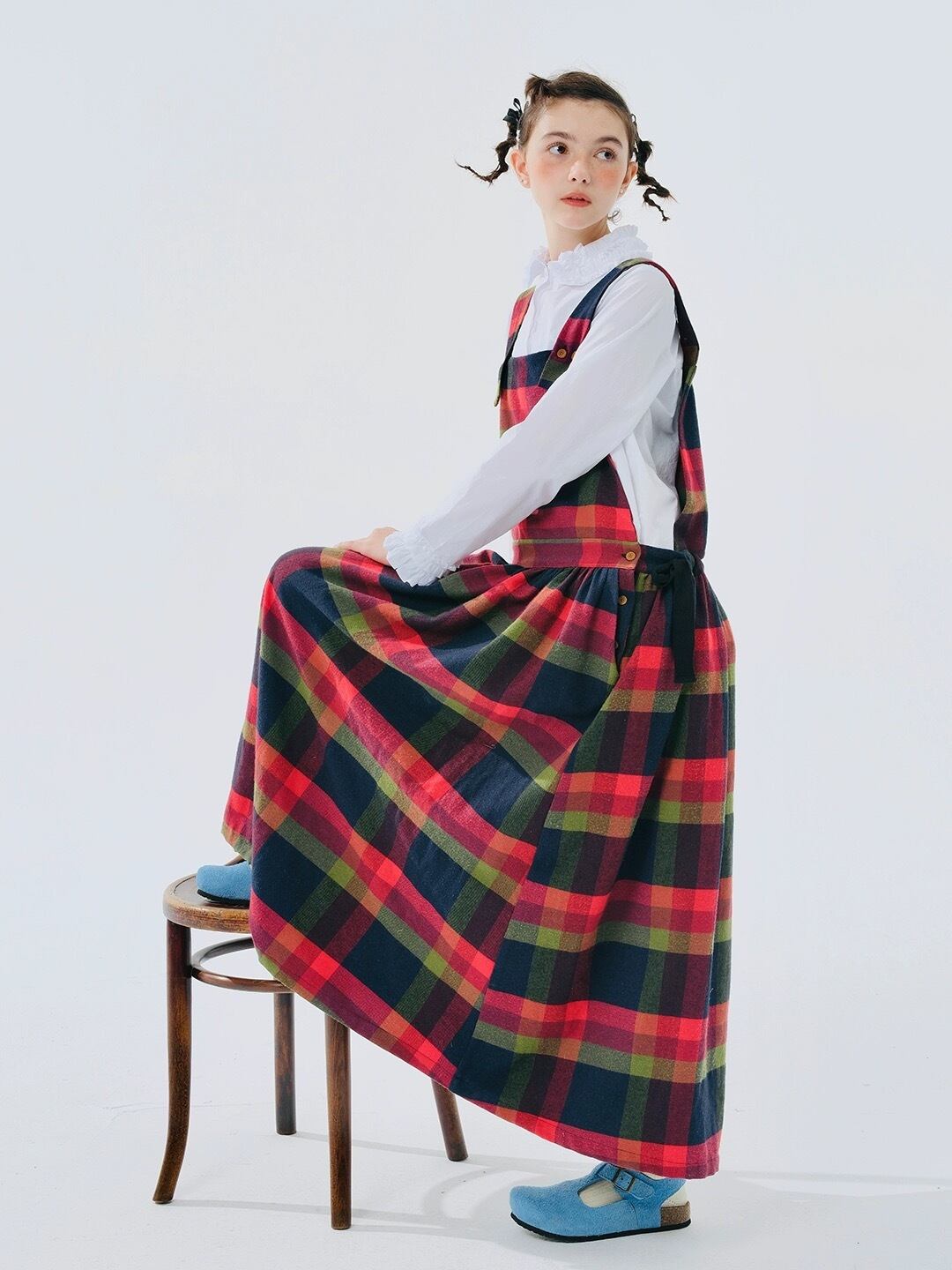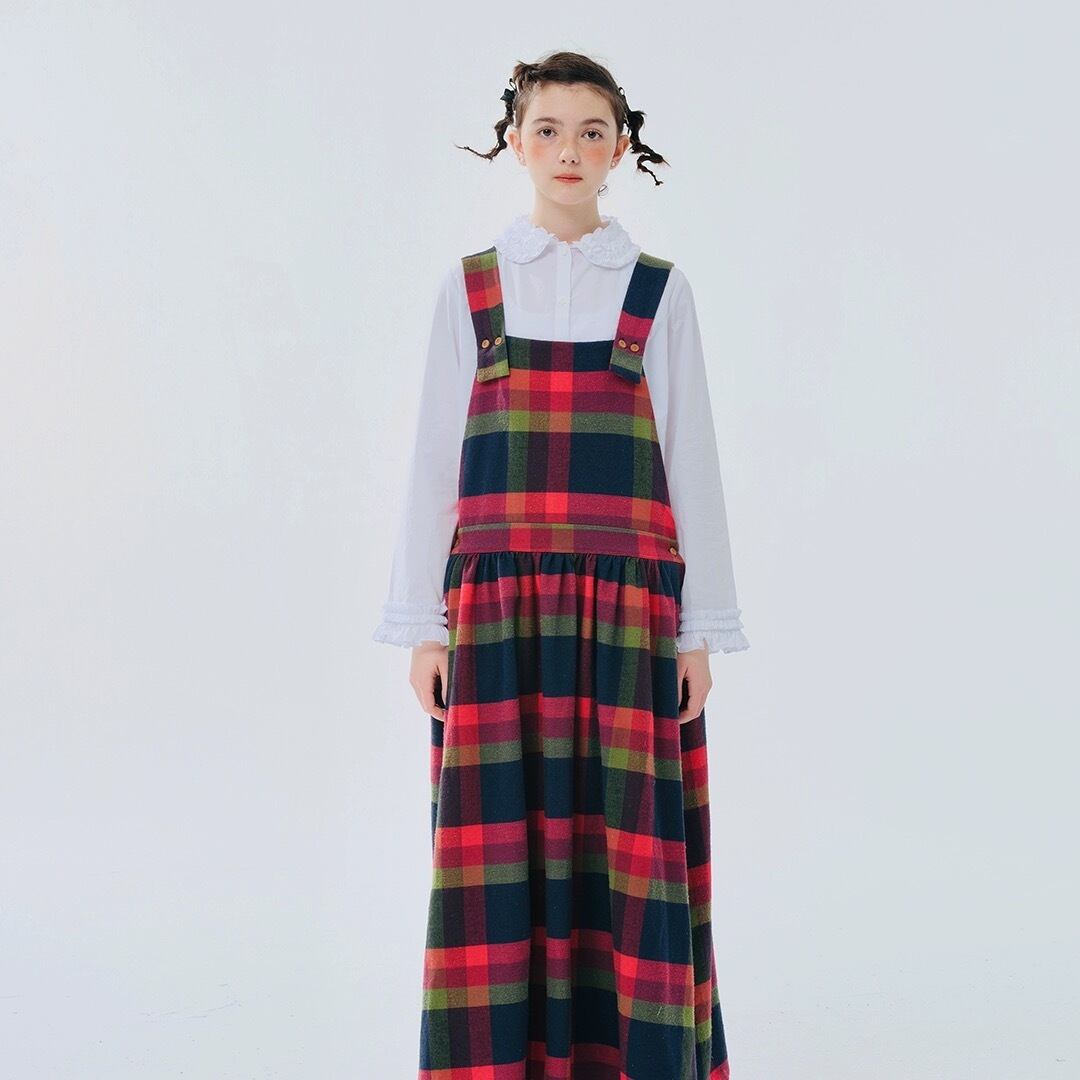 ジャンパースカート ワンピース 赤 チェック ガーリー 可愛い
