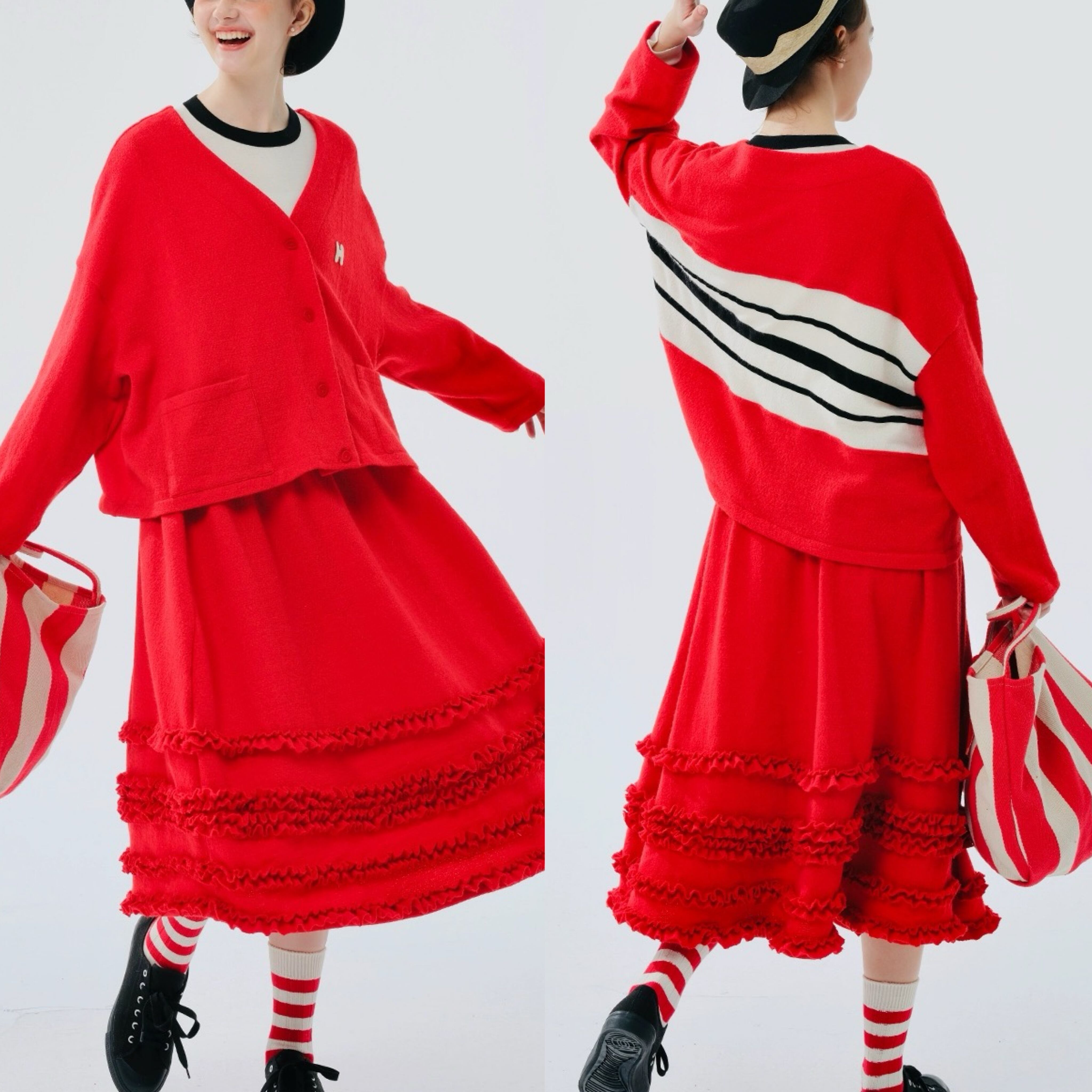 【カーディガン】赤 セーター トップス ジャケット アウター ガーリー ゆったり