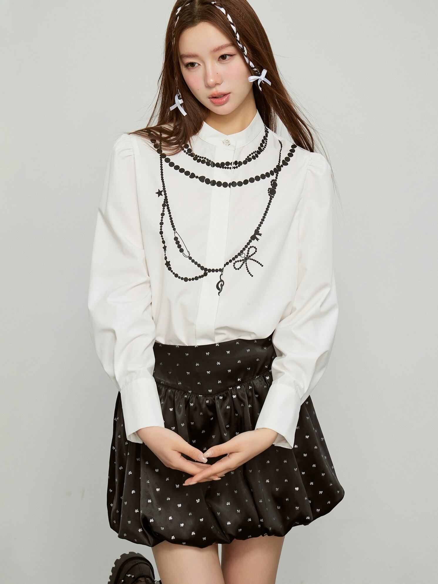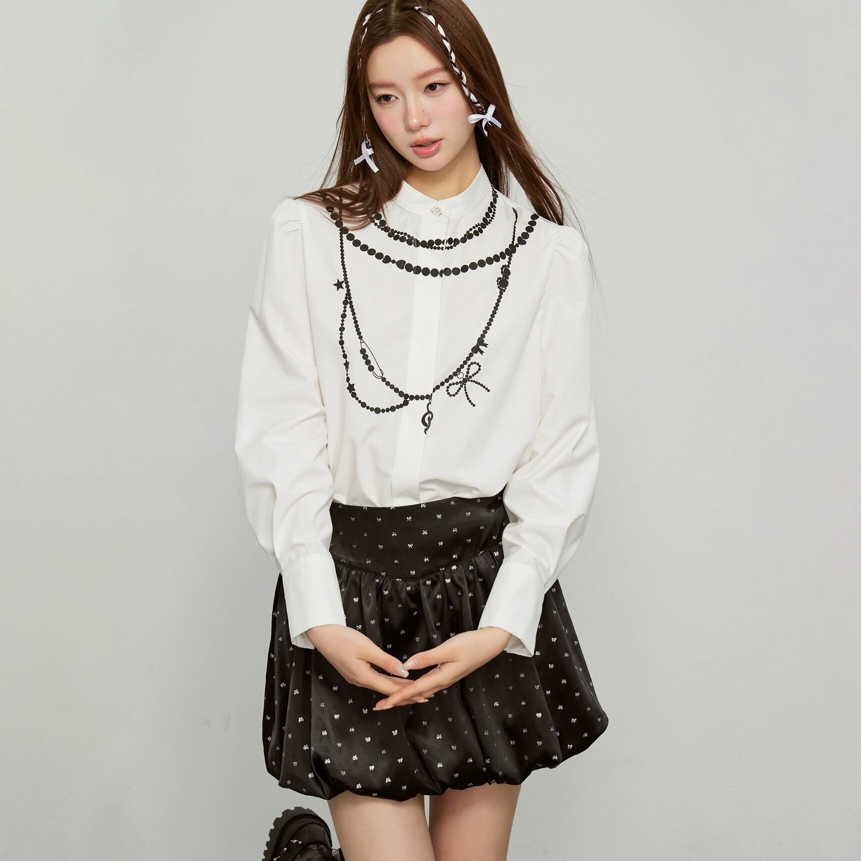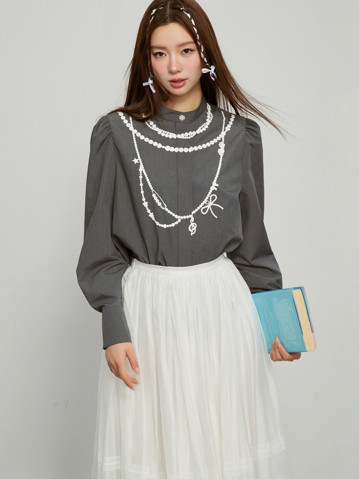 グレー 黒 白 リボン ネックレス ブラウス シャツ トップス