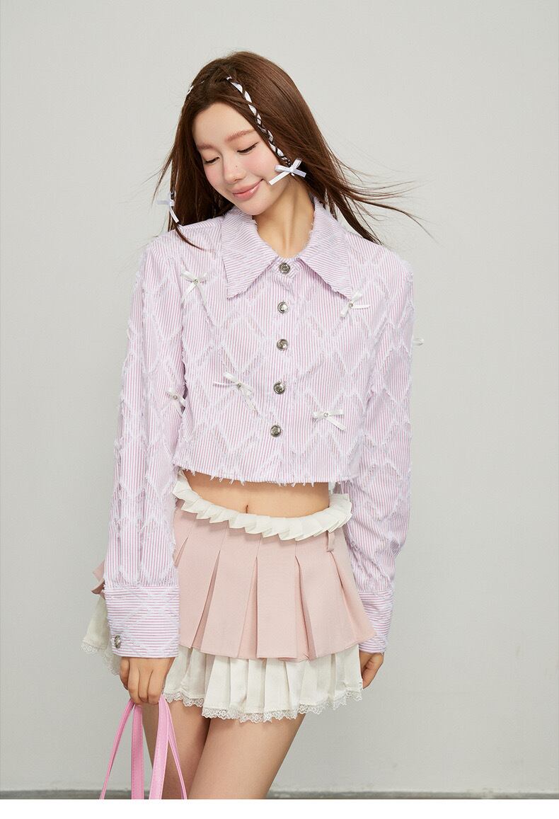 ピンク ブラウス トップス リボン カジュアル シャツ 水色