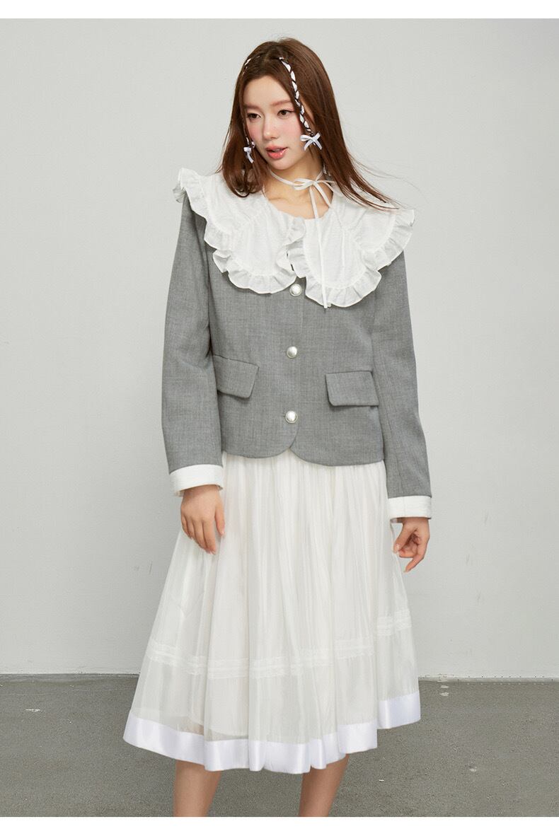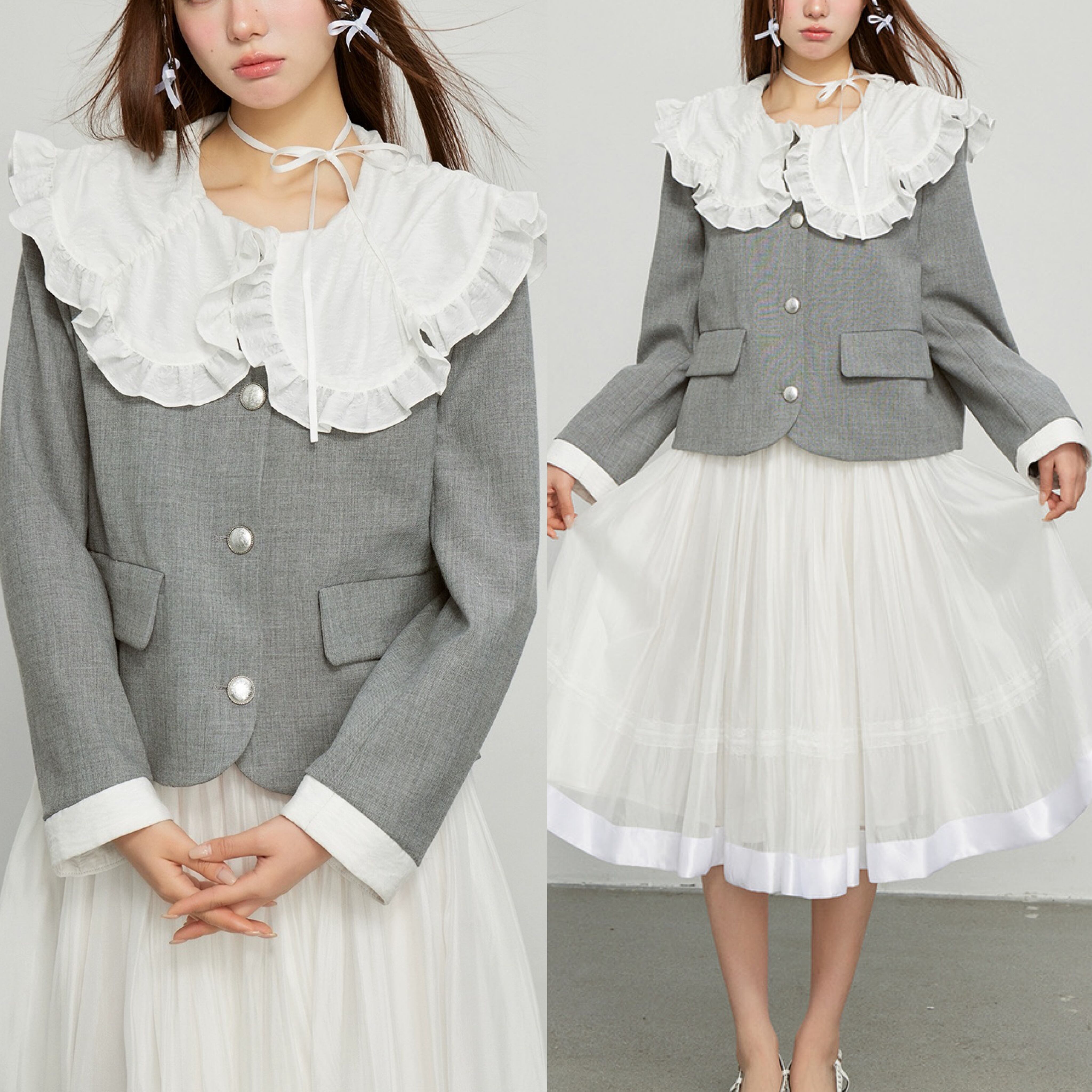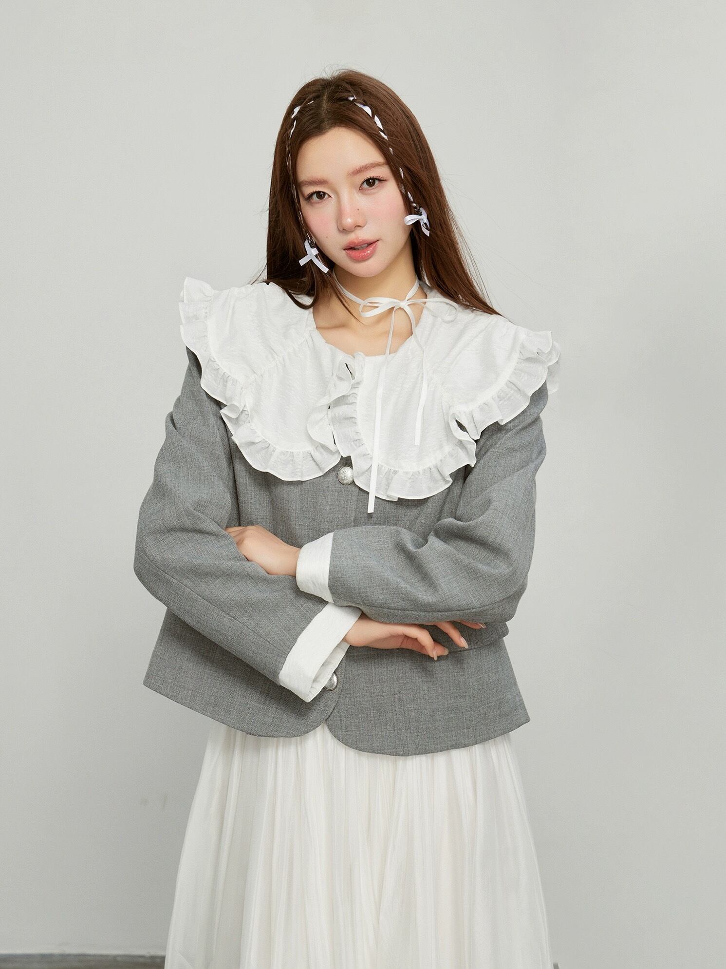 ジャケット アウター 丸襟 ガーリー カーディガン ブラウス 可愛い
