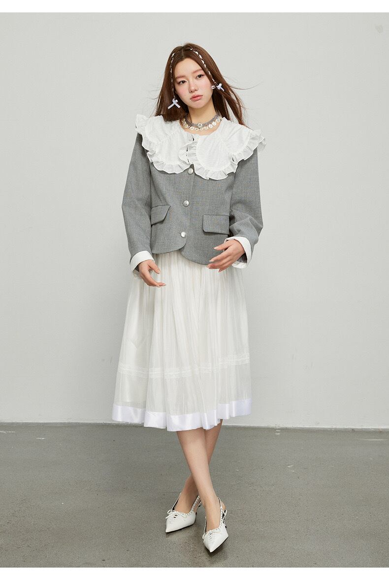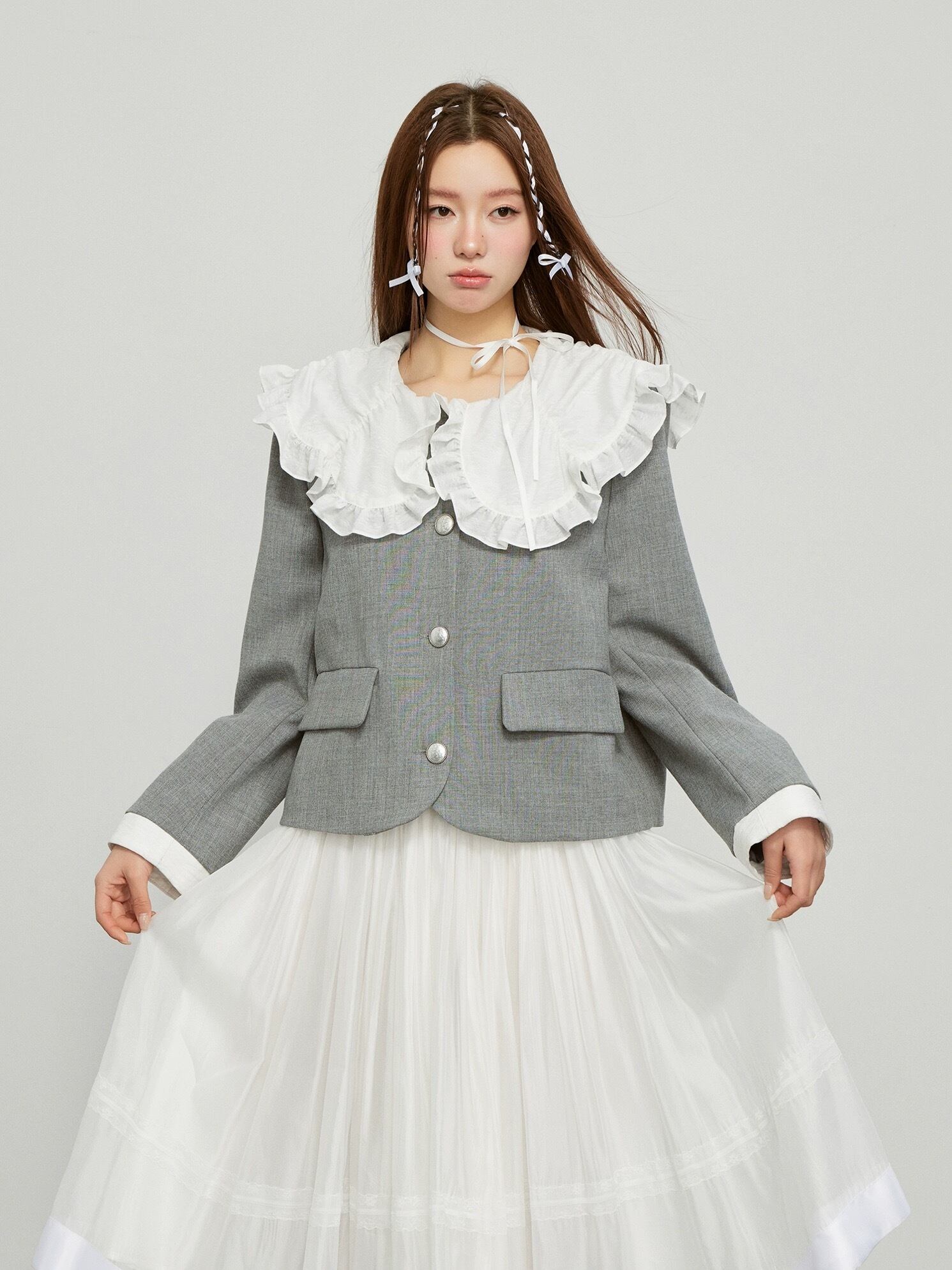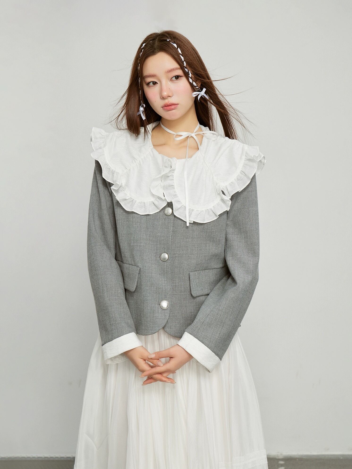ジャケット アウター 丸襟 ガーリー カーディガン ブラウス 可愛い