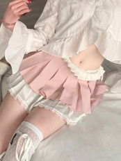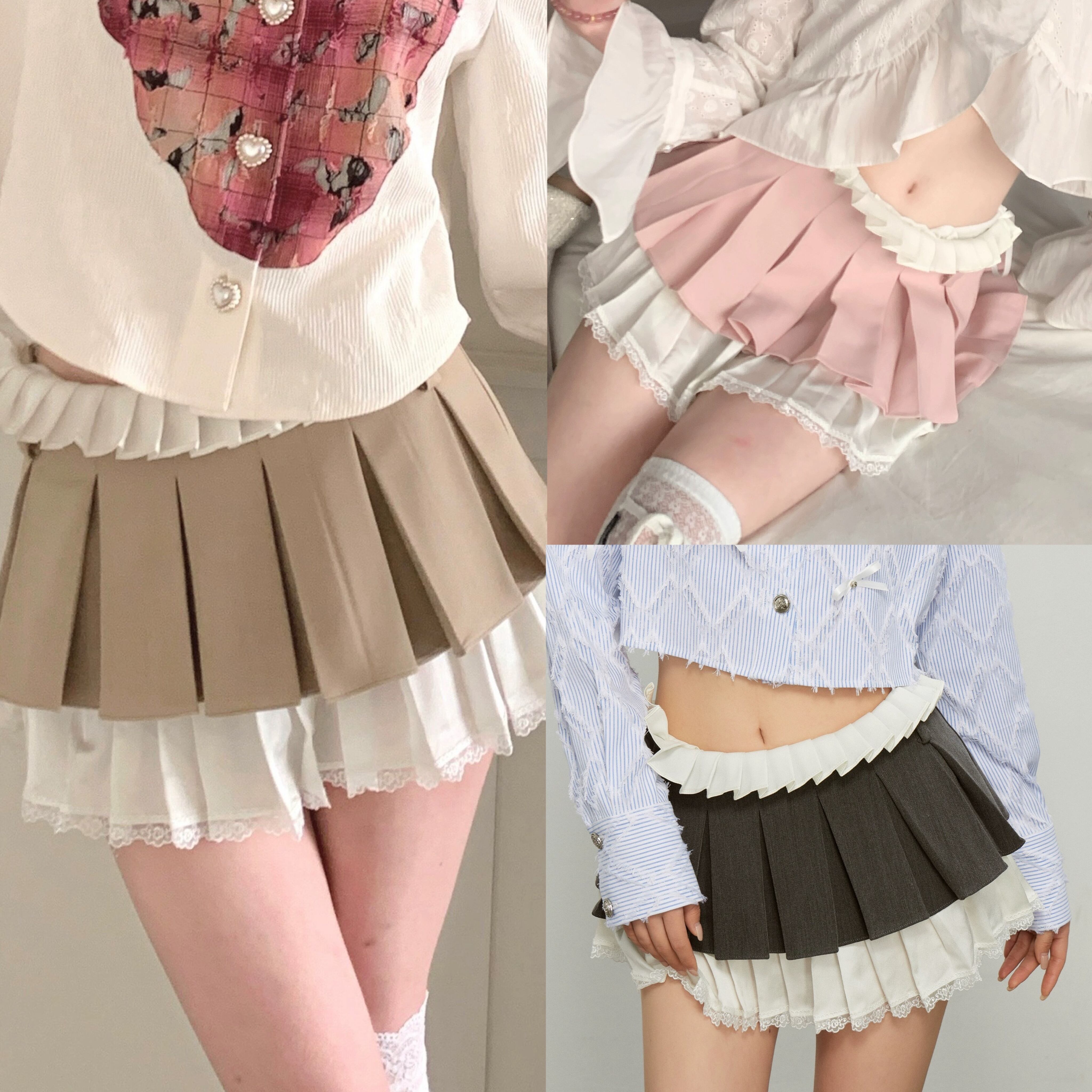 ミニスカート プリーツ ピンク ベージュ スクール 制服 グレー 黒 ガーリー 原宿 姫 ボトムする
