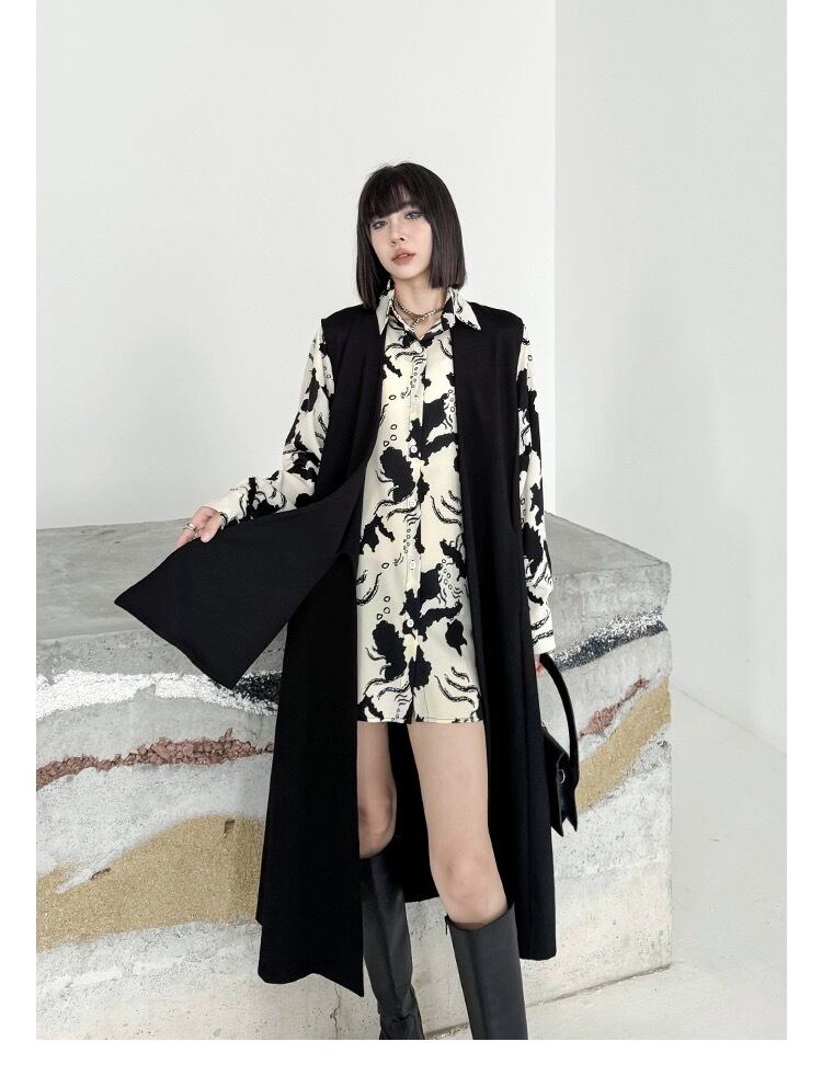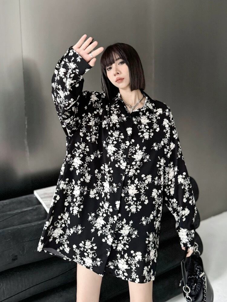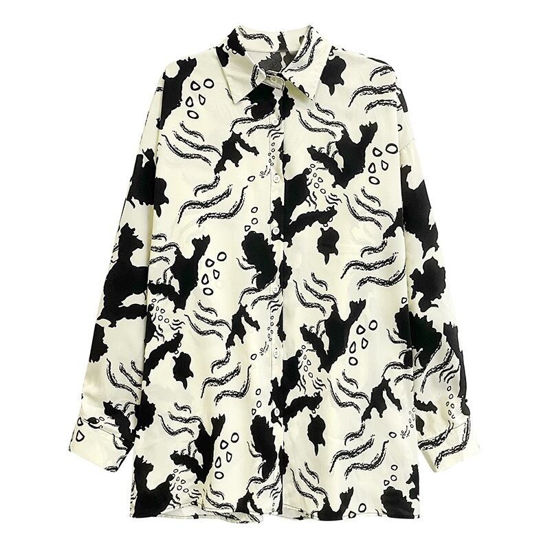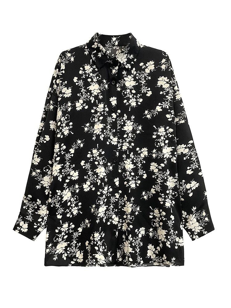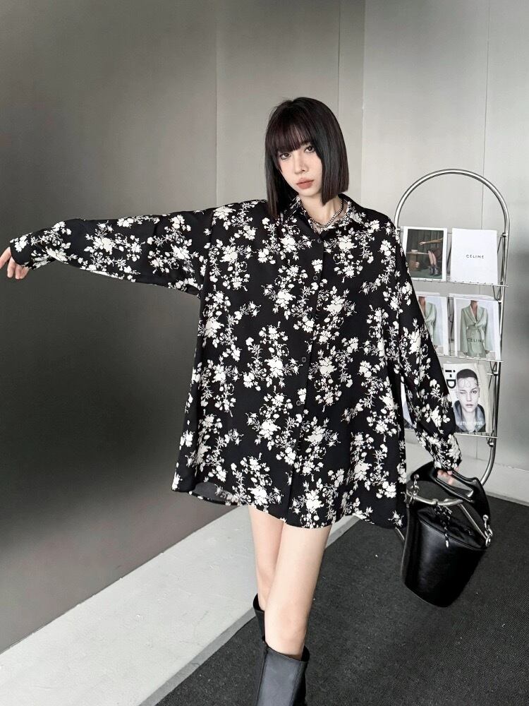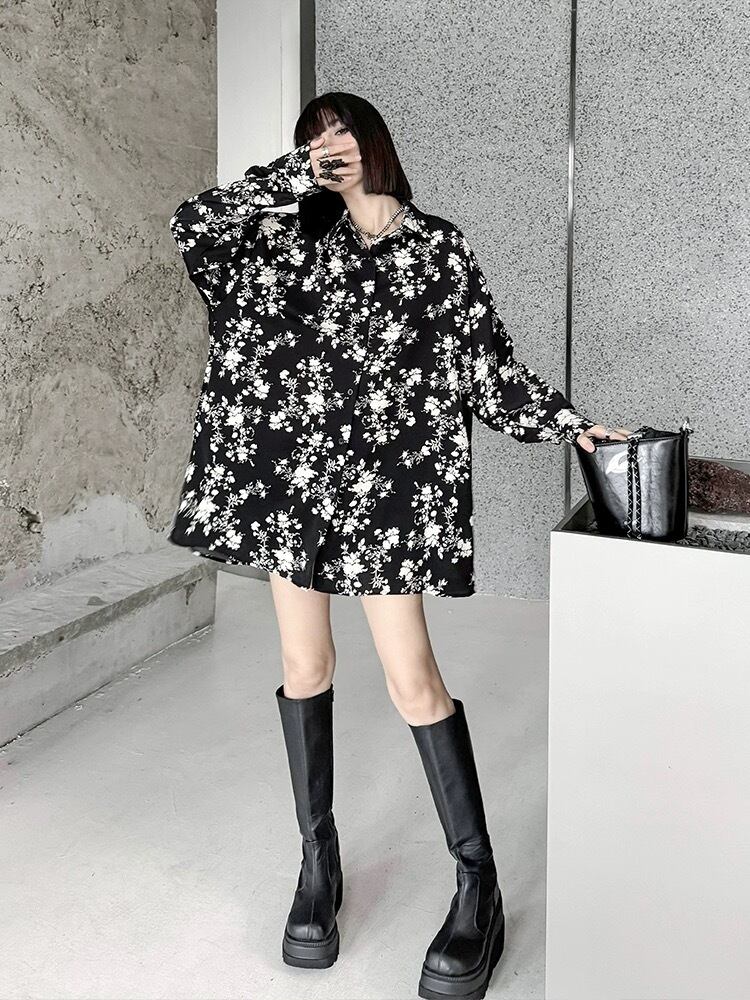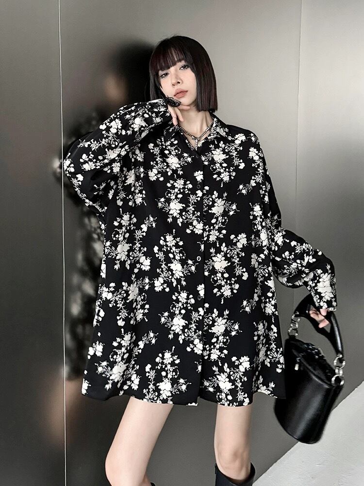 白 黒 ゆったり シャツ ワンピース ブラウス 花柄