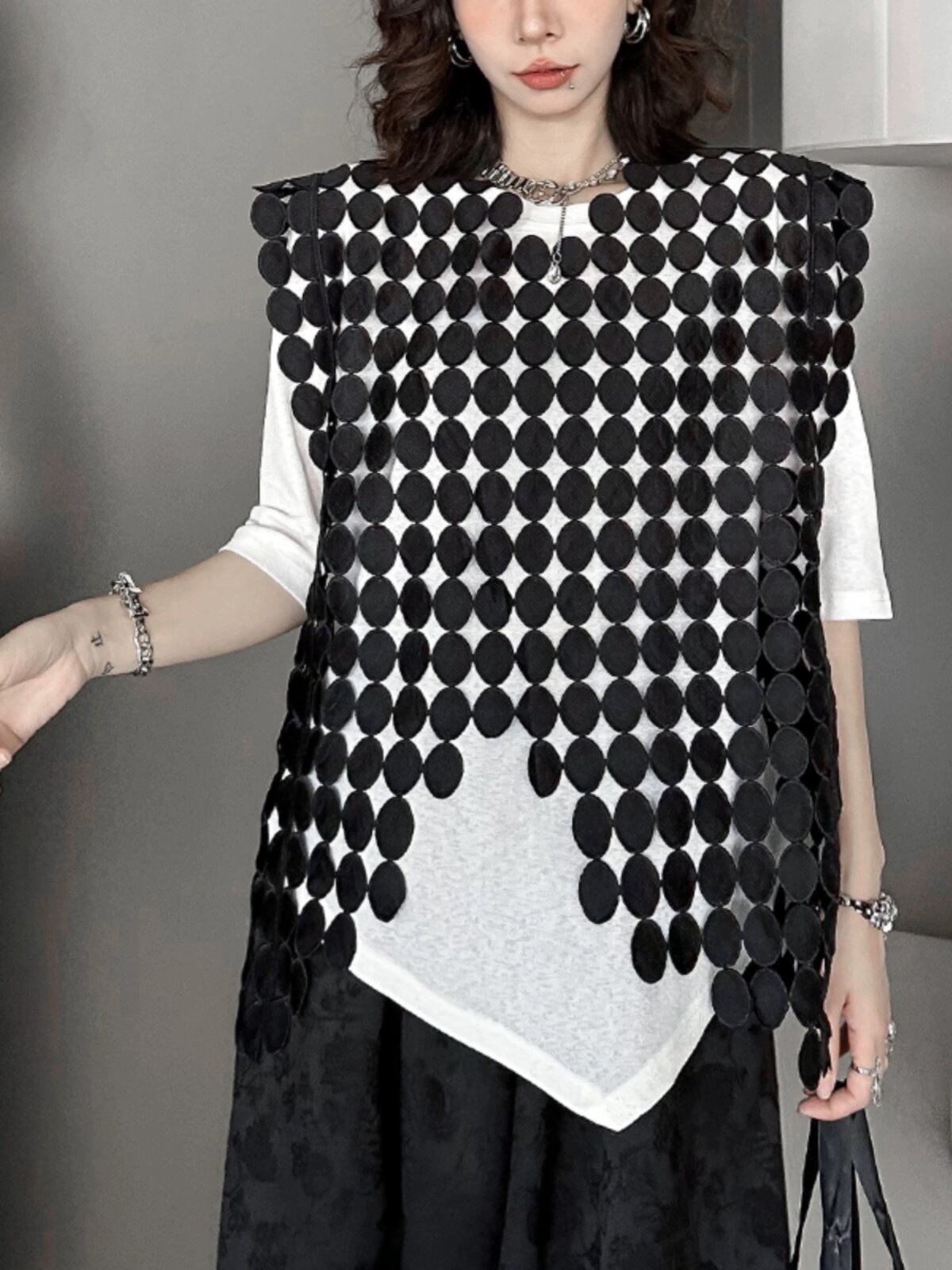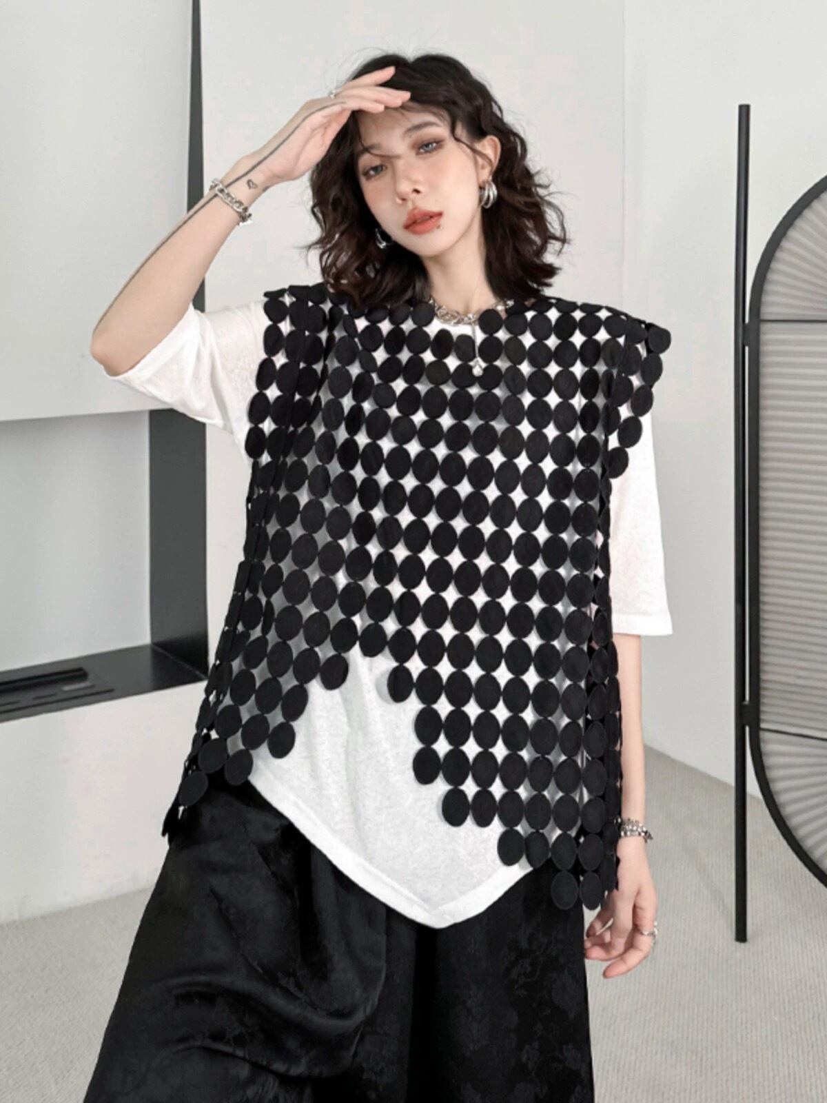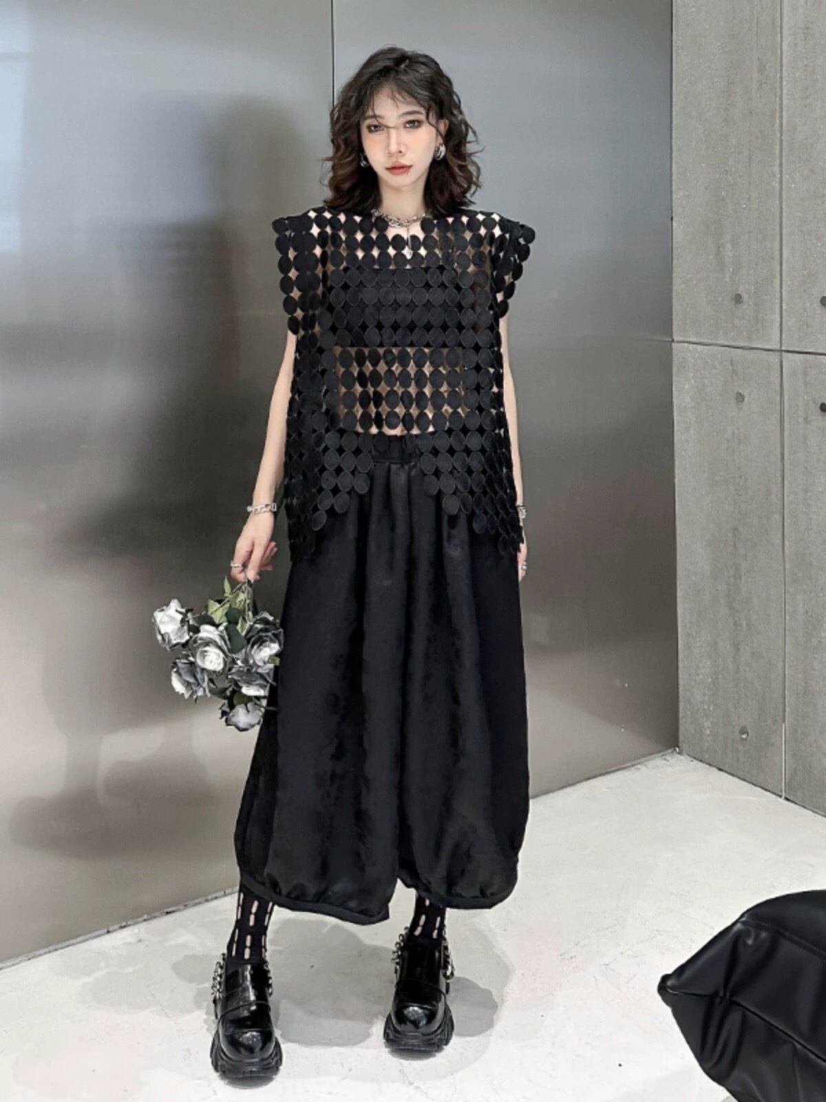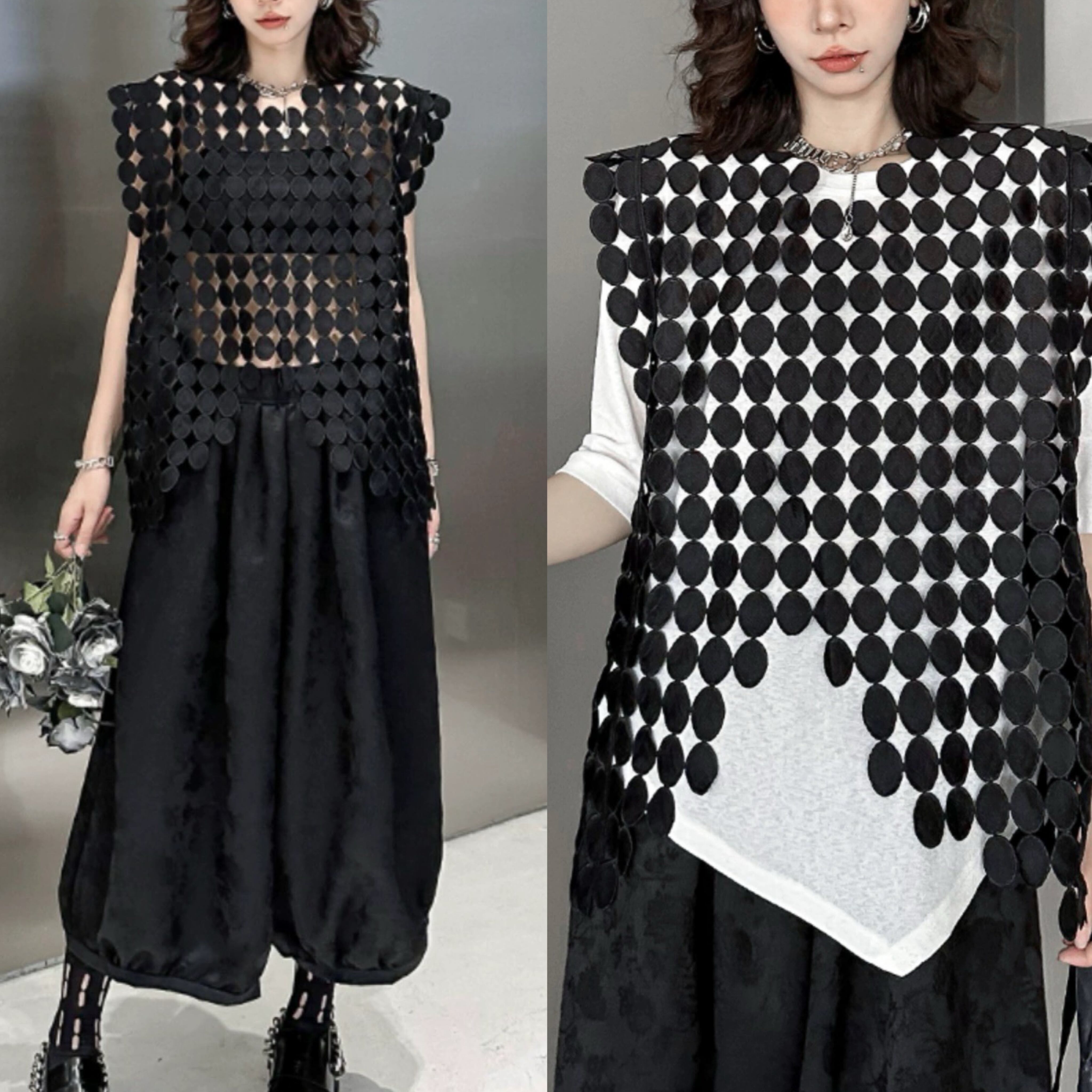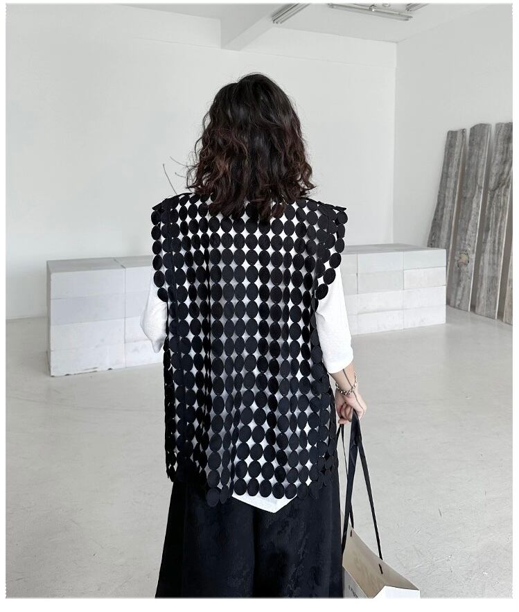 ベスト カーディガン あみあみ メッシュ ブラウス トップス 黒 ブラック