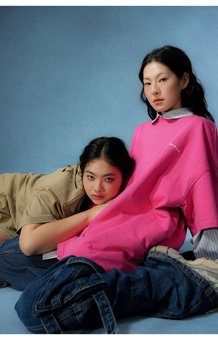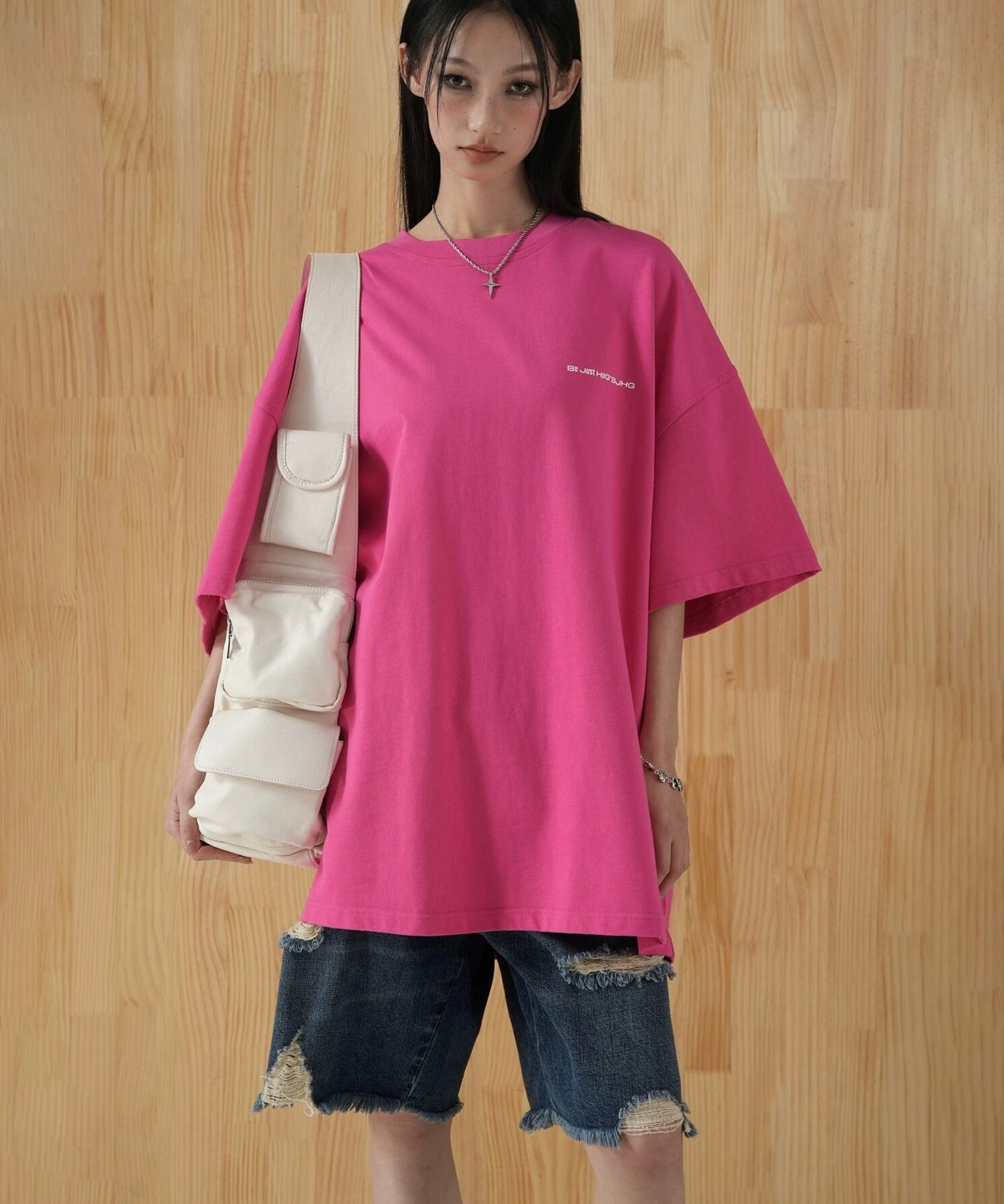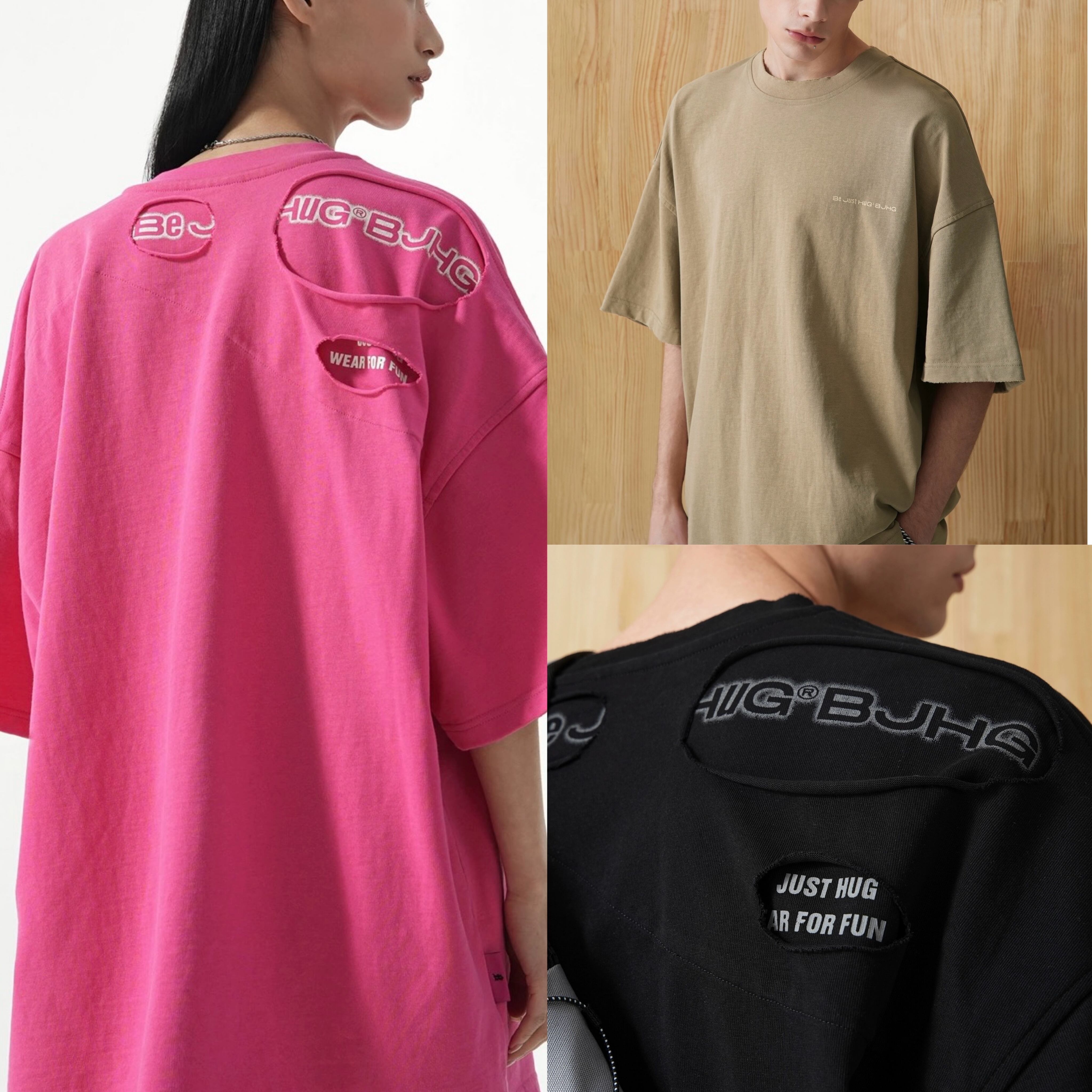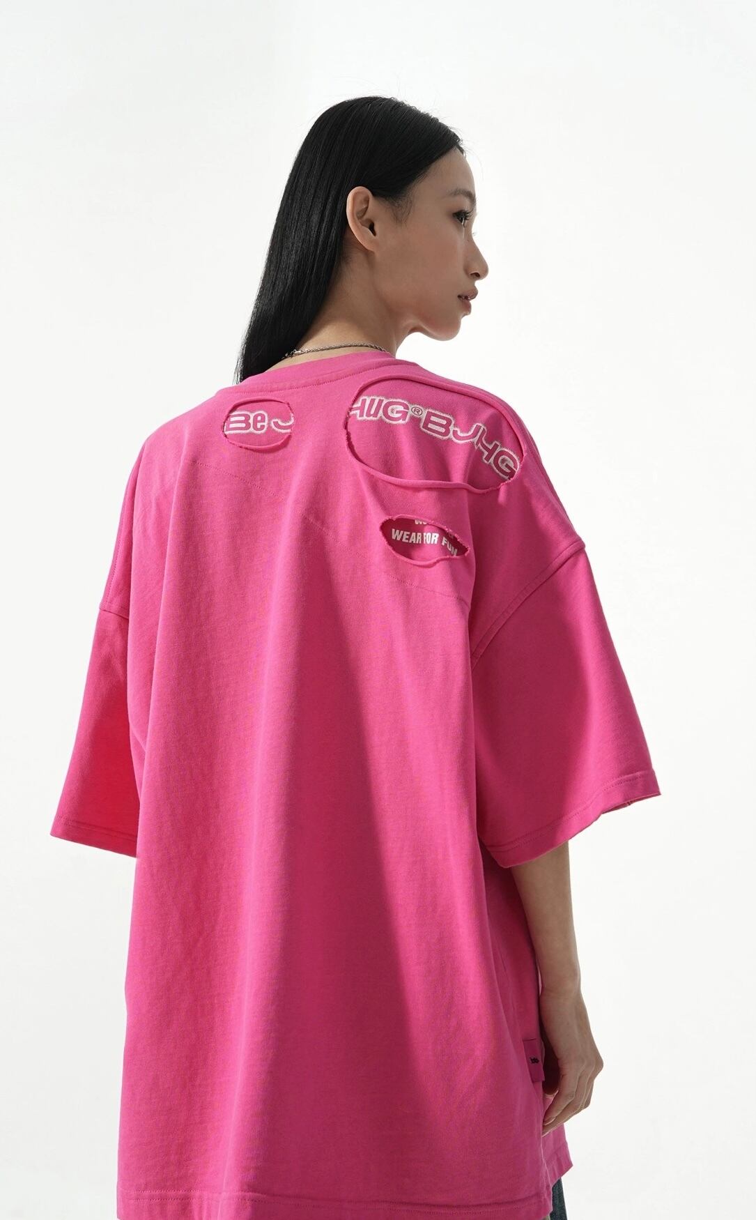 【ユニセックス❣️】オーバーサイズ ブラウス ピンク 黒 ベージュ カーキ ダメージ XL カジュアル Tシャツ