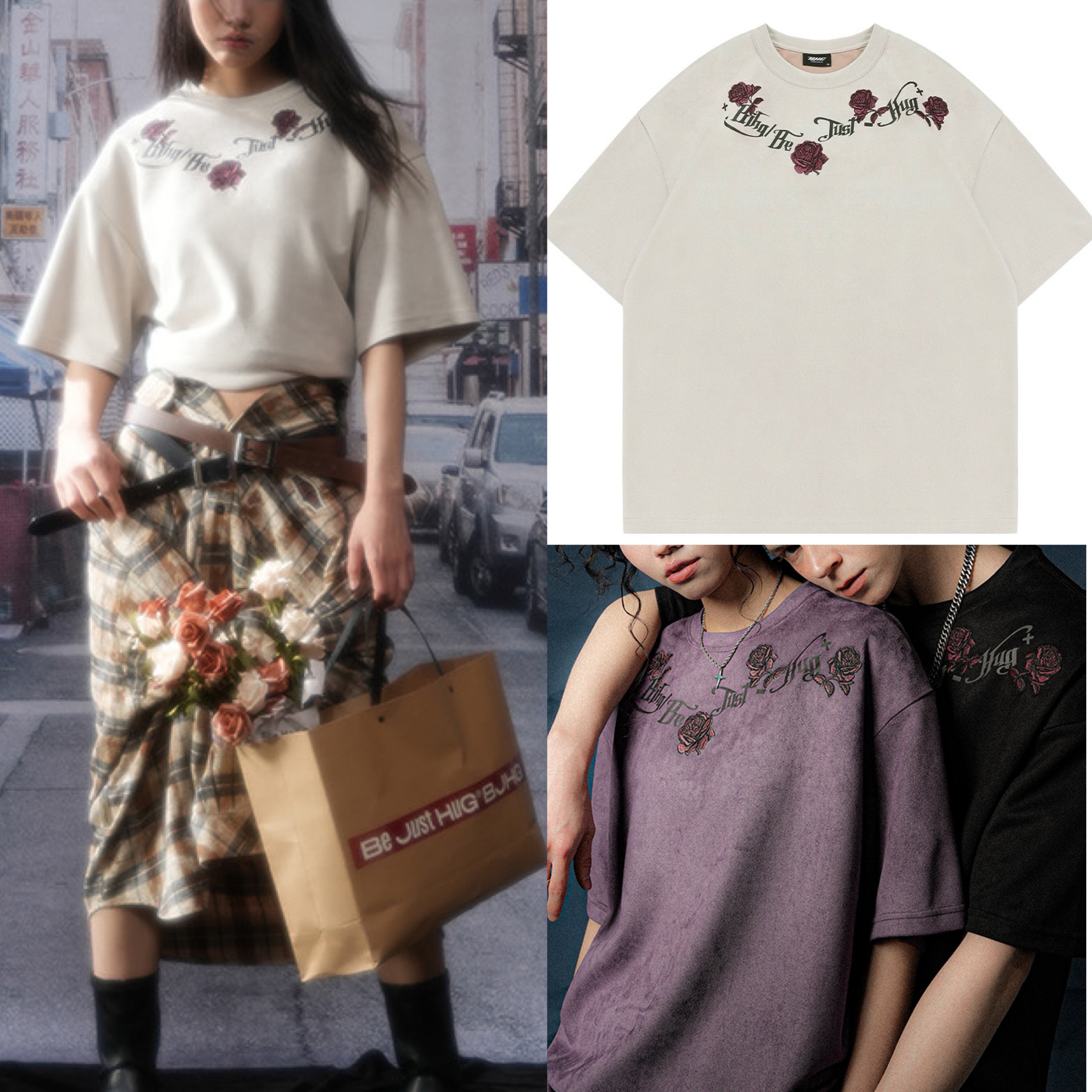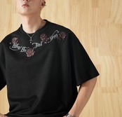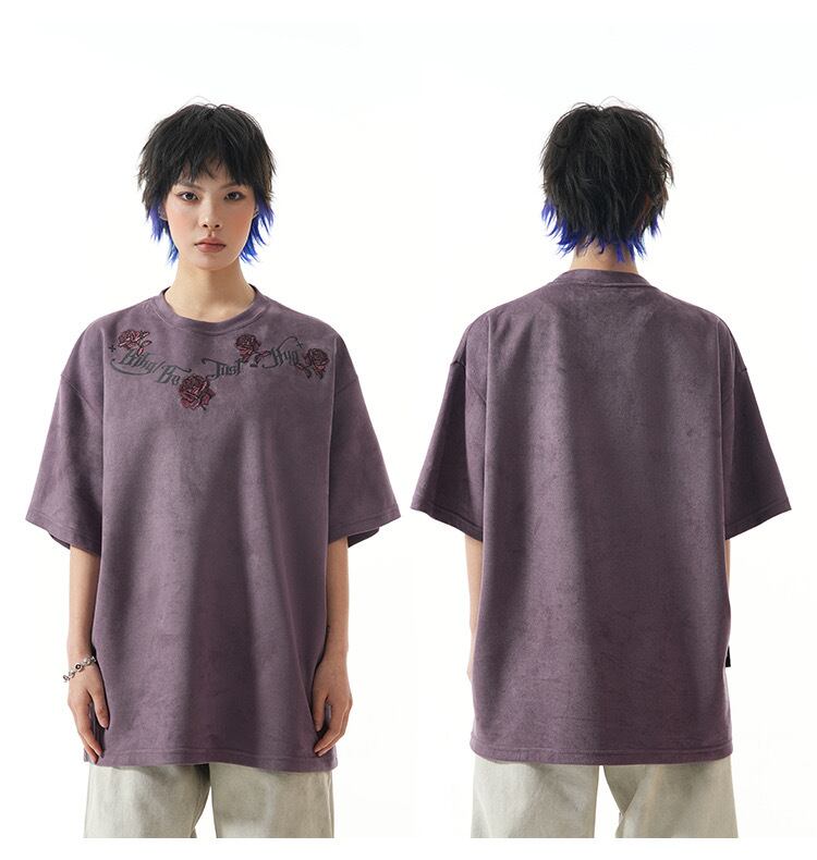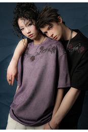 【ユニセックス❣️】紫 花柄 薔薇 黒 オーバーサイズ ブラウス ピンク 黒 ベージュ カーキ ダメージ XL カジュアル Tシャツ