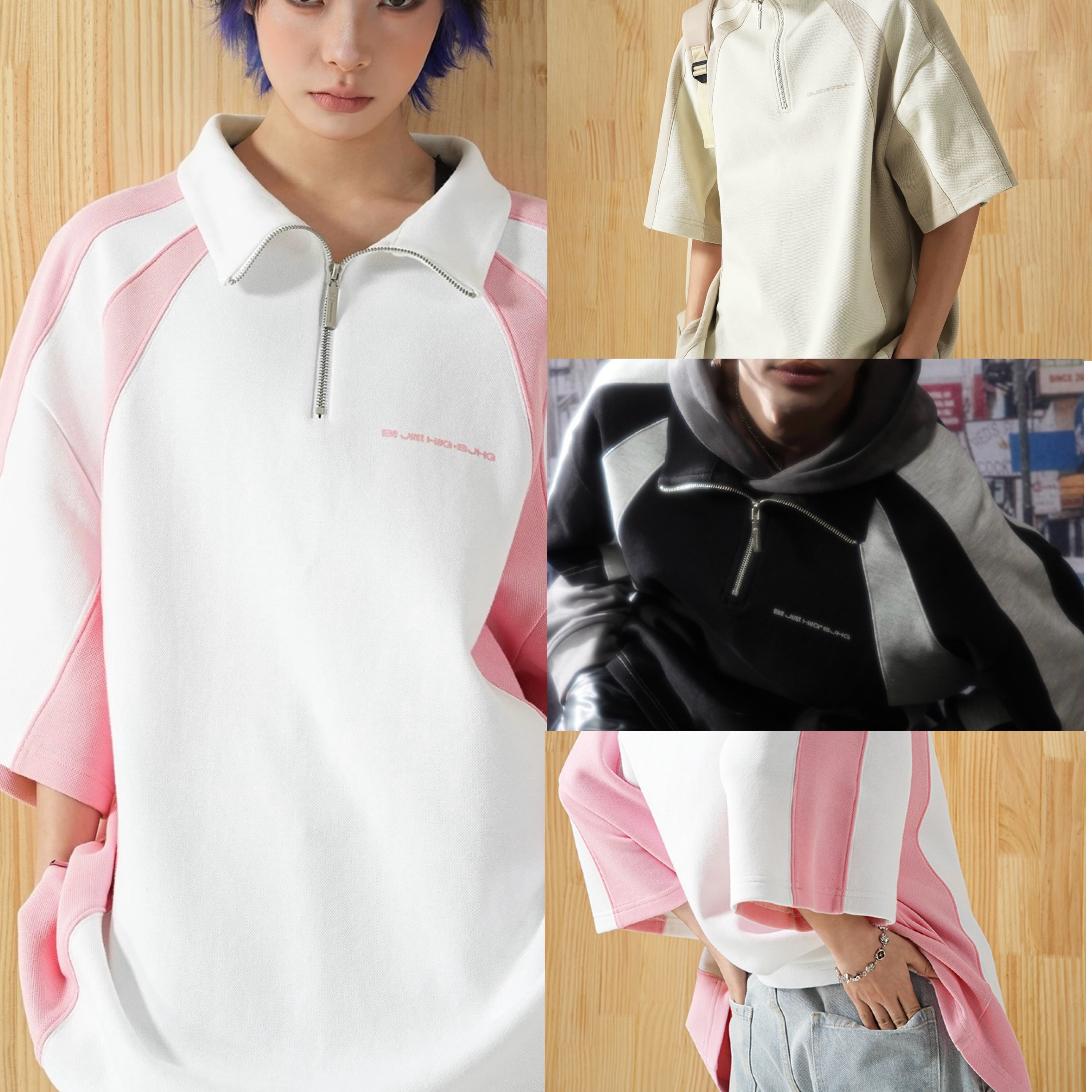 オーバーサイズ ブラウス ピンク 黒 ベージュ カーキ ダメージ XL カジュアル Tシャツ スウェット ピンク ベージュ