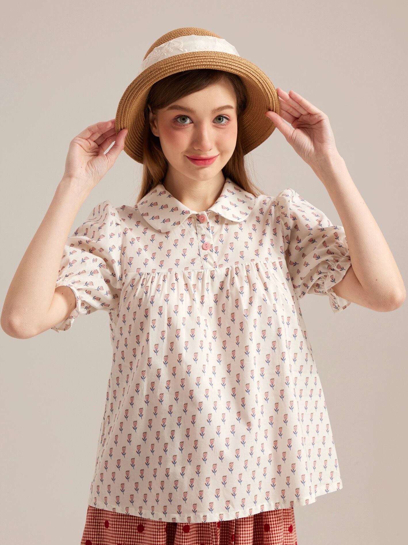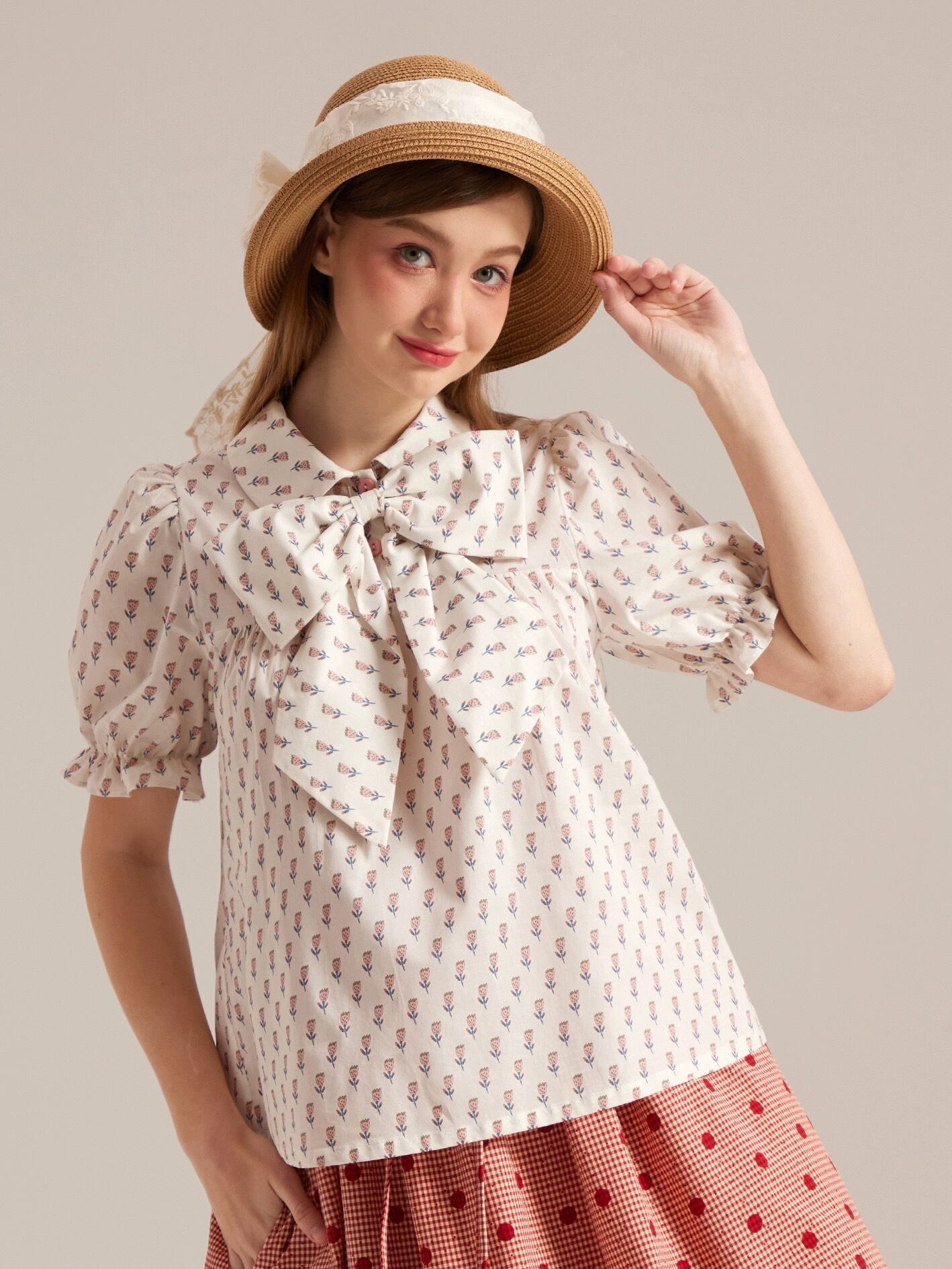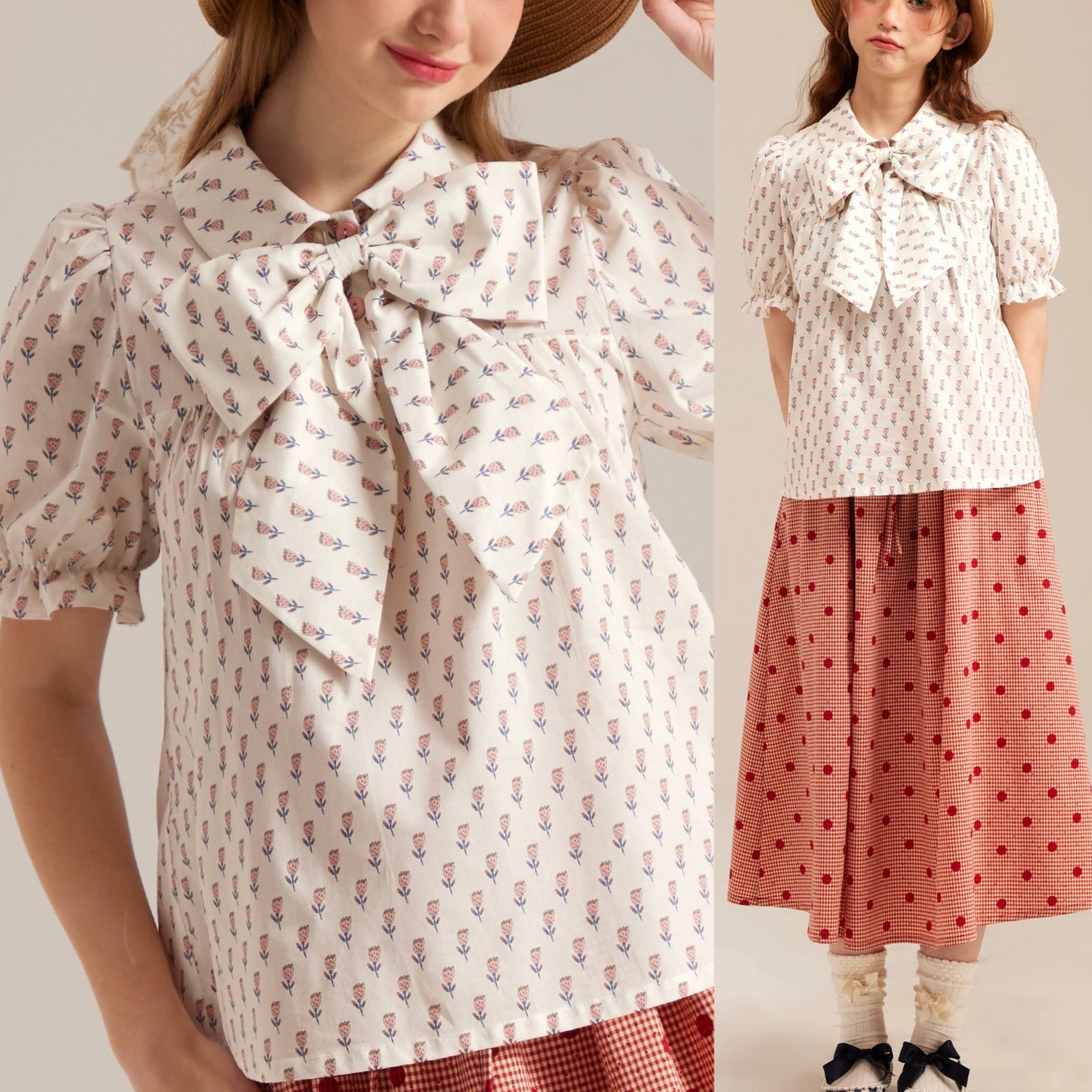 丸襟 ブラウス ガーリー ベージュ 可愛い 原宿 お嬢様 リボン