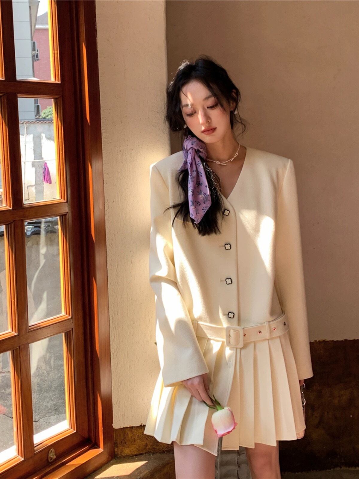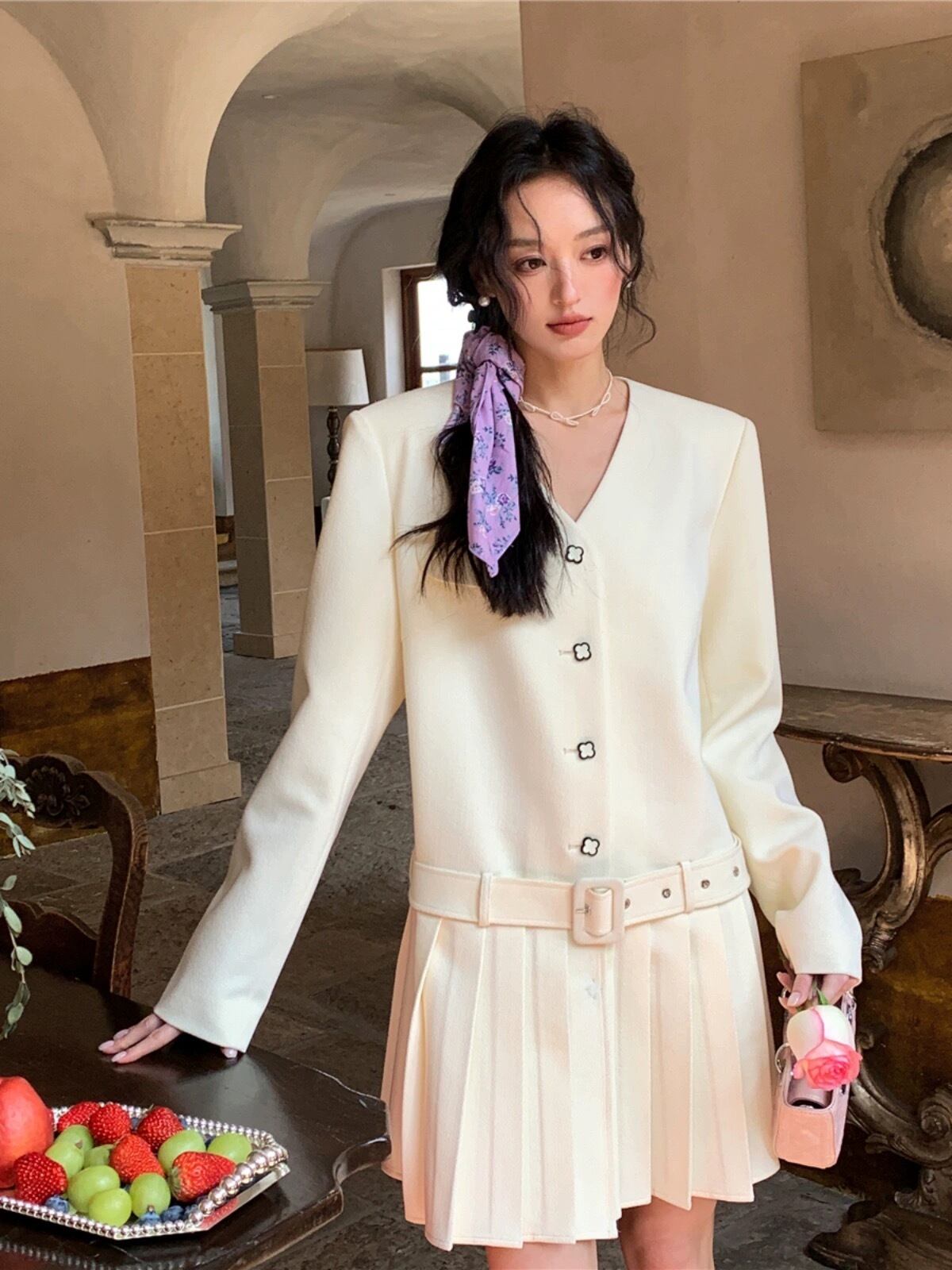 ジャケット ワンピース 白 水色 ブラウス エレガント カジュアル